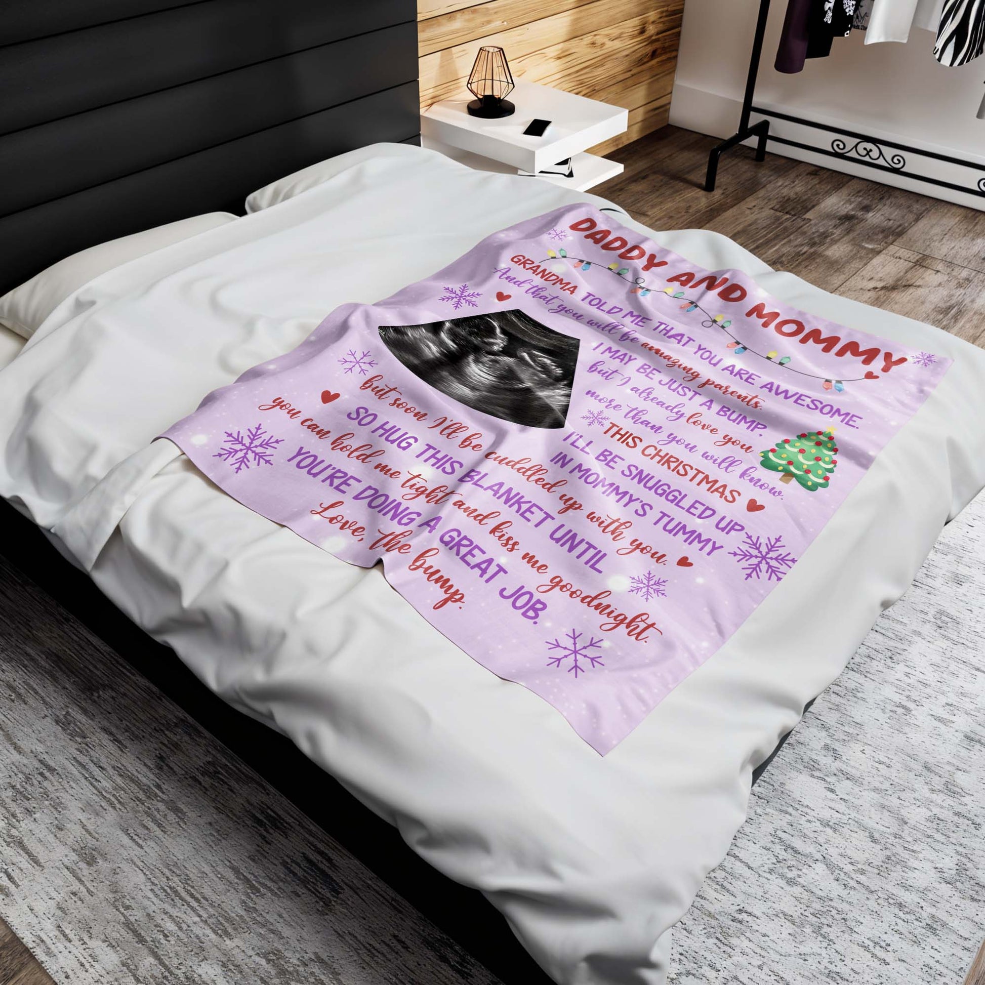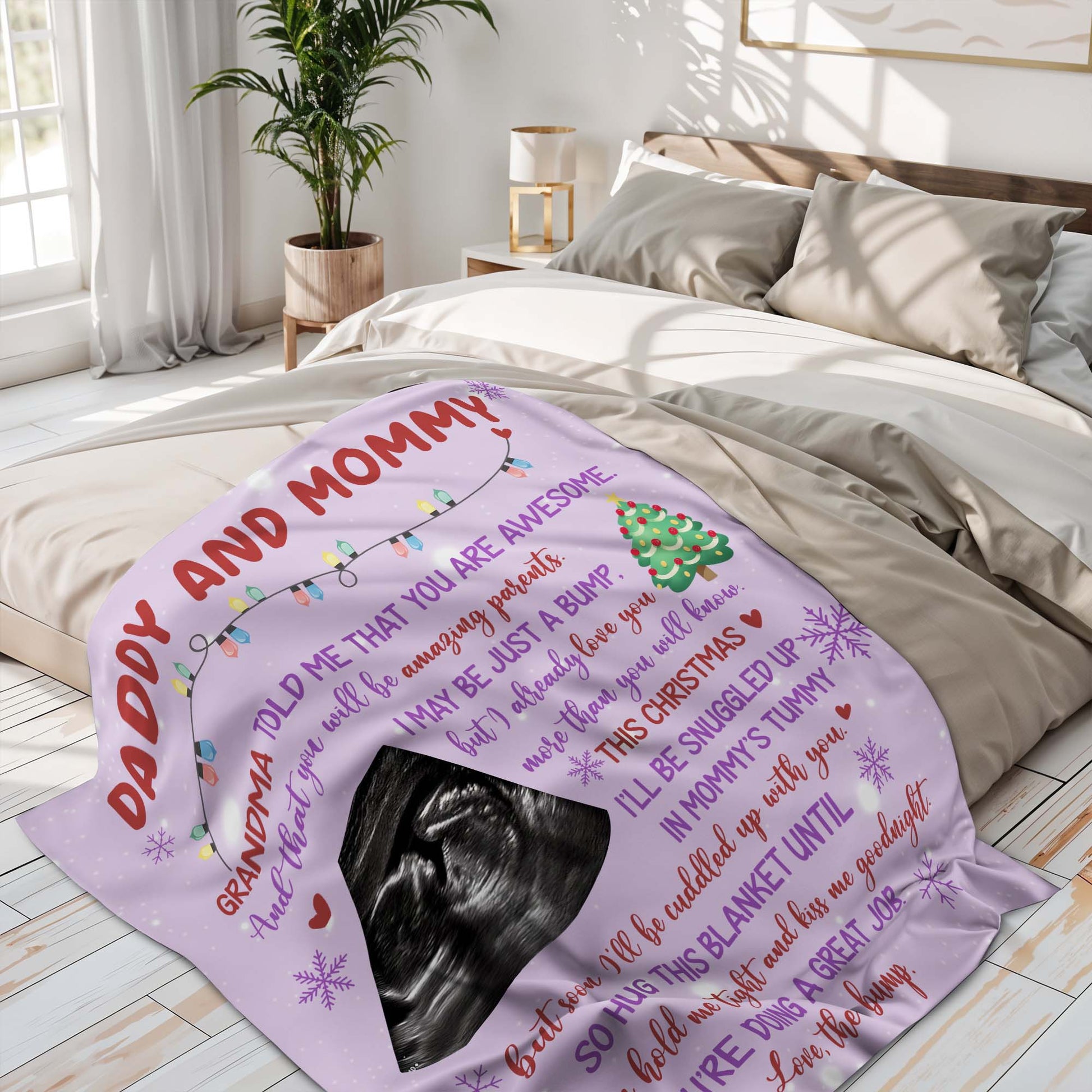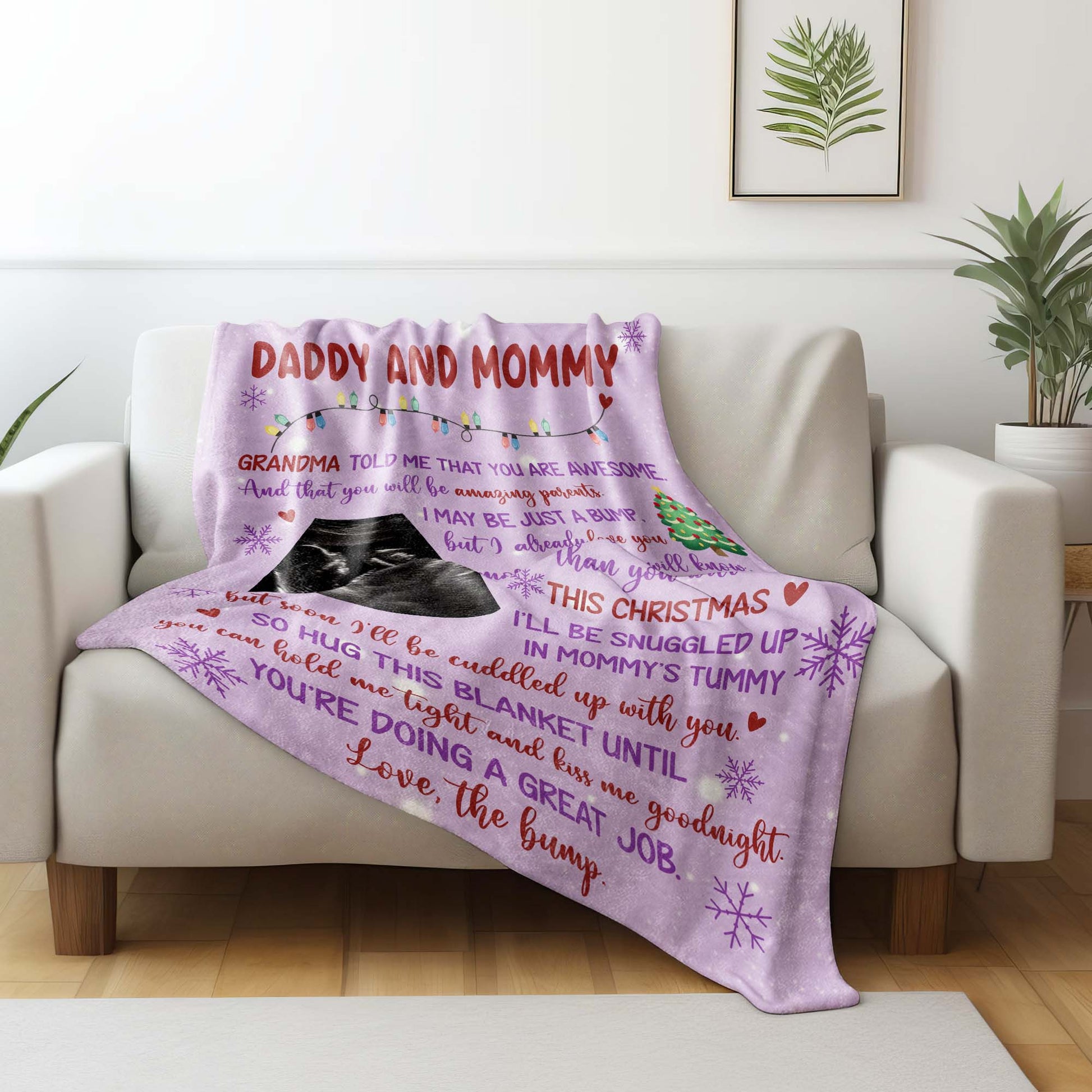 Grandma Told Me You Are Awesome, Ultrasound Image, Christmas Tree, Personalized Custom Blanket, Gift For Expecting Parents