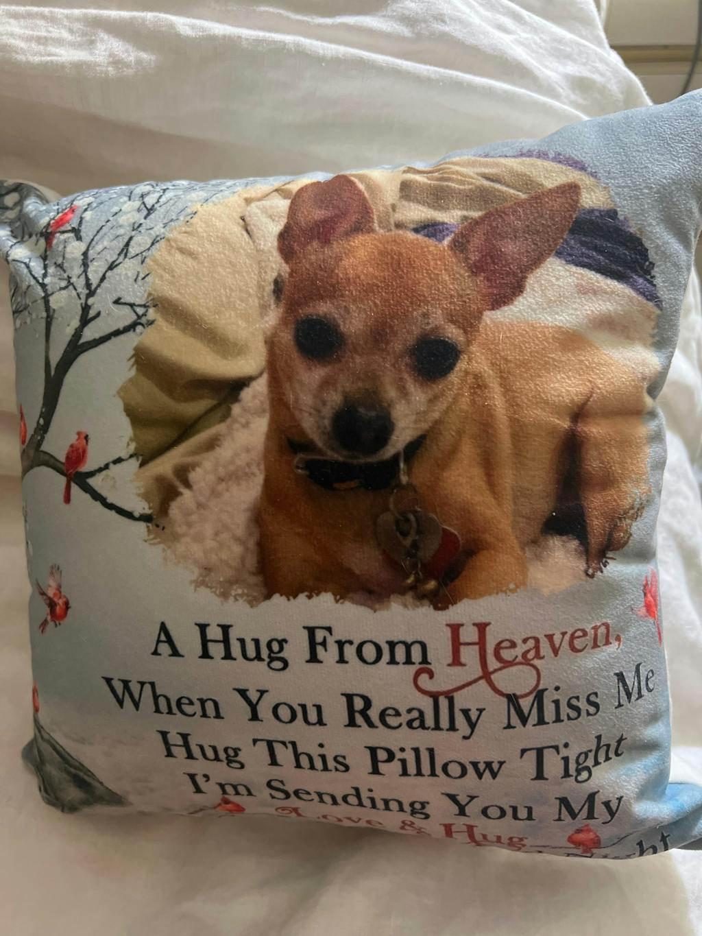 Miss my puppy every day, and this pillow brings a little comfort when the house feels too quiet.