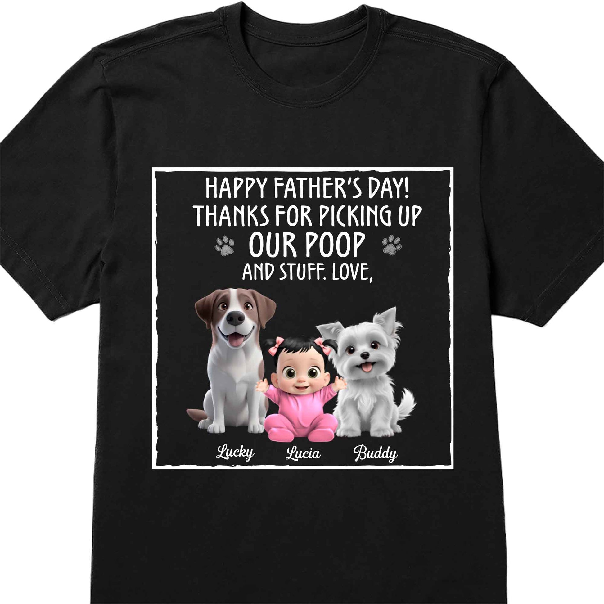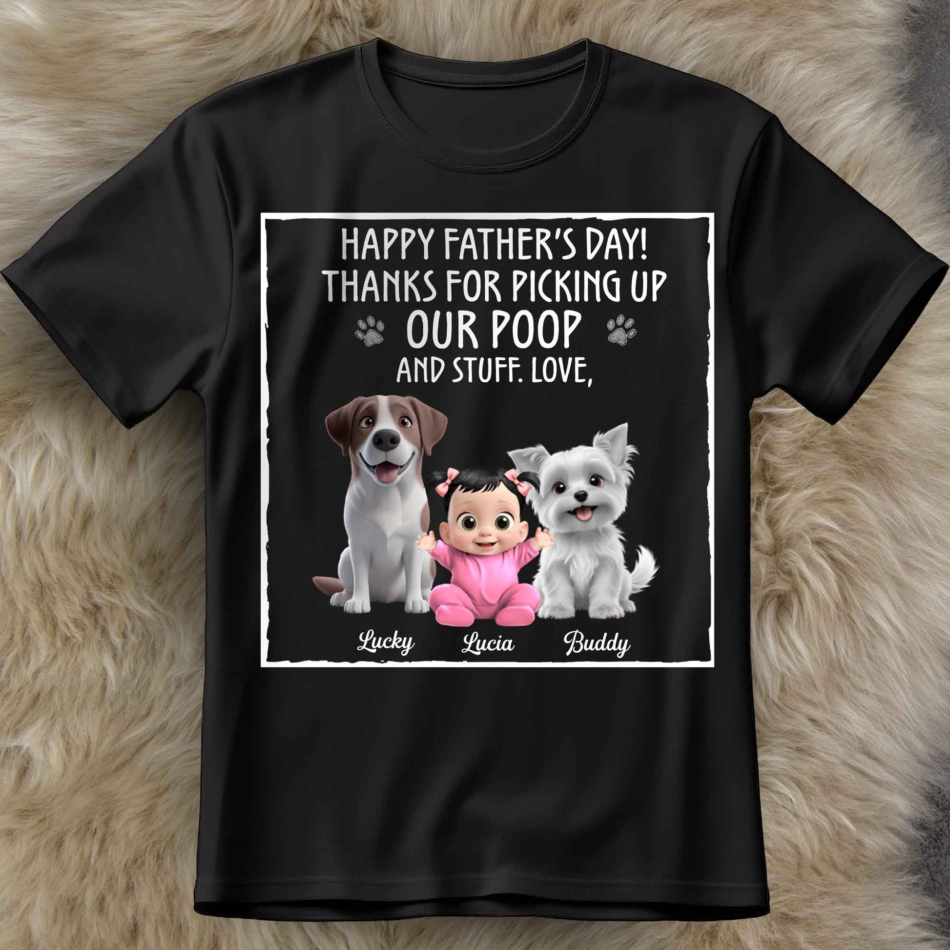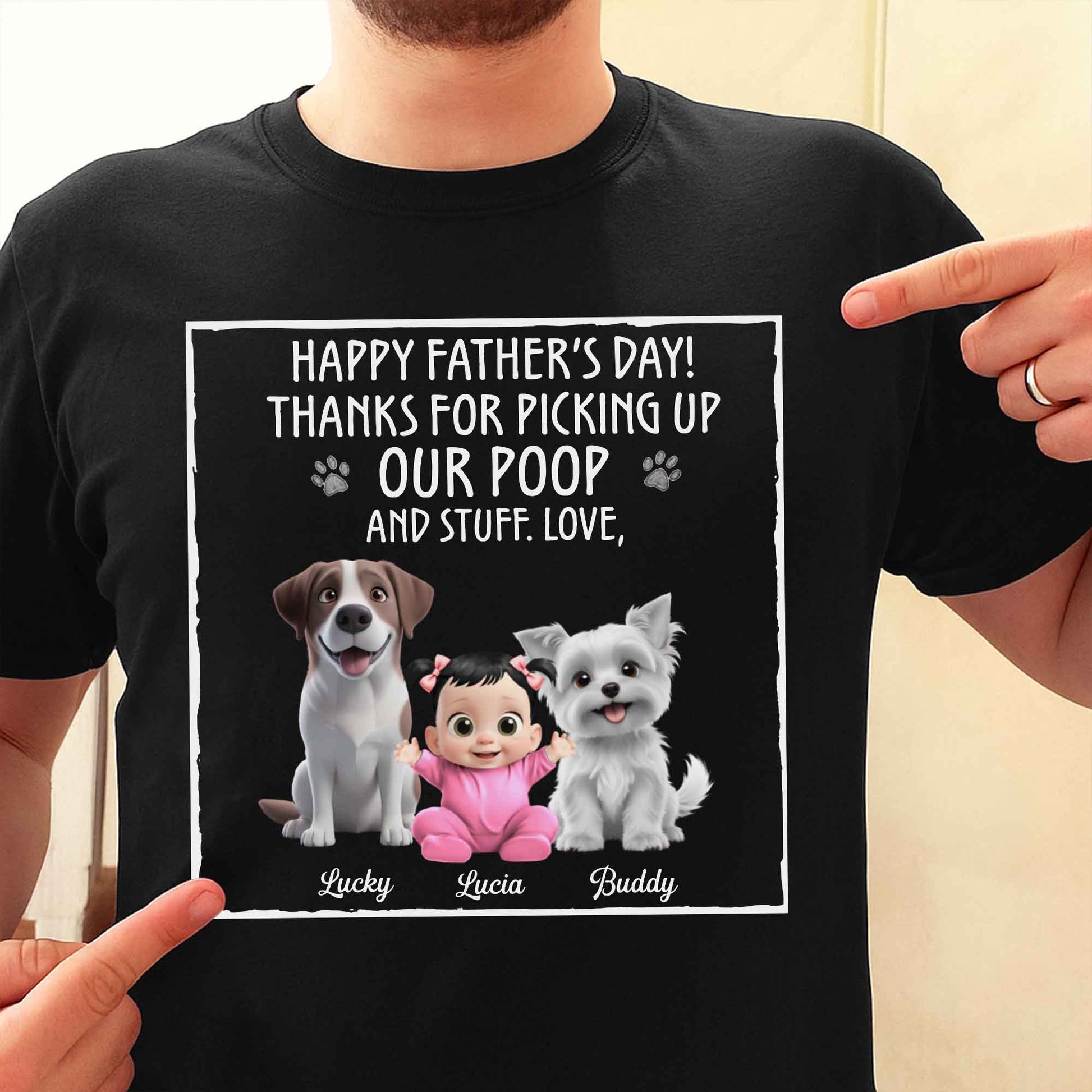 Happy Father's Day! Thanks For Picking Up Our Poop And Stuff, Dogs and Baby, Custom Unisex T-Shirt, Gift For Fathers and Dog Lovers
