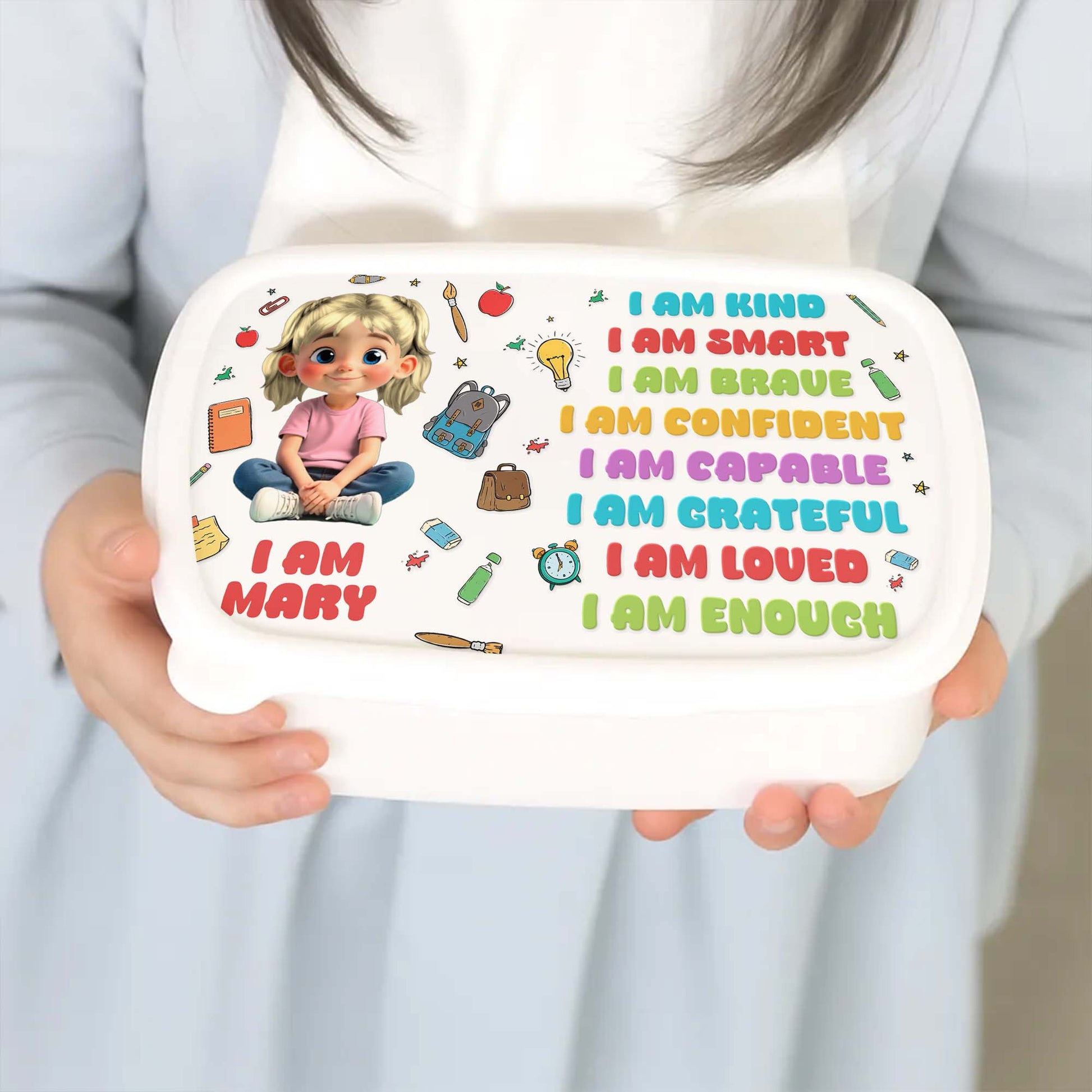 I Am Kind, Smart, Brave, Loved, School Supplies Design, Custom Kid Lunch Box, Gift For Students