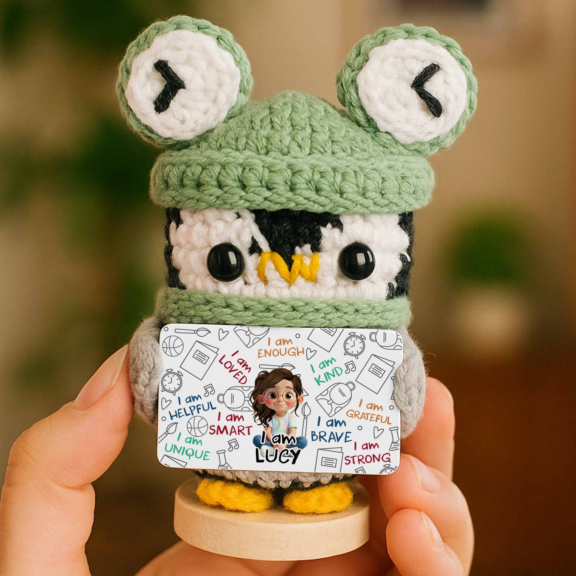 Add a dose of cuteness and heartfelt sentiment with our Personalized Crochet Doll with Custom Card. Handcrafted from soft cotton yarn and mounted on a stable wooden base, each character arrives with a blank mini card so you can pen your own sweet message.