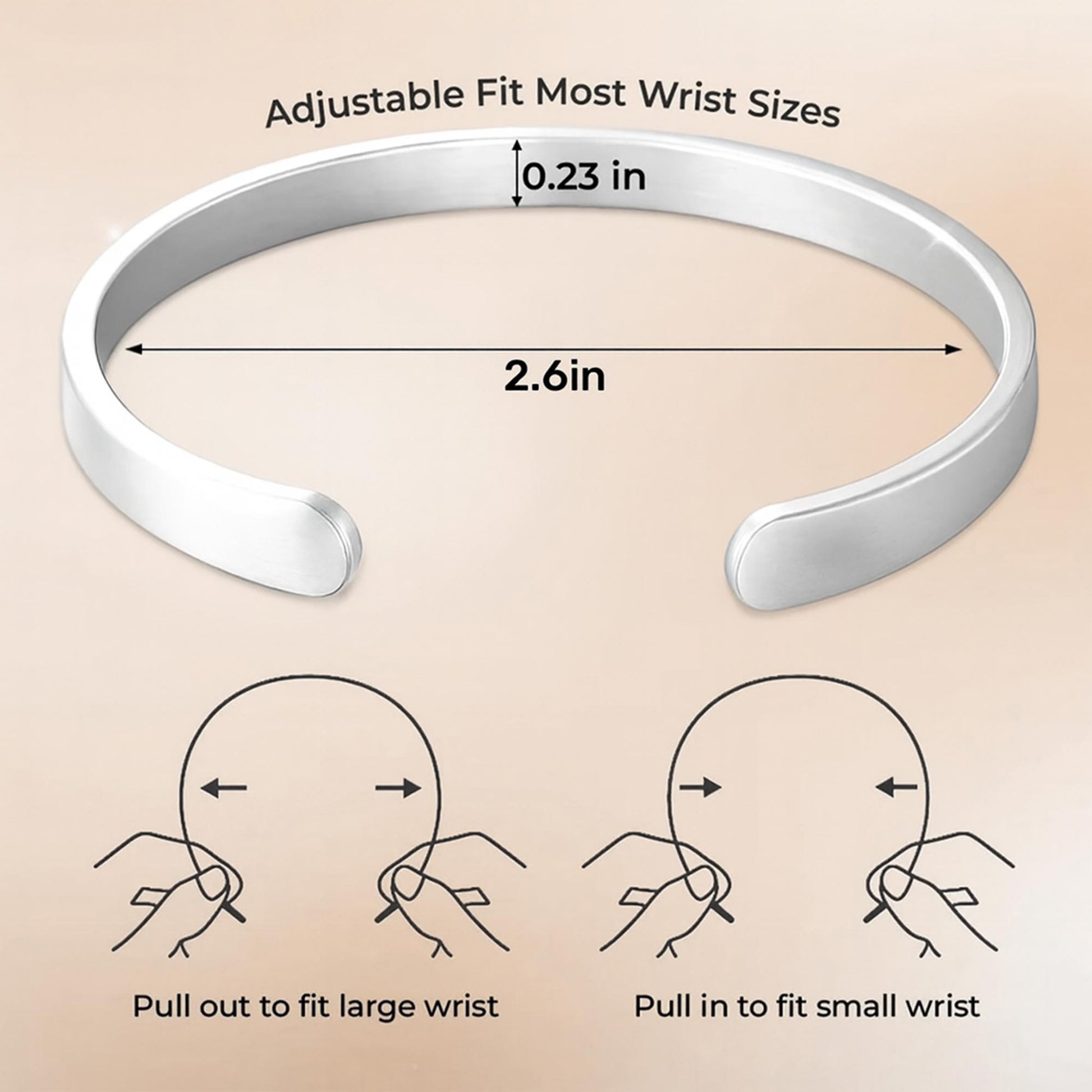 Share a heartfelt note they can wear every day. This stainless steel bracelet cuff arrives gift-ready with a designed message card inside a presentation box—customized to make your sentiment unforgettable.