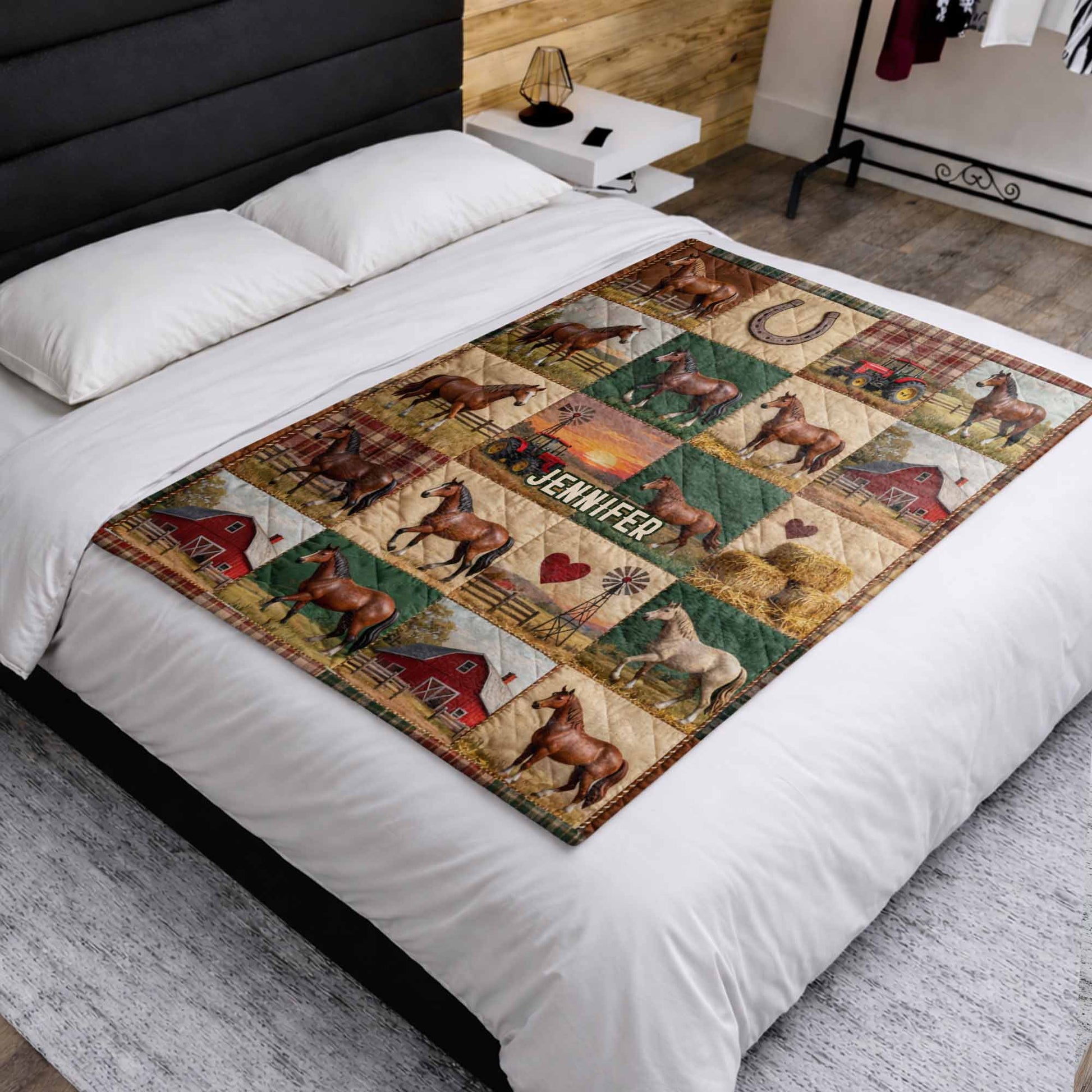 Jennifer Horse And Barn Blanket, Personalized Custom Blanket, Gift For Horse Lovers