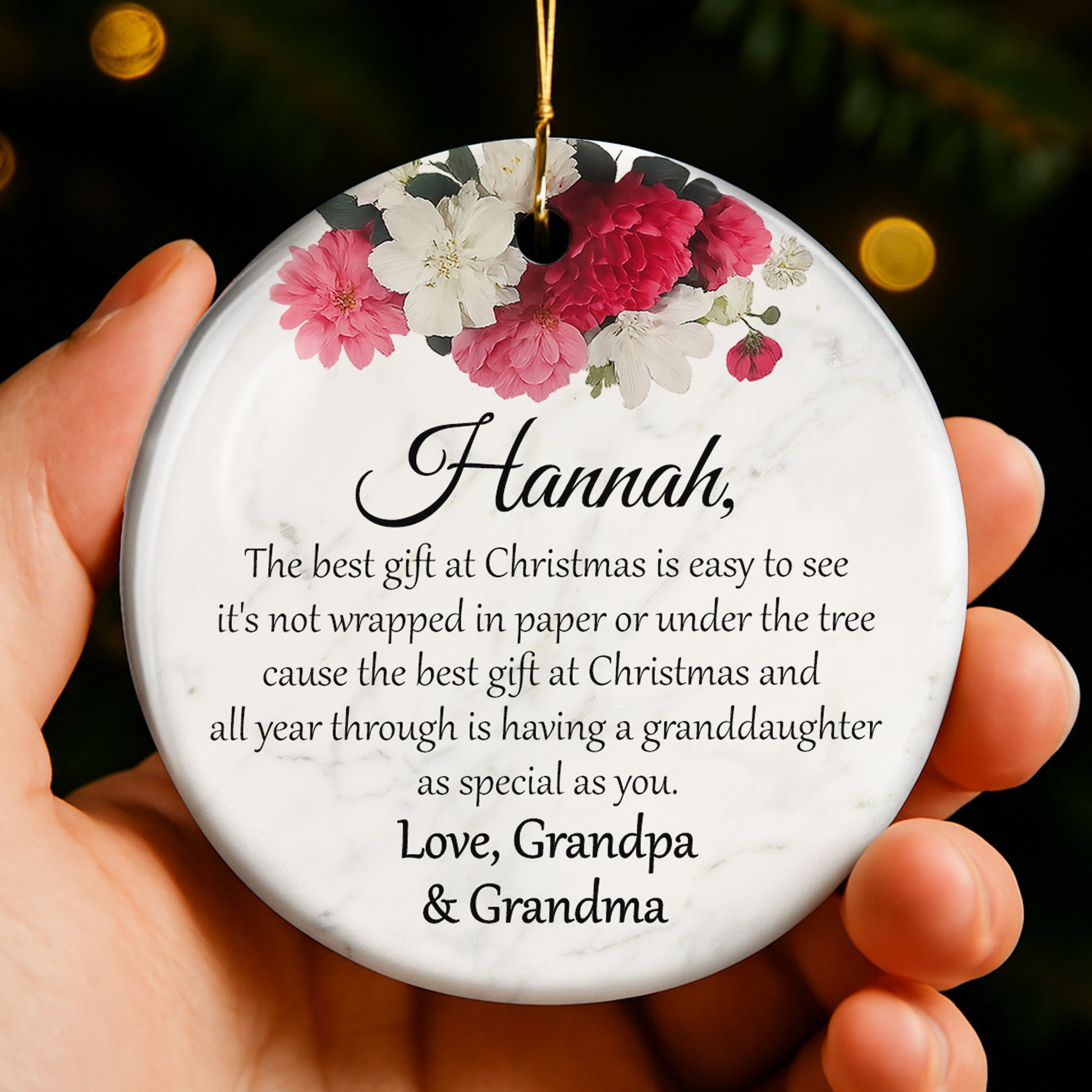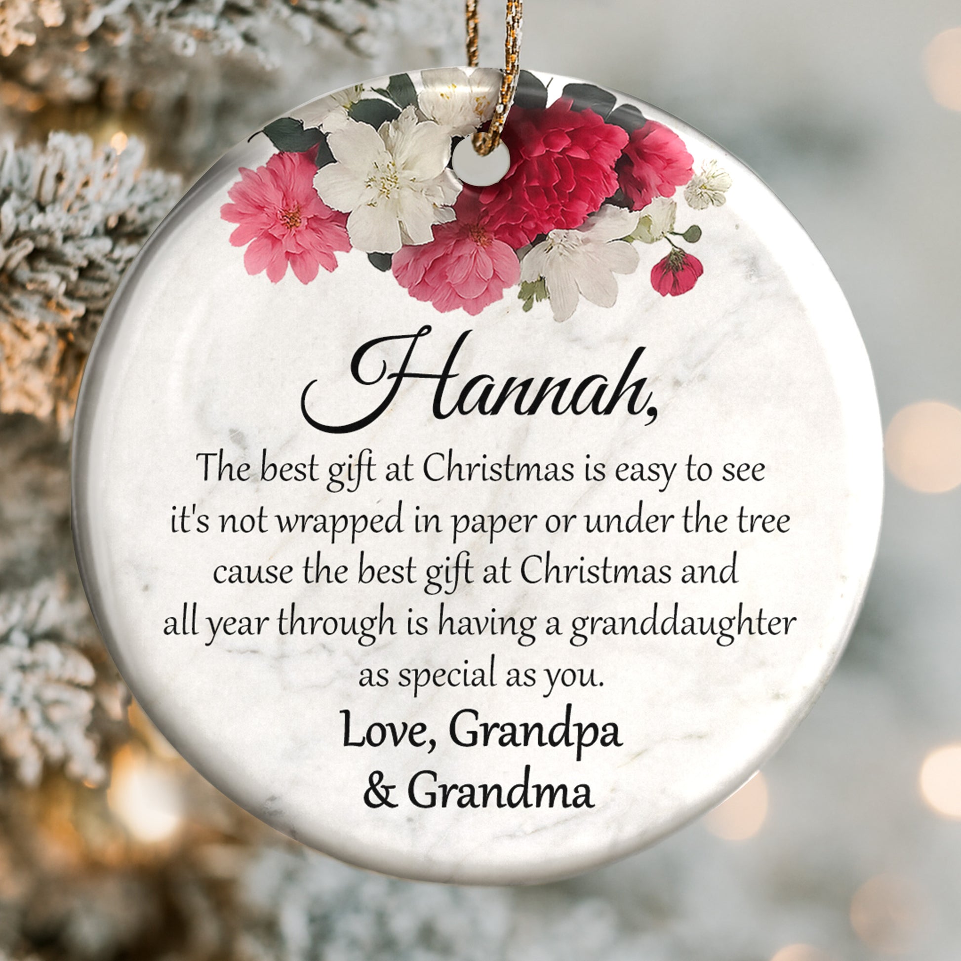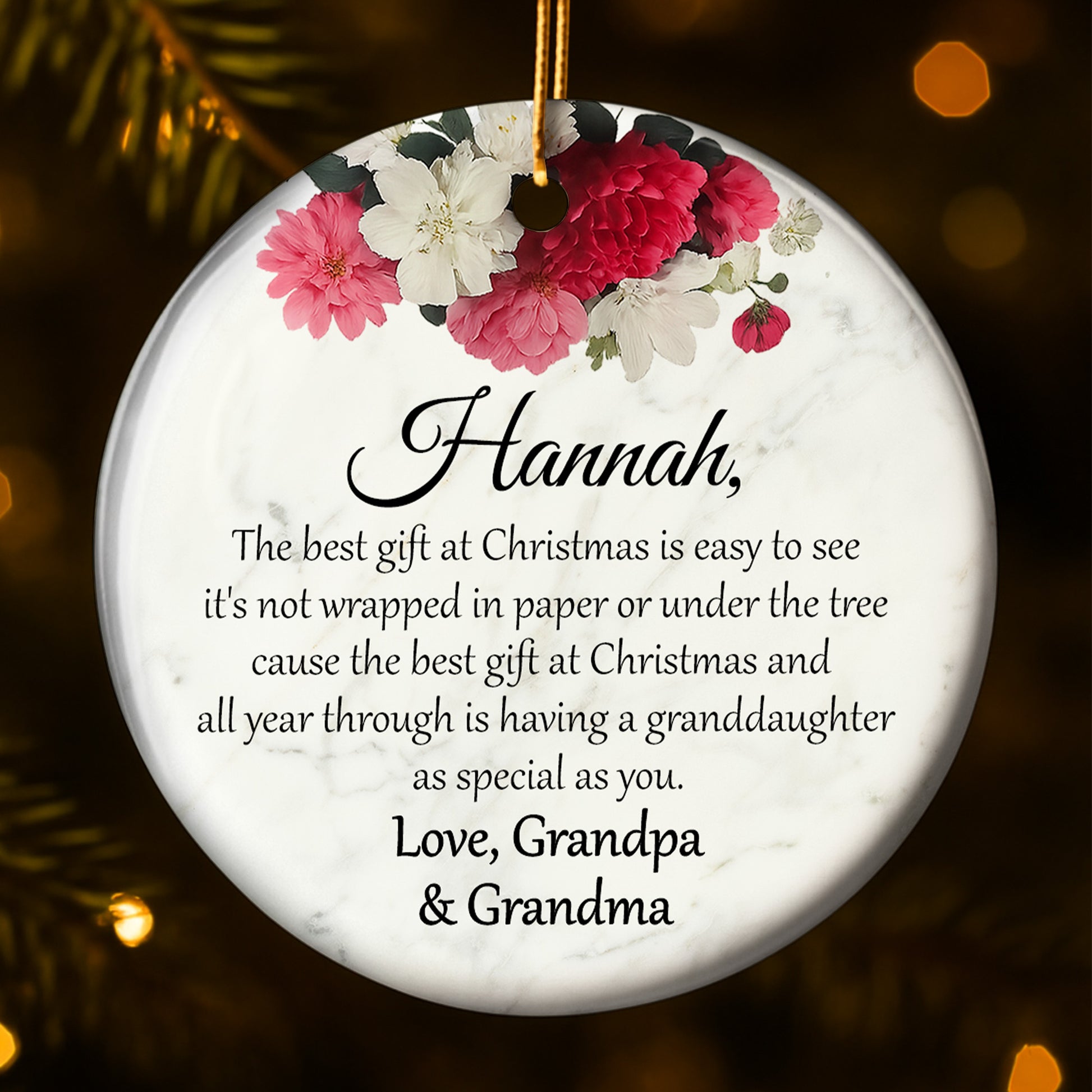 The Best Gift At Christmas, Personalized Custom Ceramic Ornament, Gift For Granddaughter