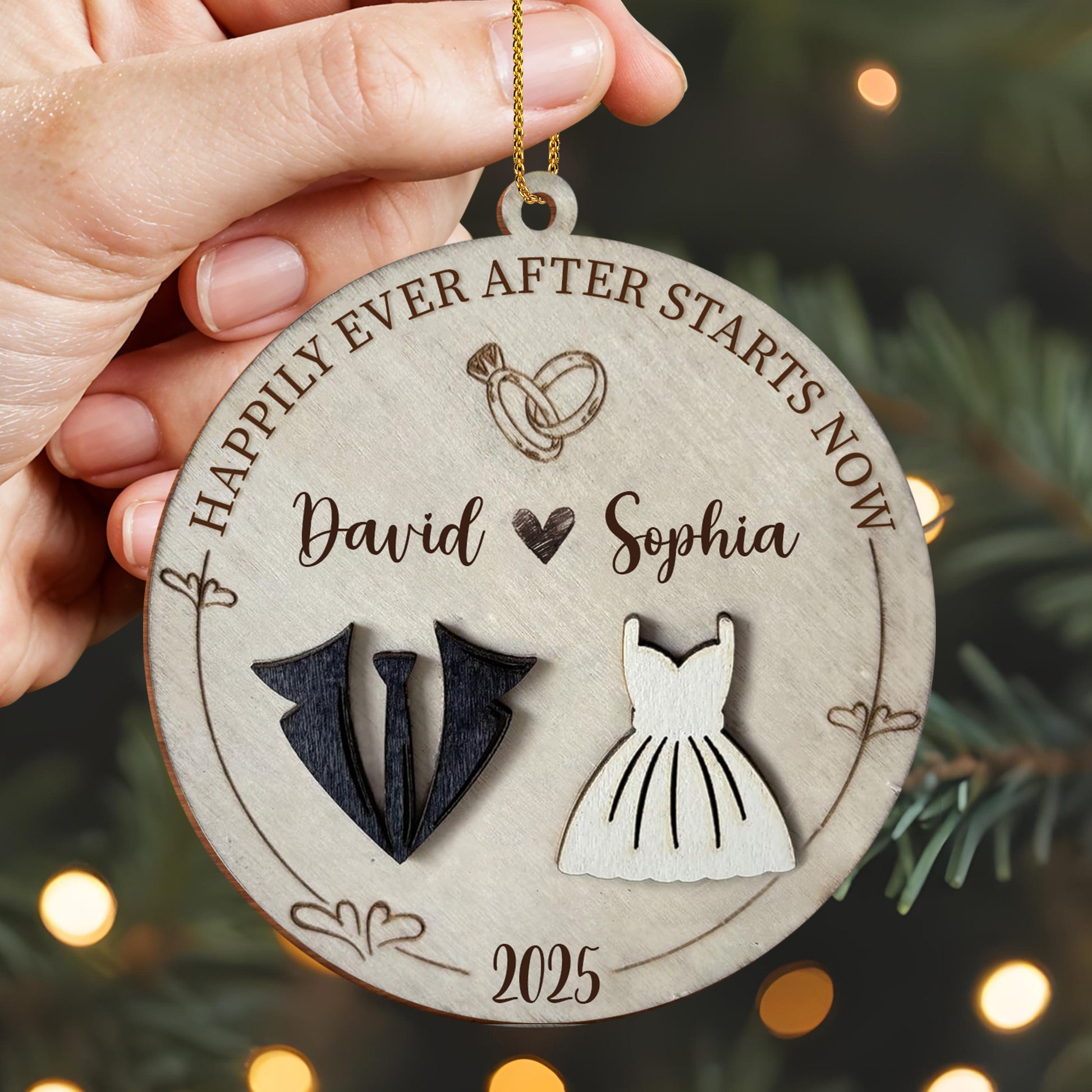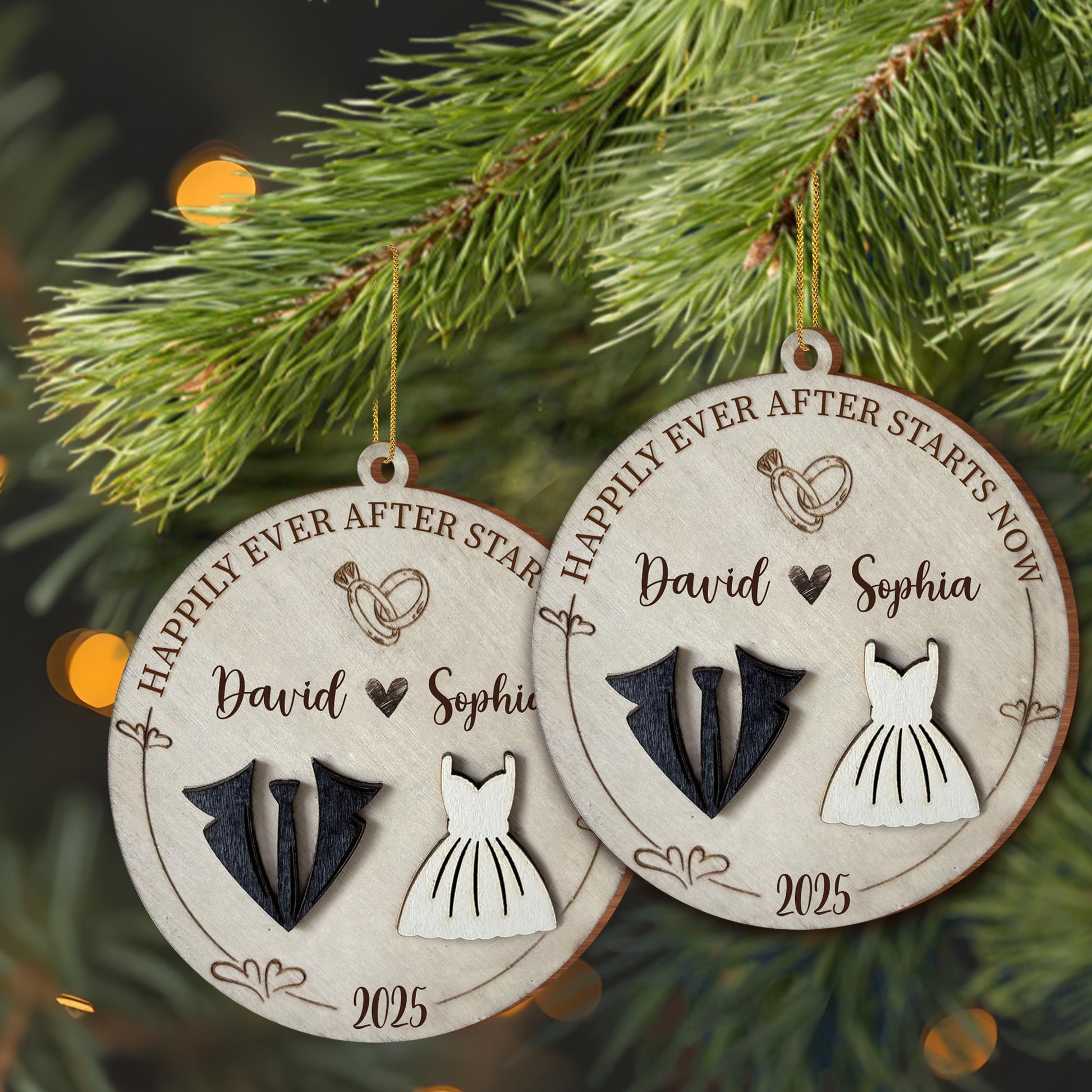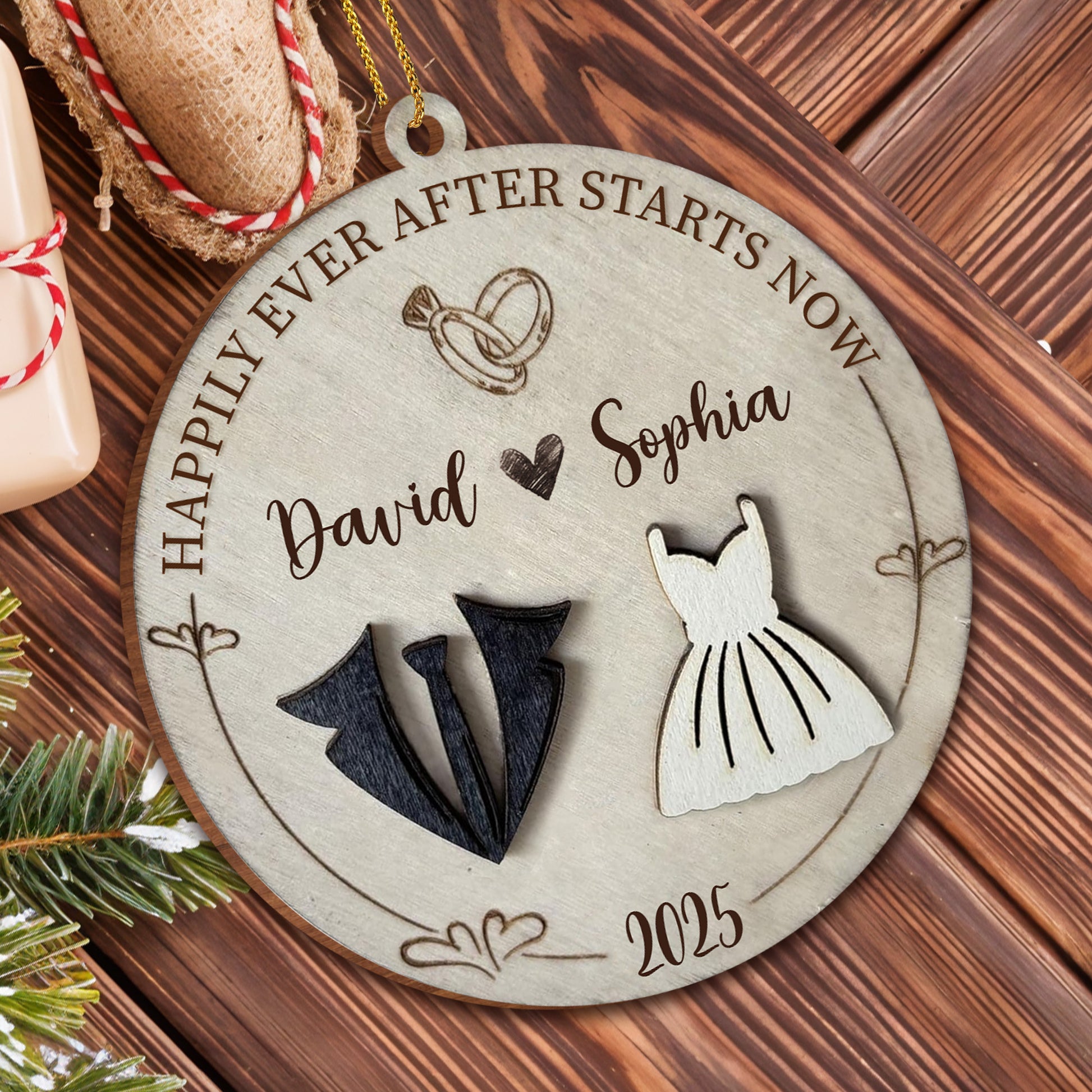 The Year We Became Us, Heart, Wedding Dress And Suit, Custom Wood Ornament, Gift For Couples And Newlyweds