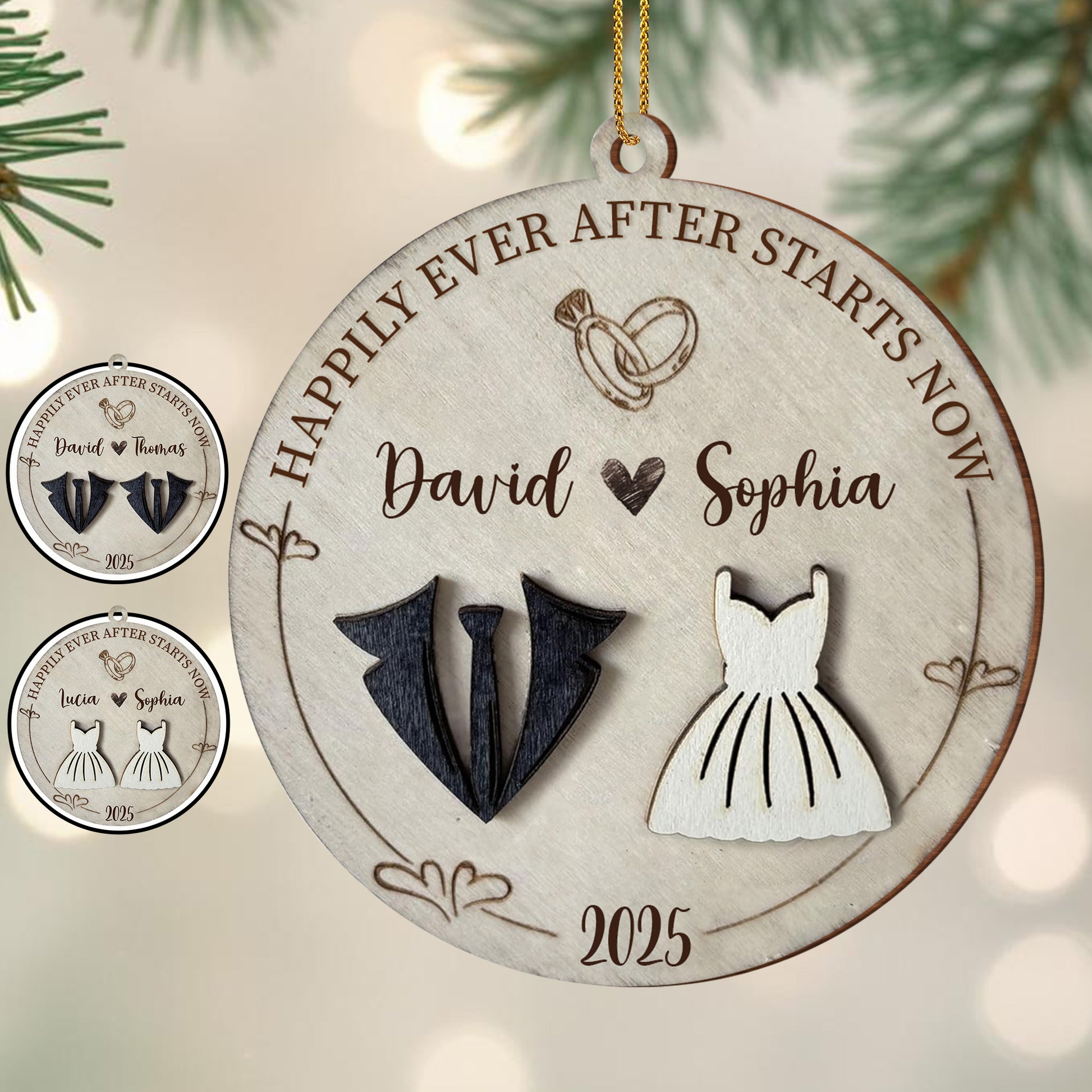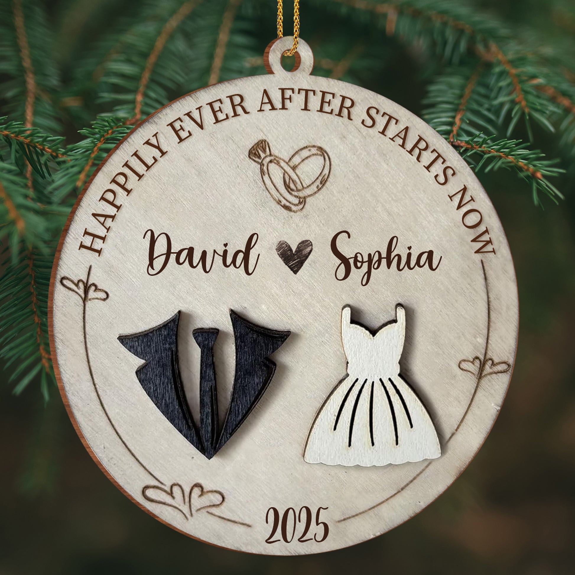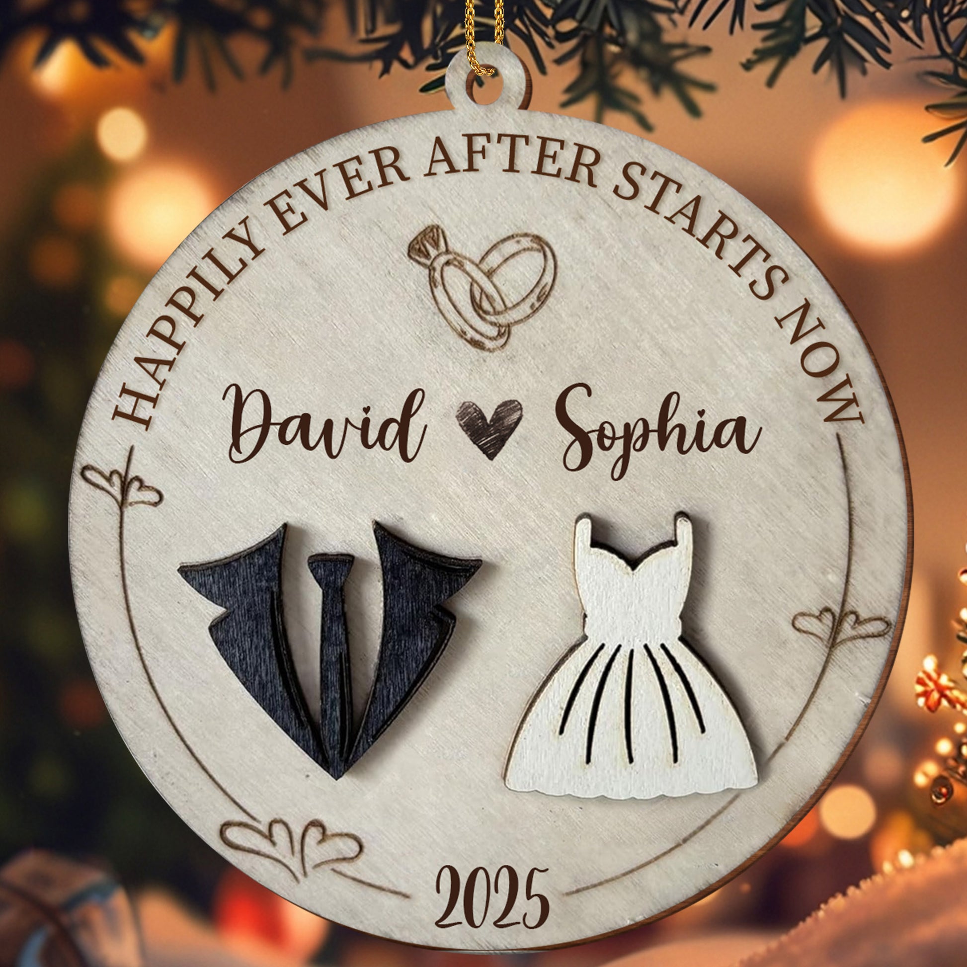 The Year We Became Us, Heart, Wedding Dress And Suit, Custom Wood Ornament, Gift For Couples And Newlyweds