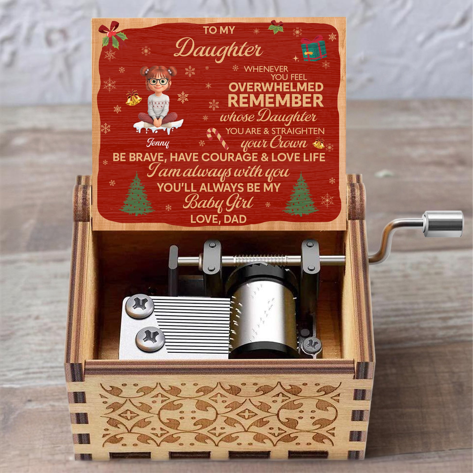 To My Daughter, Remember Your Strength & Crown, Christmas Tree - Custom Music Box With "We Wish You A Merry Christmas" Tune - KID316_MZX