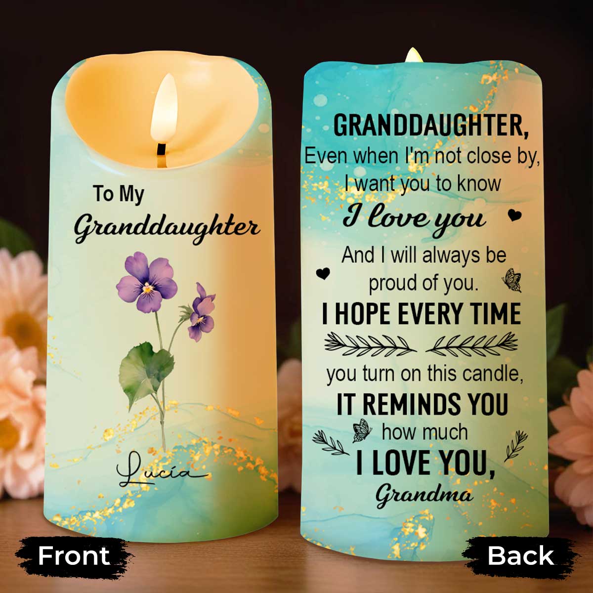 To My Granddaughter, Love From Grandma, Flowers, Custom LED Candle, Gift For Granddaughters