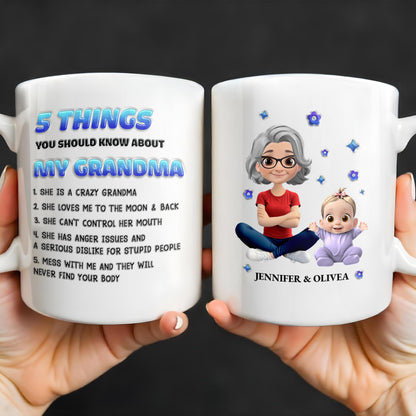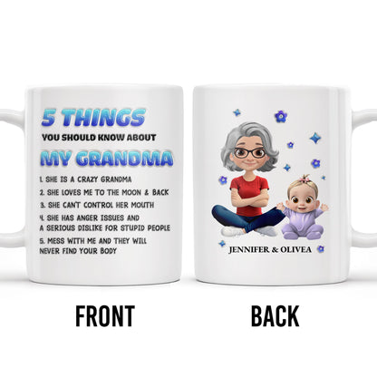 5 Things You Should Know About My Grandma, Cartoon Grandma And Baby - Personalized Custom Coffee Mug - GRM068_MG