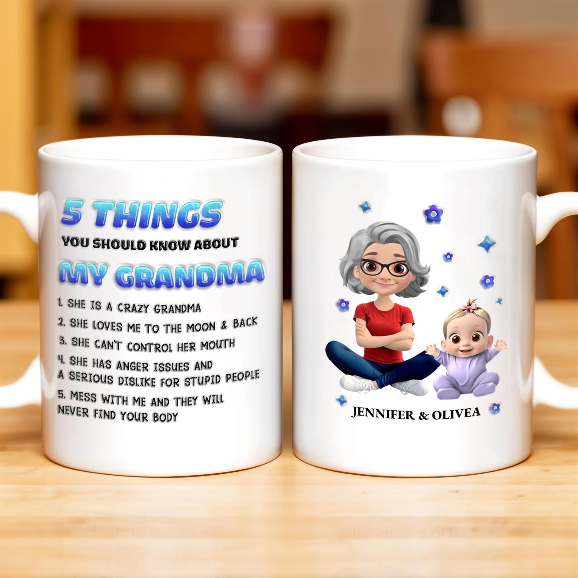 5 Things You Should Know About My Grandma, Personalized Custom Coffee Mug, Gift For Grandmas