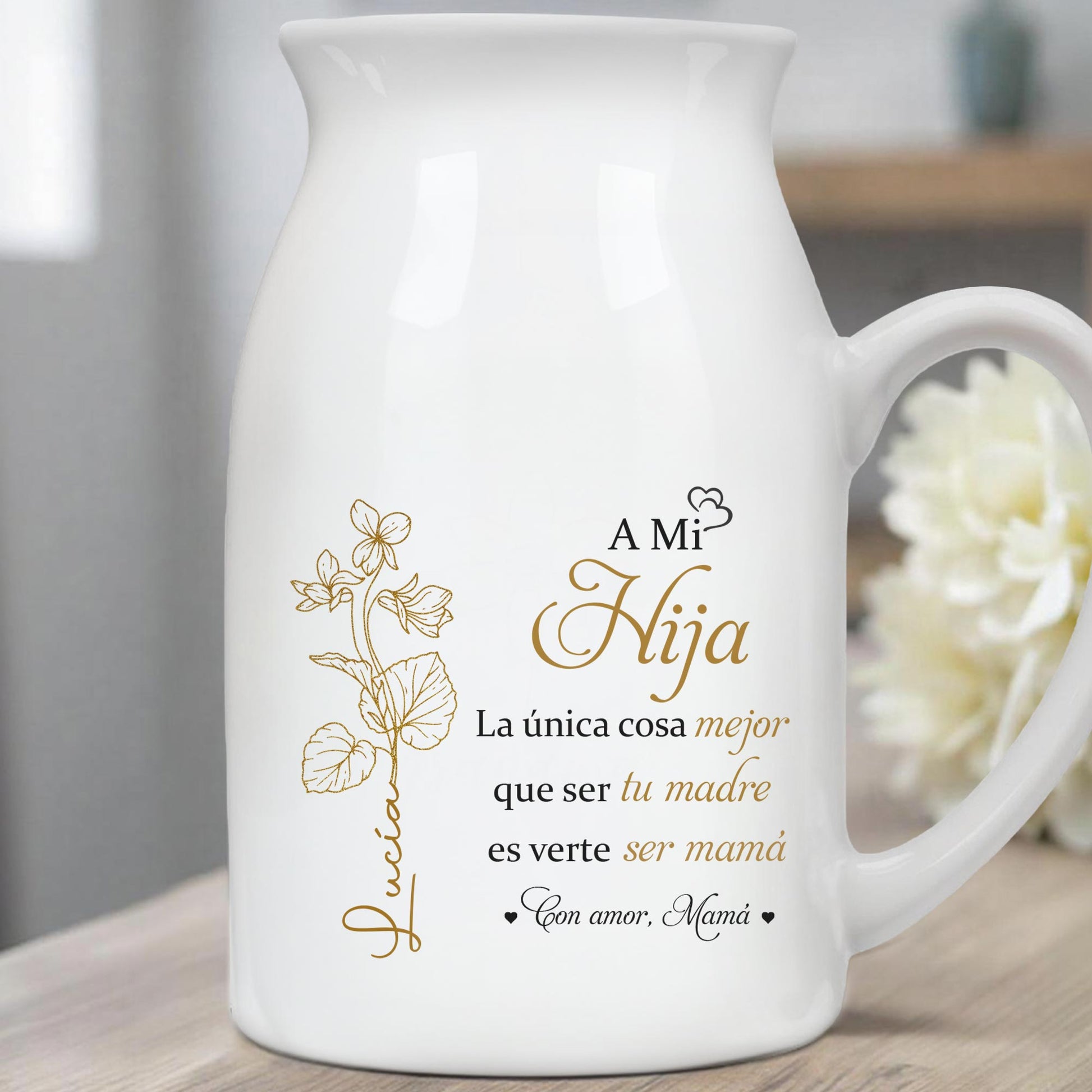A Mi Hija, Personalized Ceramic Flower Vase, Gift For Daughters
