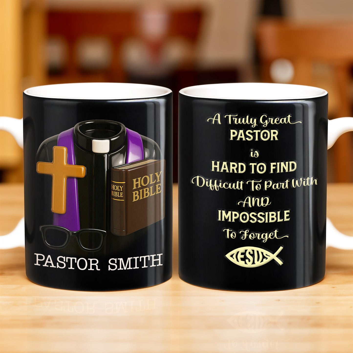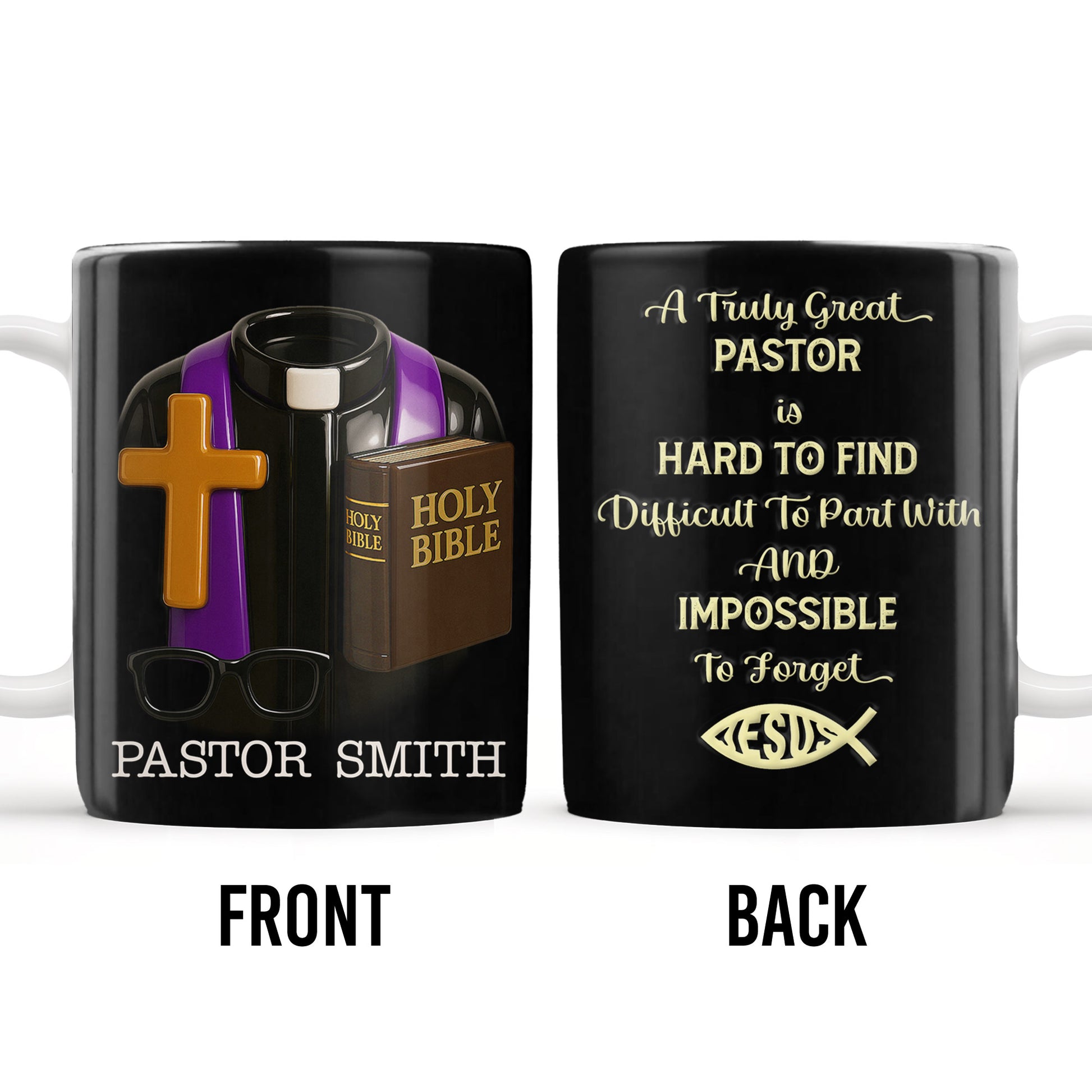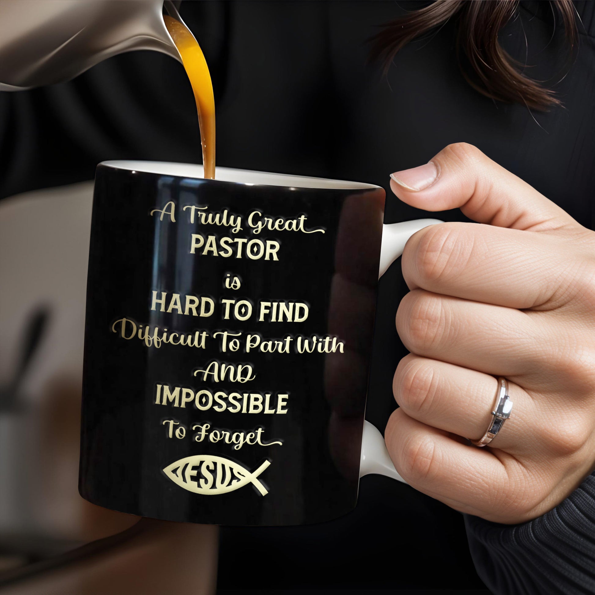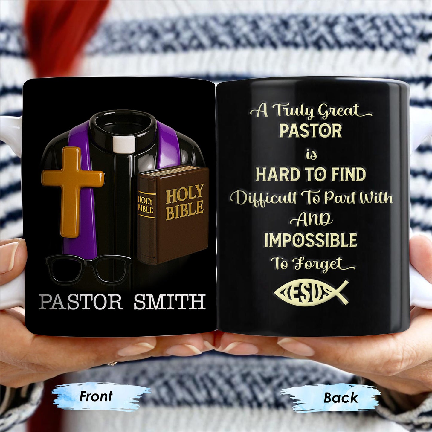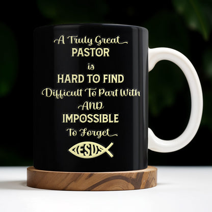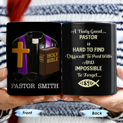 A Truly Great Pastor Is Hard To Find, Cross, Holy Bible And Glasses, Personalized Custom Coffee Mug, Gift For Pastors