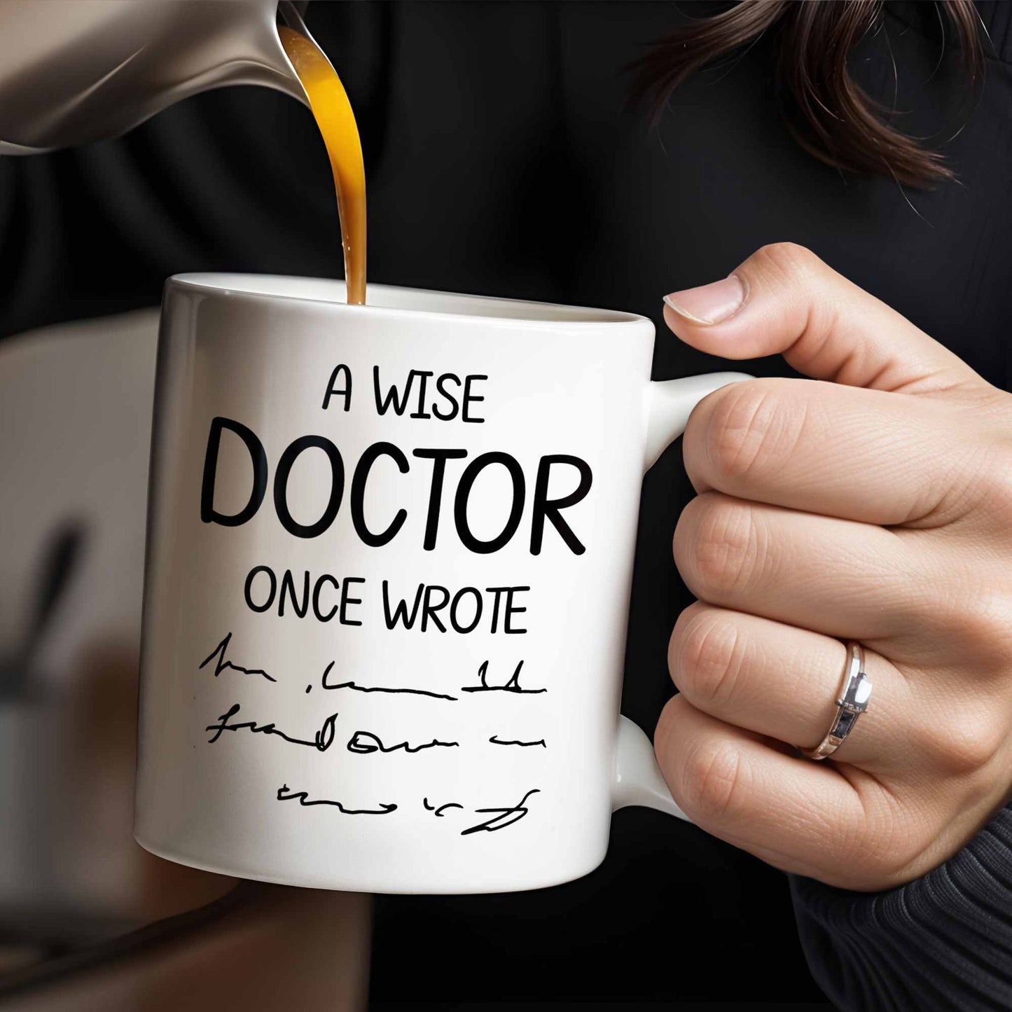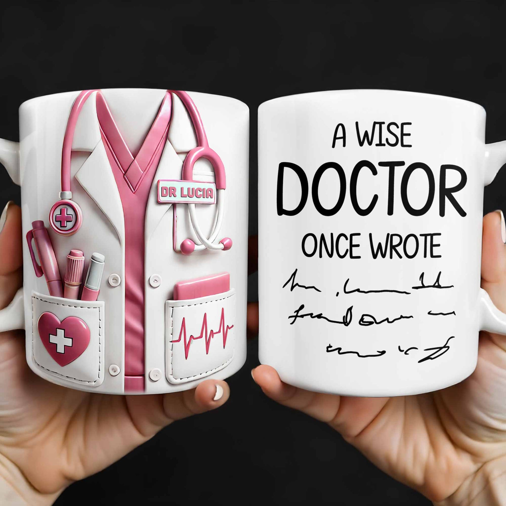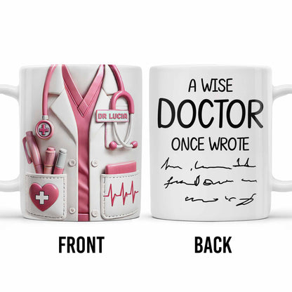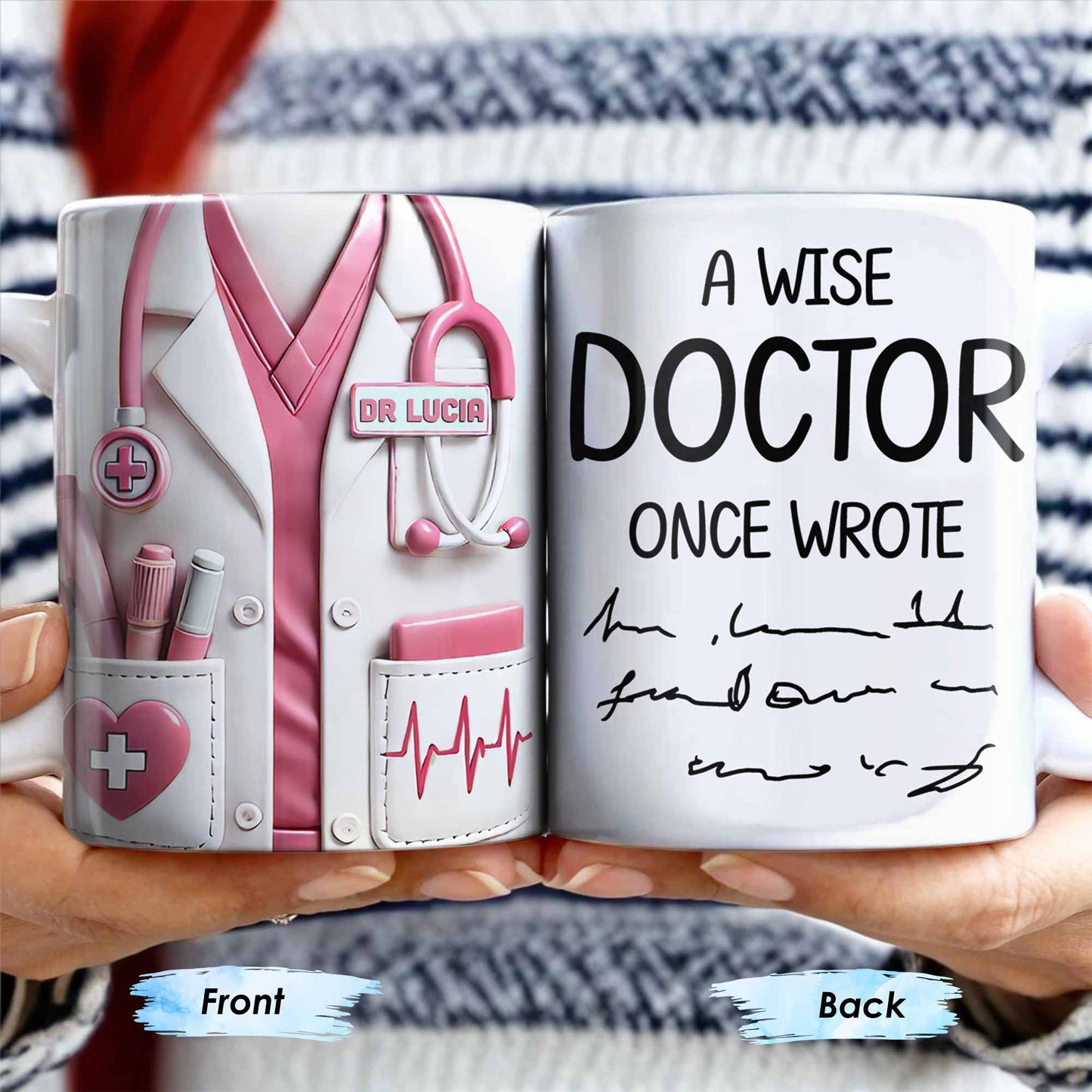 A Wise Doctor Once Wrote, Medical Coat and Stethoscope, Personalized Custom Coffee Mug, Gift for Doctors