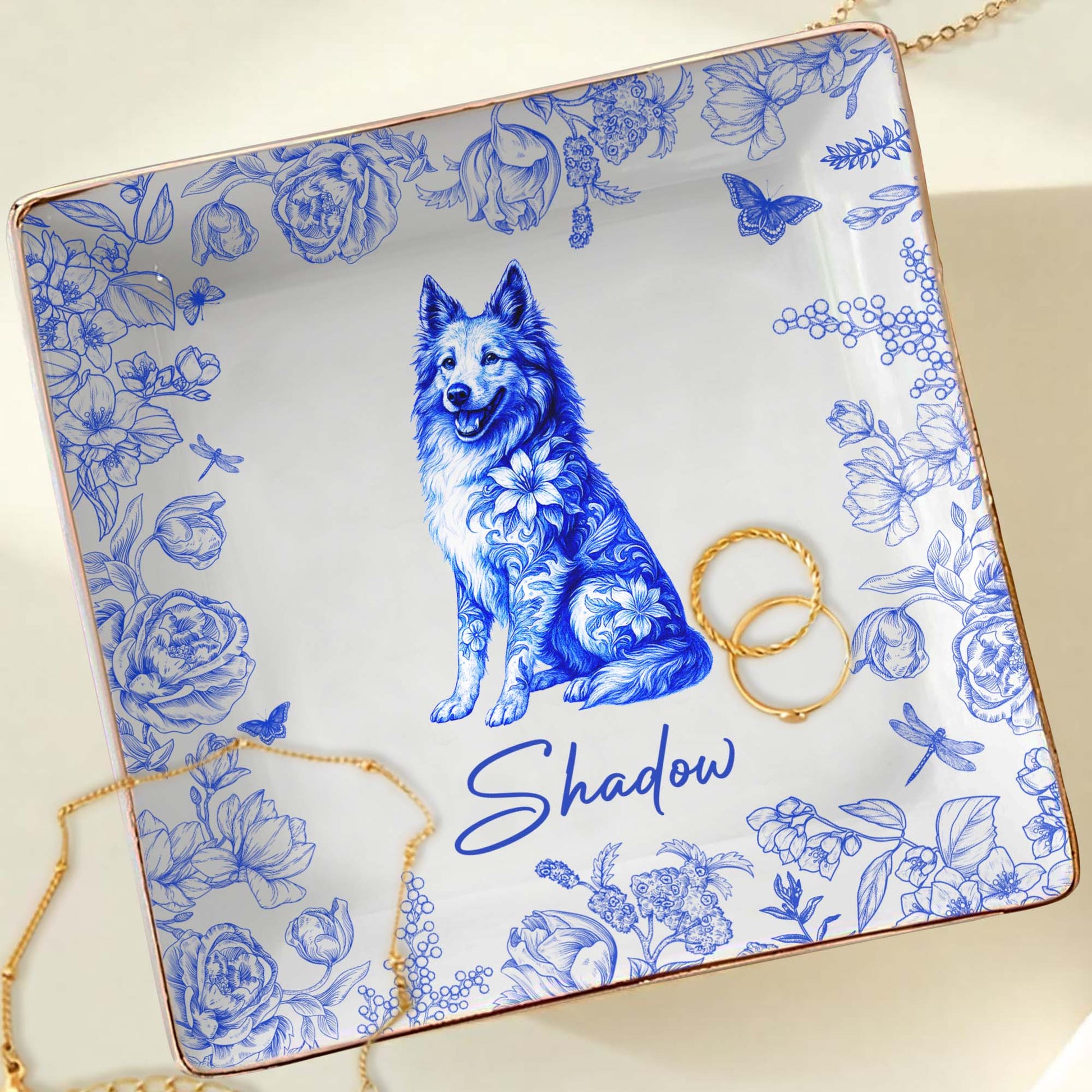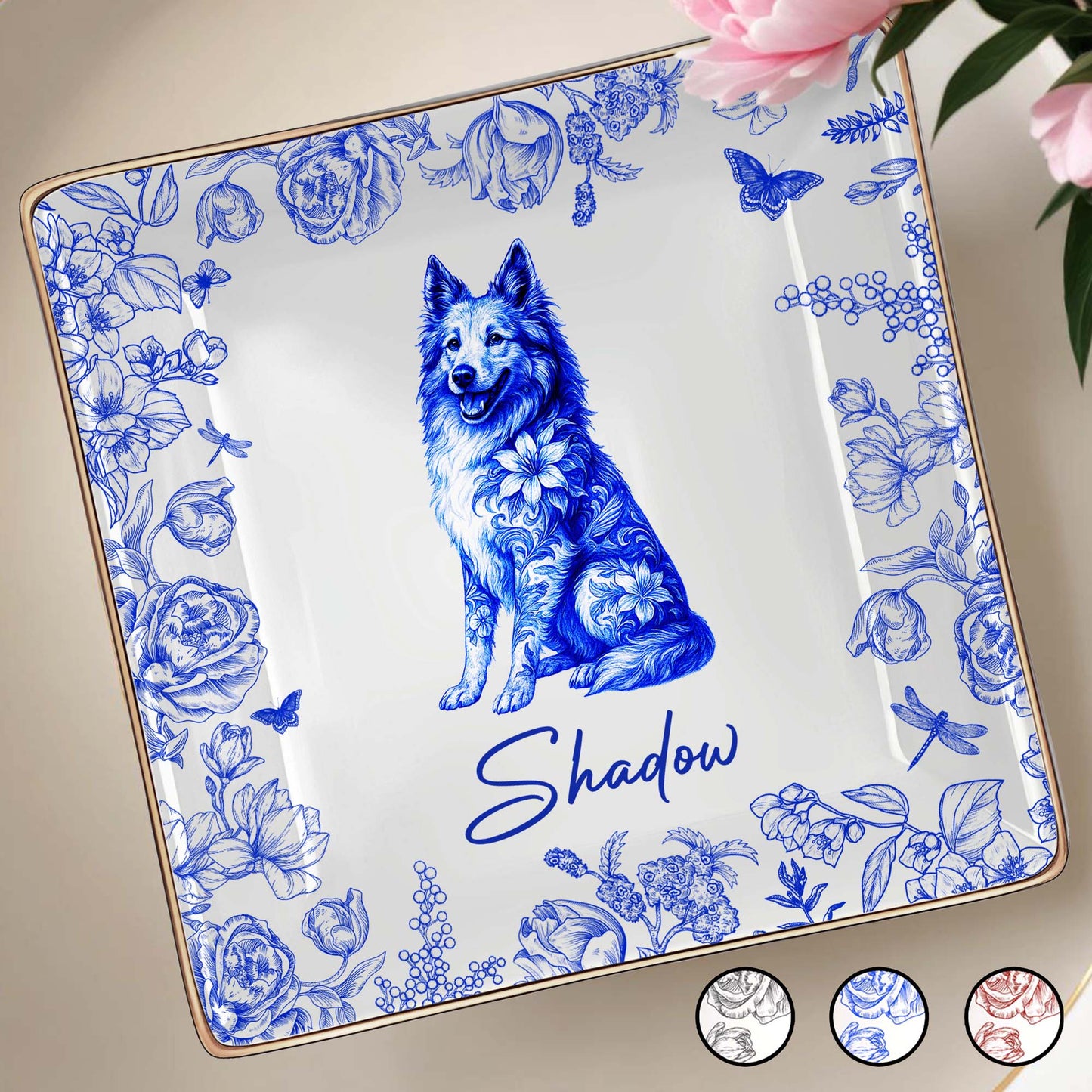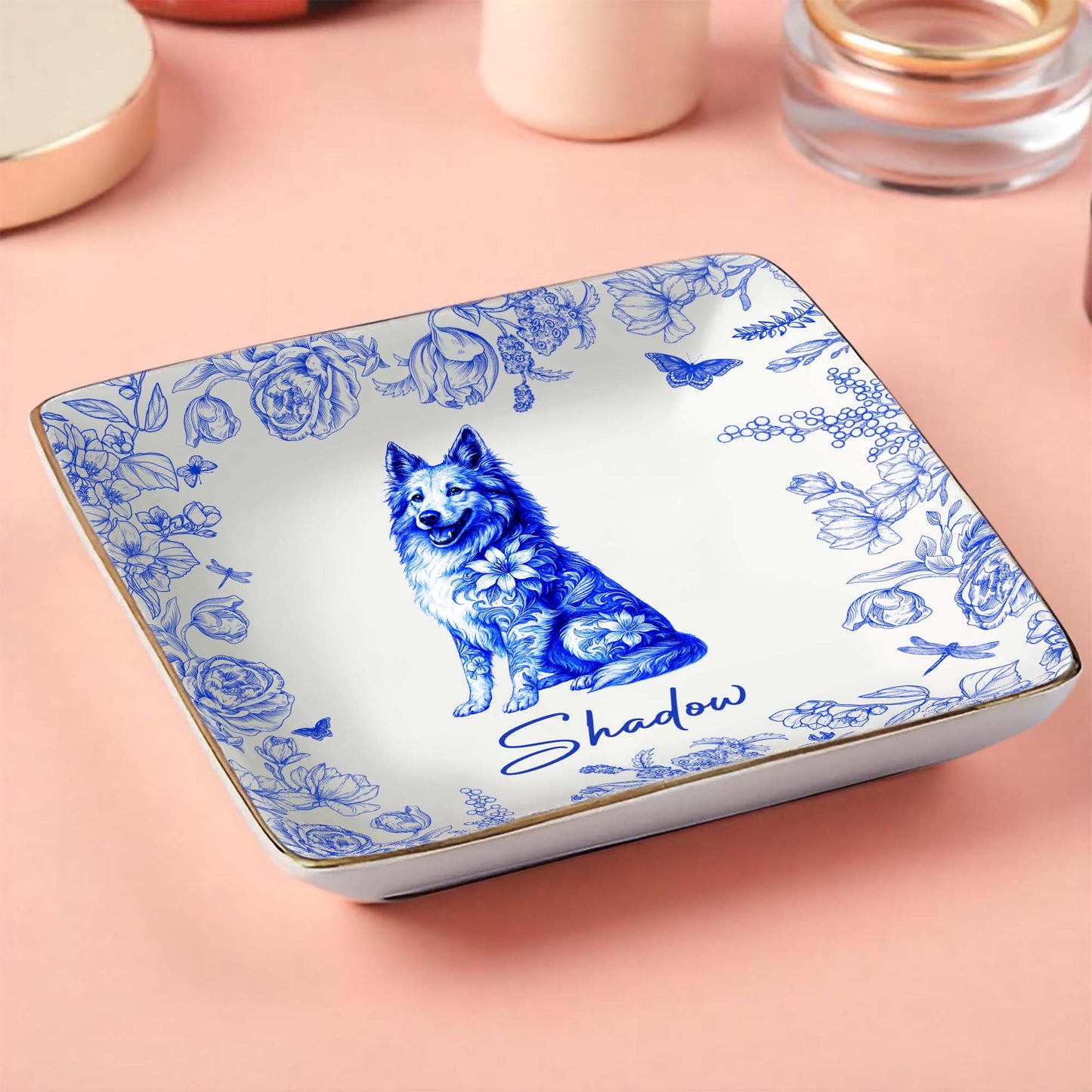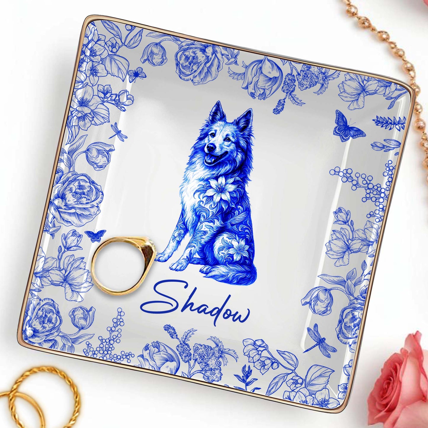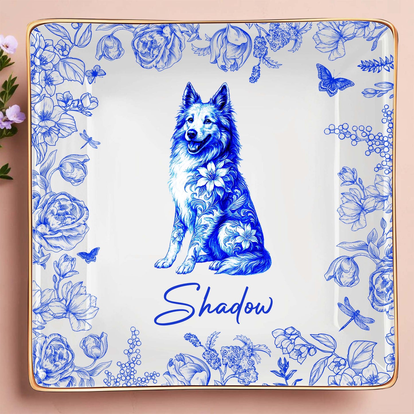 Beautiful Flowers And Pet Love - Personalized Custom Jewelry Dish, Ceramic Dish, Square Shape - DOG050_SCRF