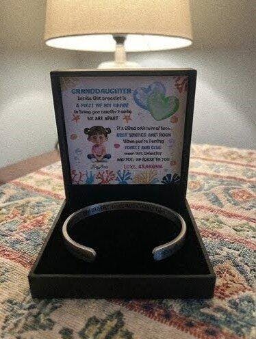 Share a heartfelt note they can wear every day. This stainless steel bracelet cuff arrives gift-ready with a designed message card inside a presentation box—customized to make your sentiment unforgettable.