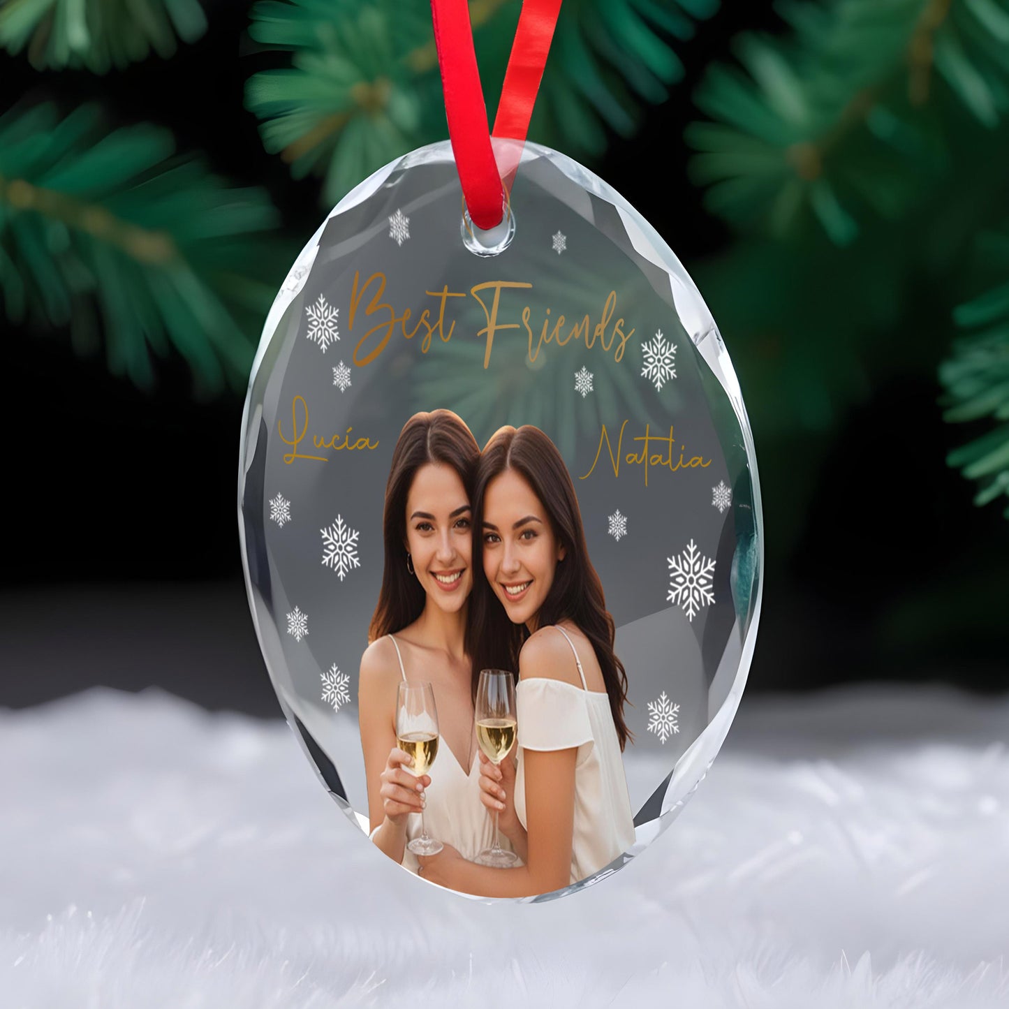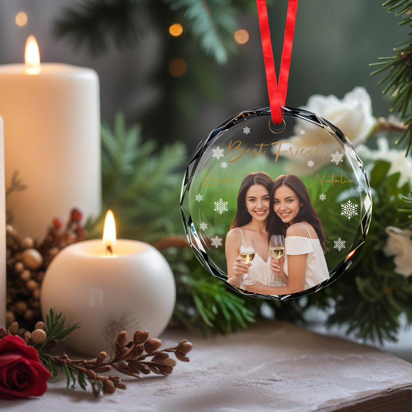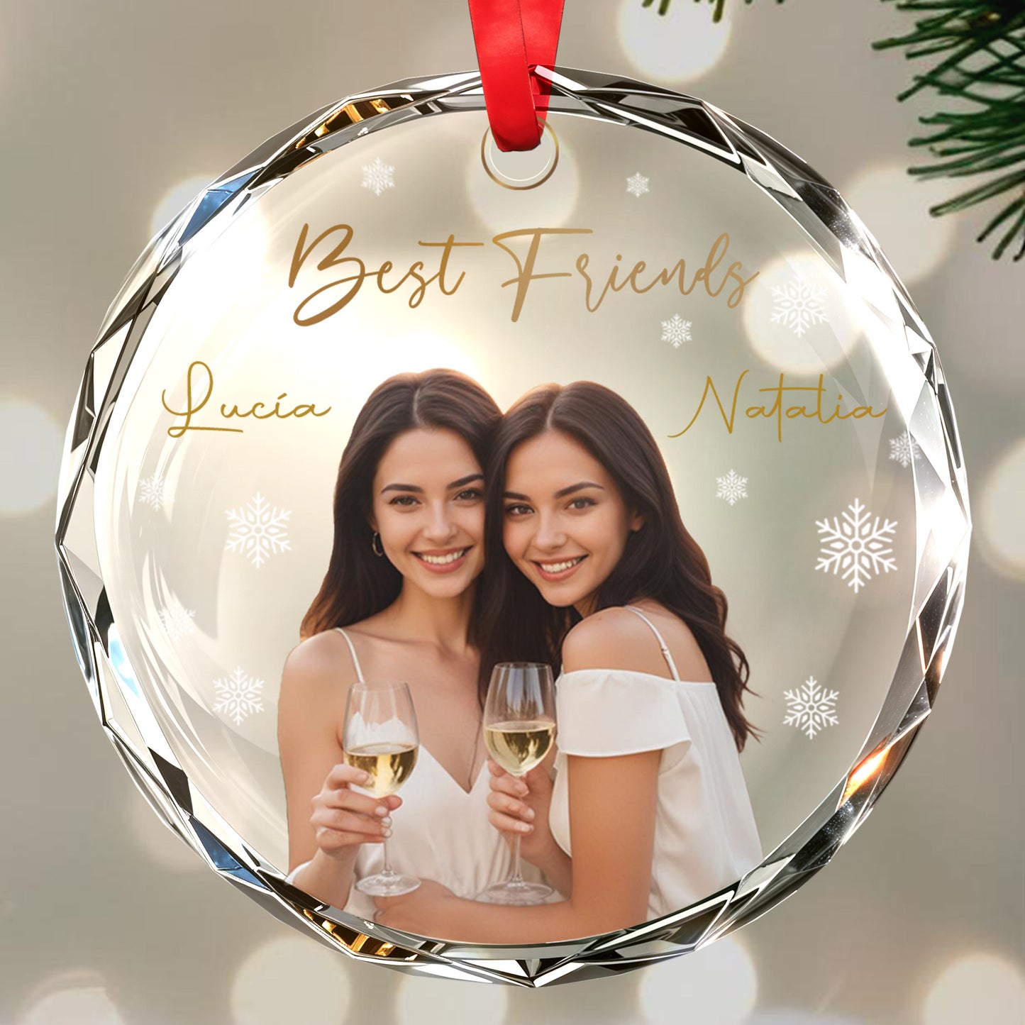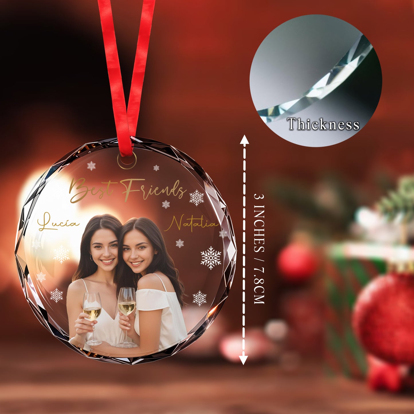 Best Friends Circle Glass Ornament - Personalized Custom Circle Glass Ornament - BST003_CGOR