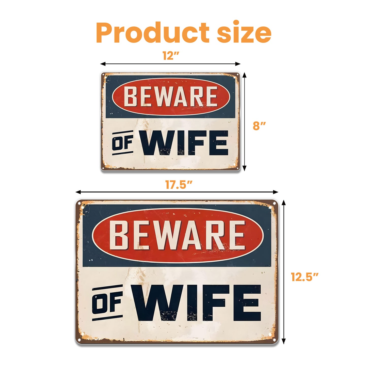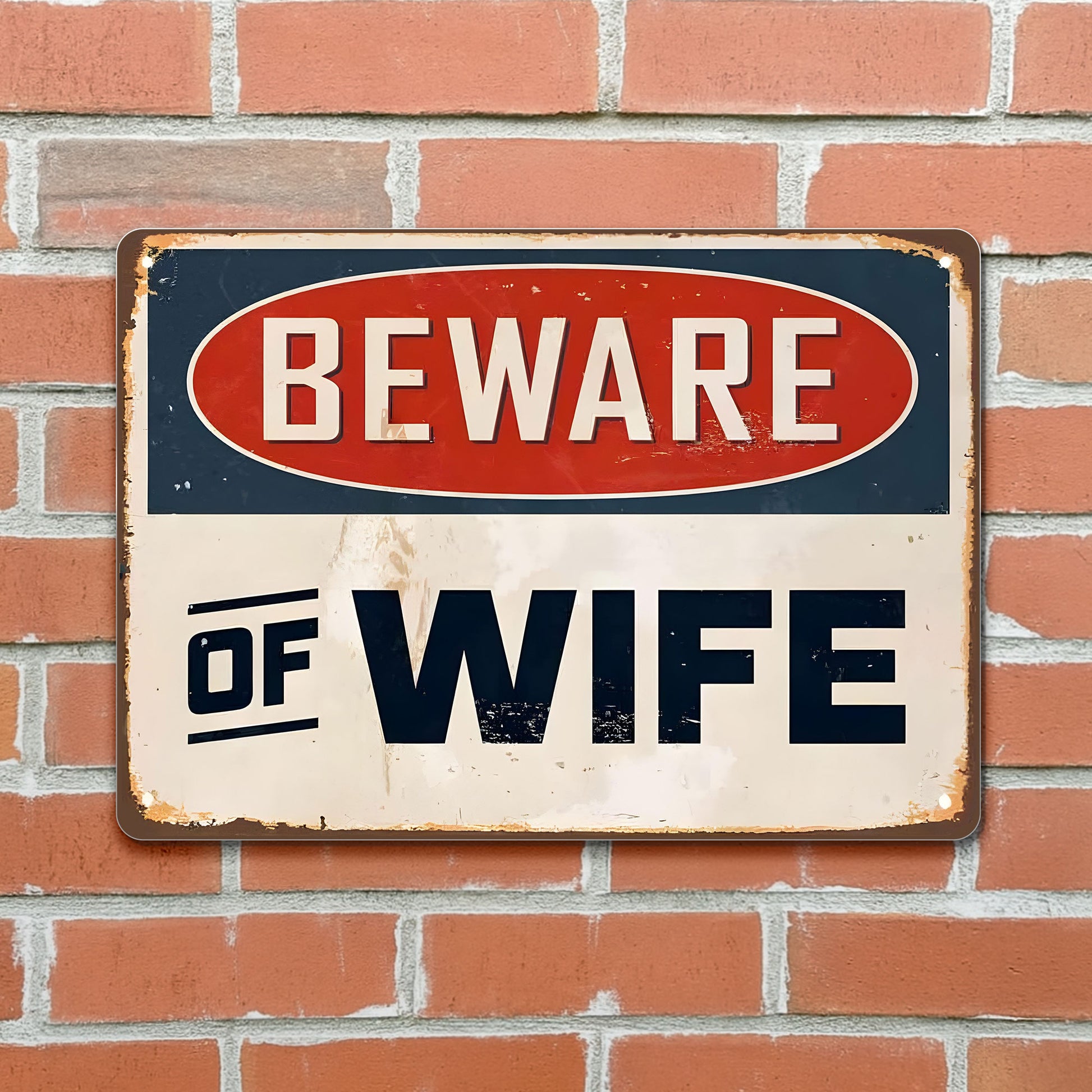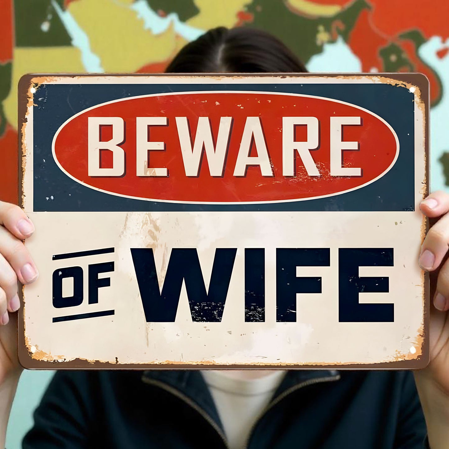 Beware Of Wife Humorous Sign, Personalized Metal Sign, Gift For Couples