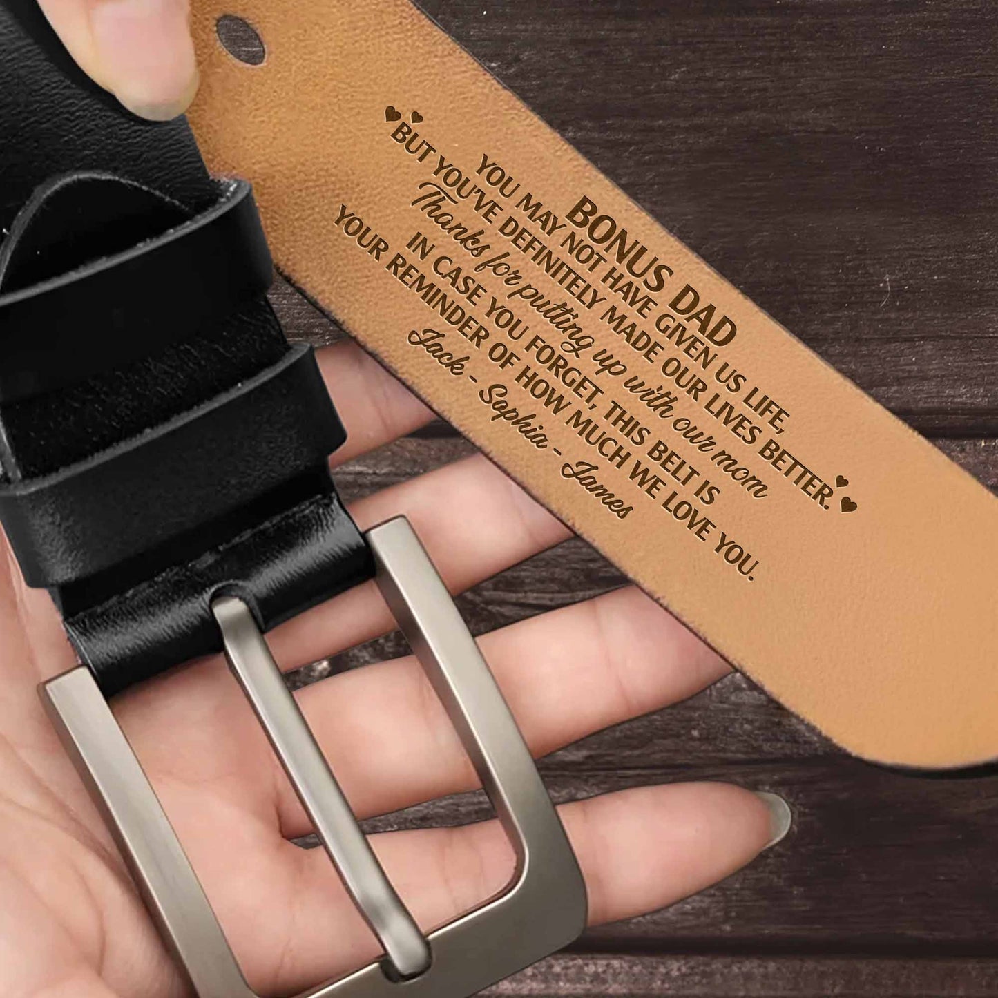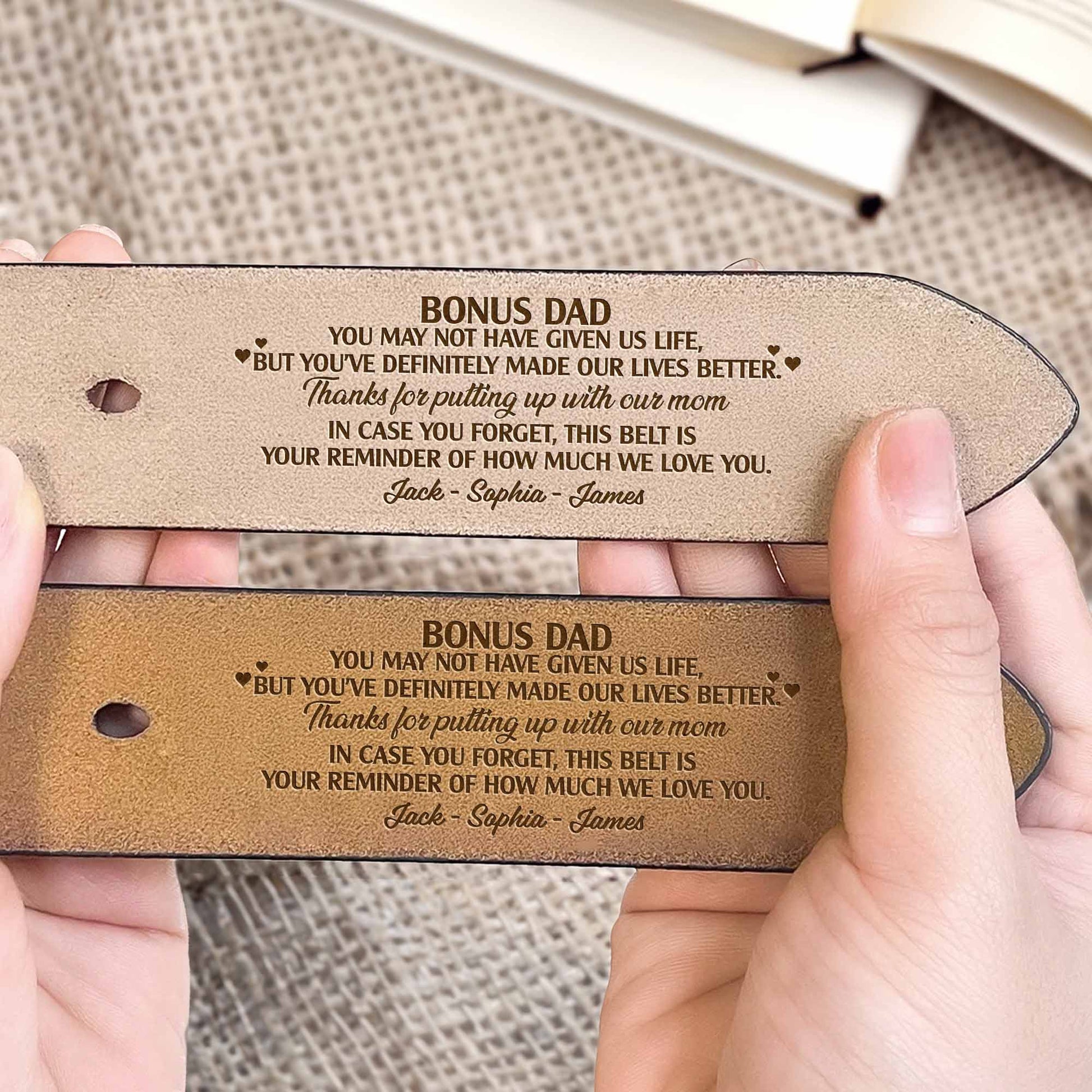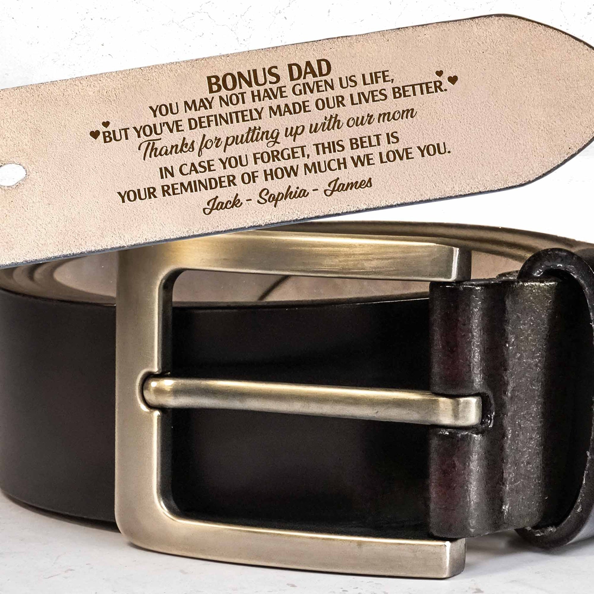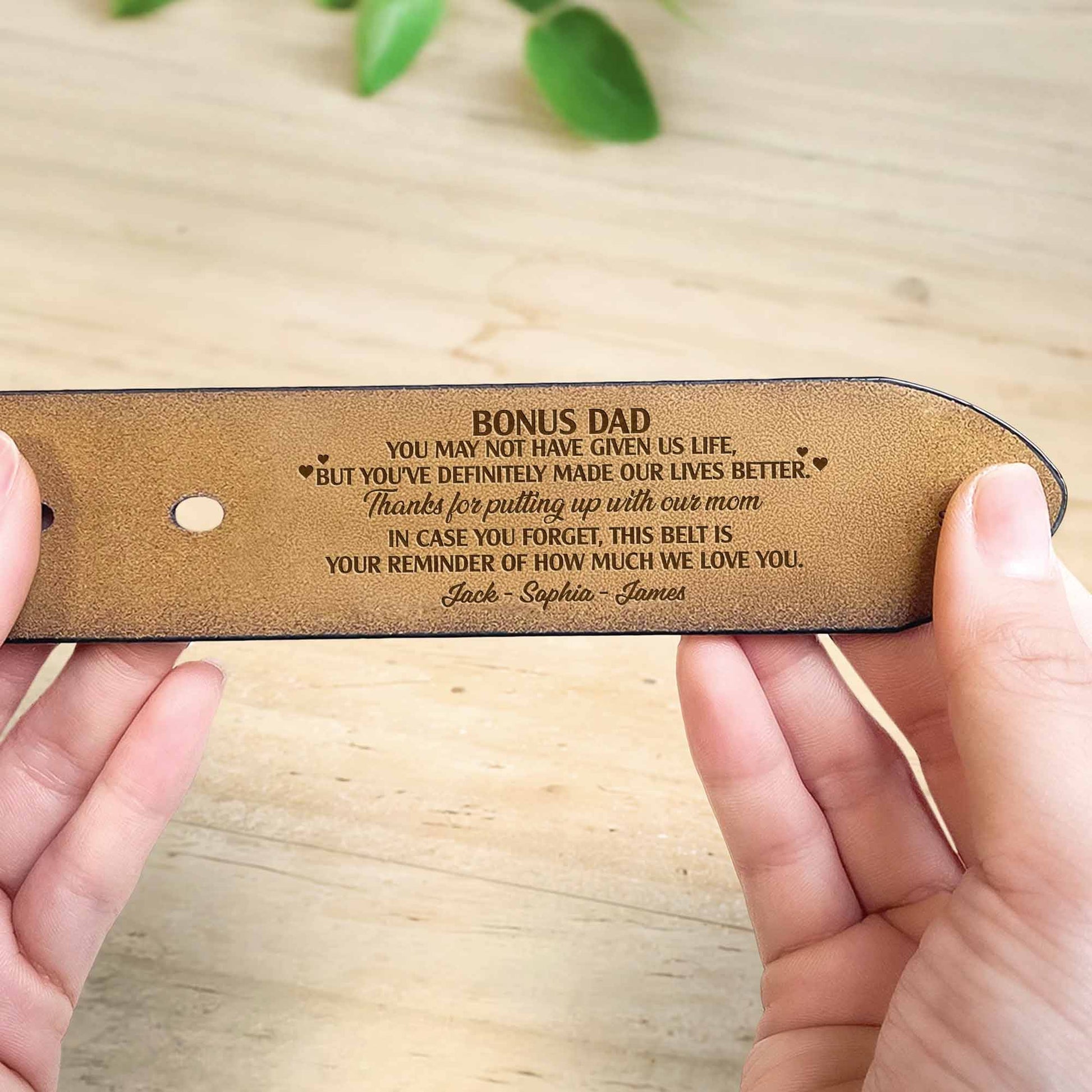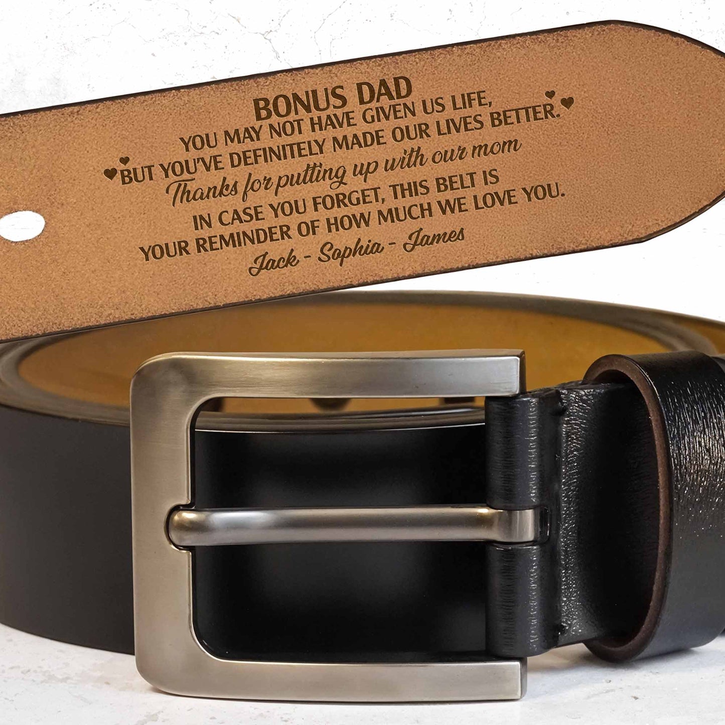 Bonus Dad Reminder How Much We Love You Belt, Personalized Engraved Leather Belt, Gift For Stepfather