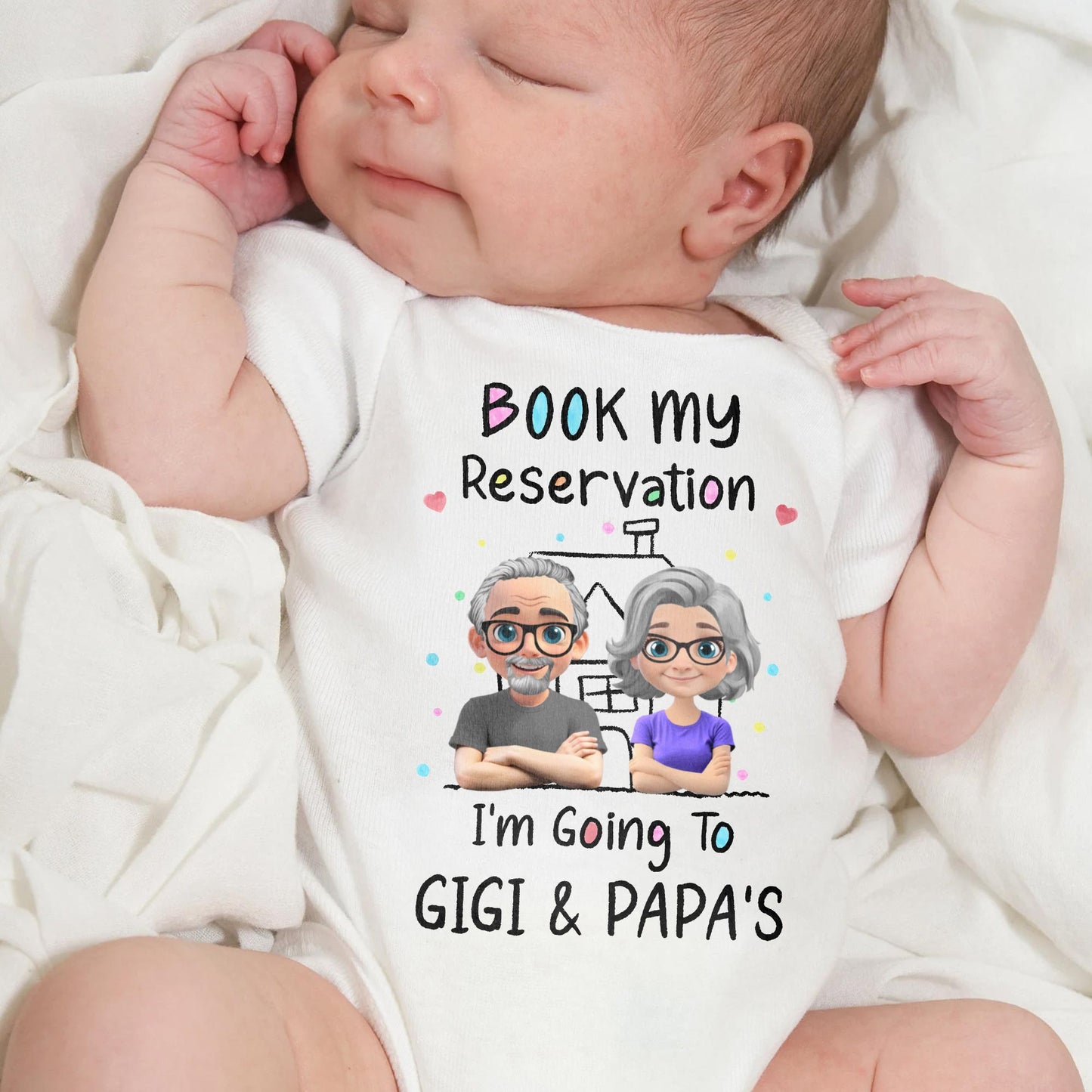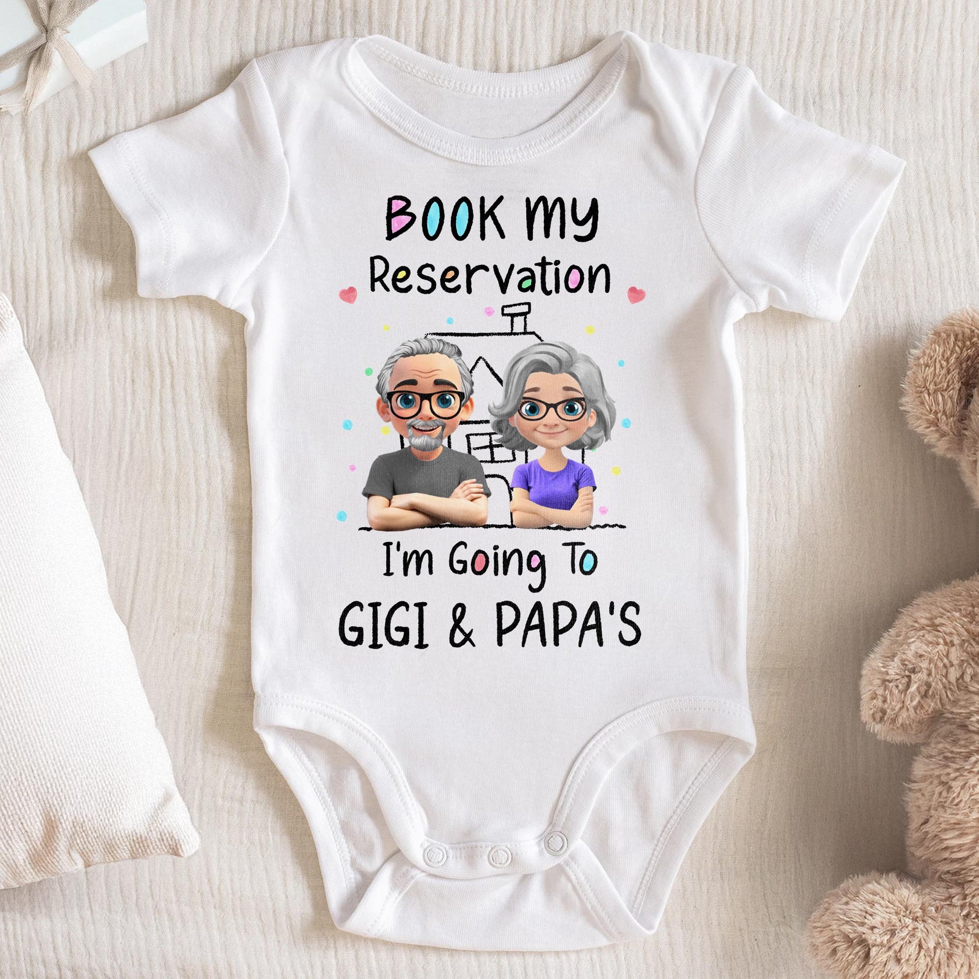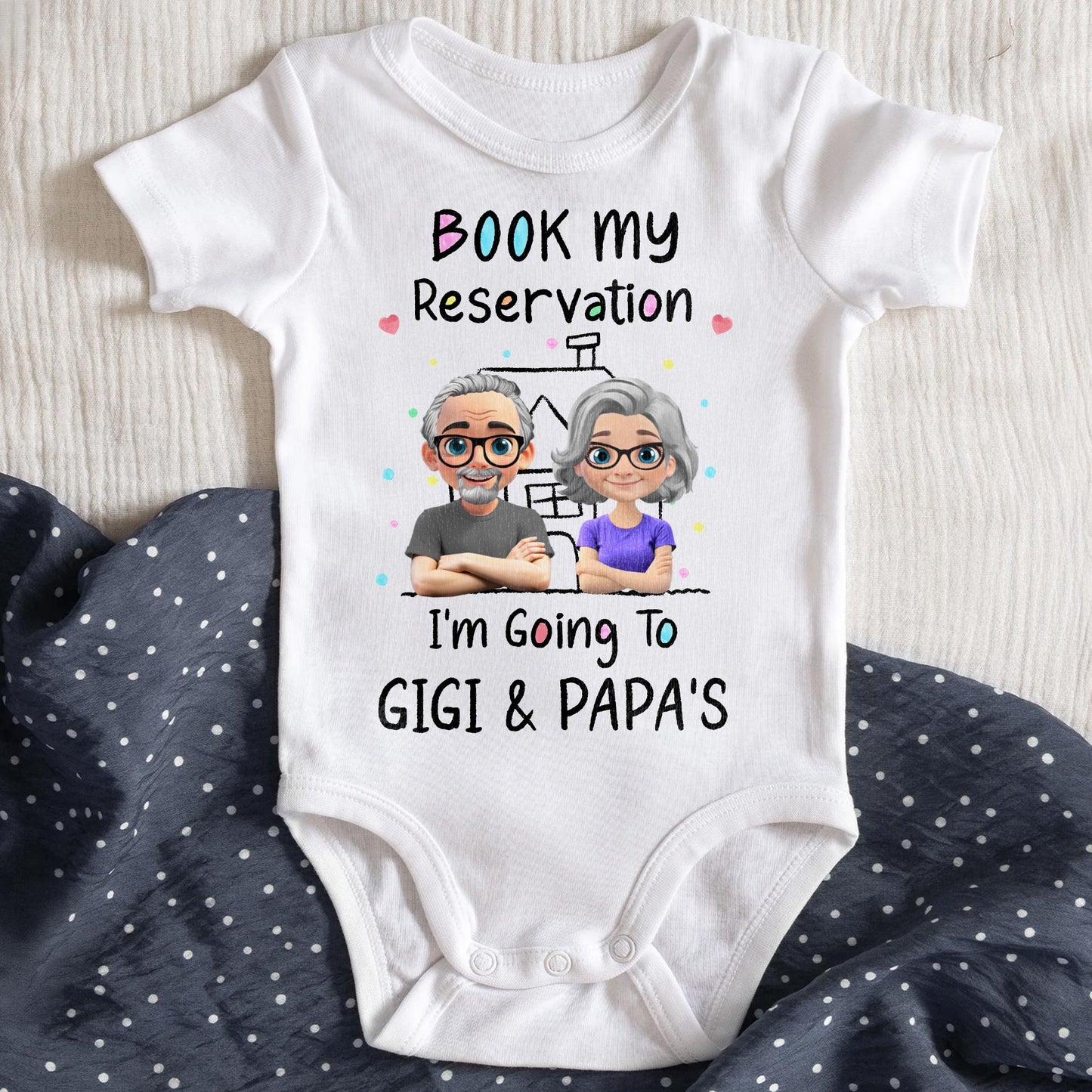 Book My Reservation To Gigi & Papa's,Personalized Custom Baby Onesie,Gift For Grandchildren