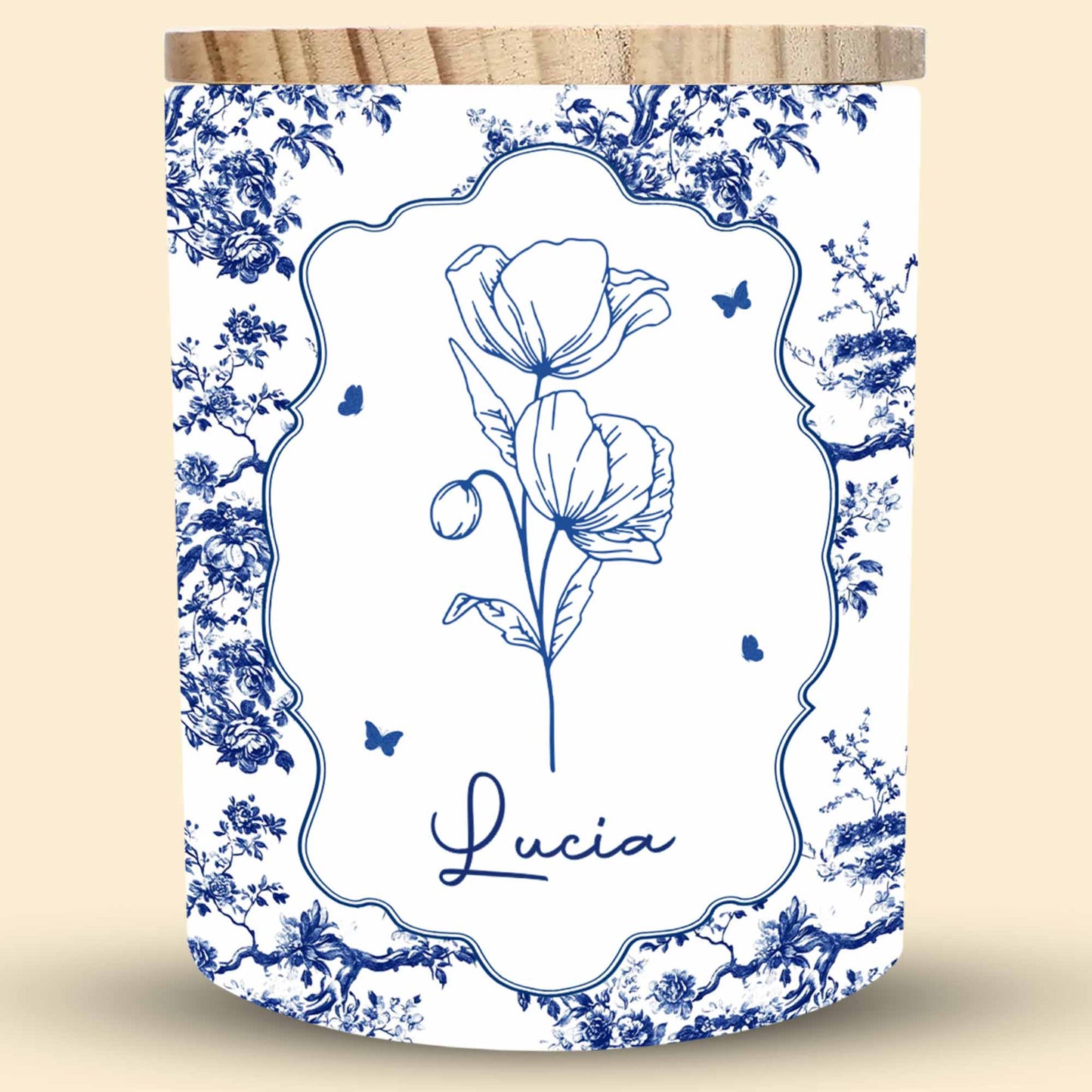 Message: Celebrate Every Moment With Our Elegant Custom Glass Jar Featuring Classic Florals