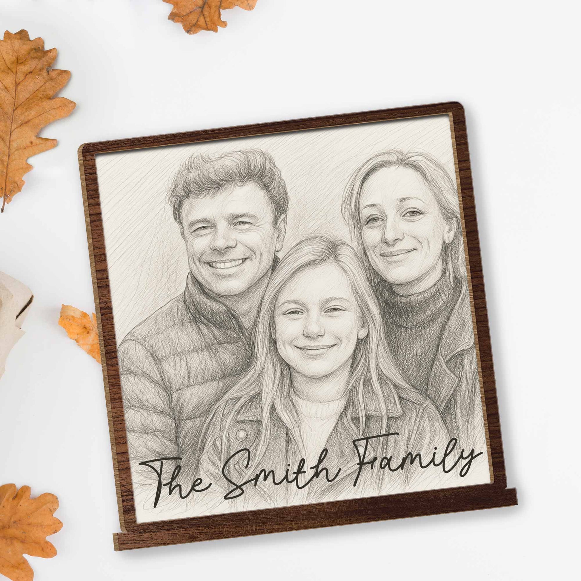 Celebrate Family Love With A Custom Portrait,2-Layer Wood Plaque,Gift For Families