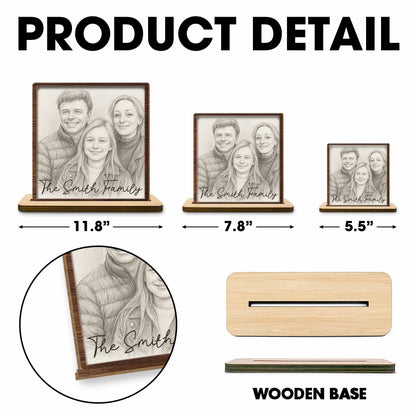 Celebrate Family Love With A Custom Portrait - Personalized Custom 2-Layer Wood Plaque With Flat Base - FAM396_WPLA