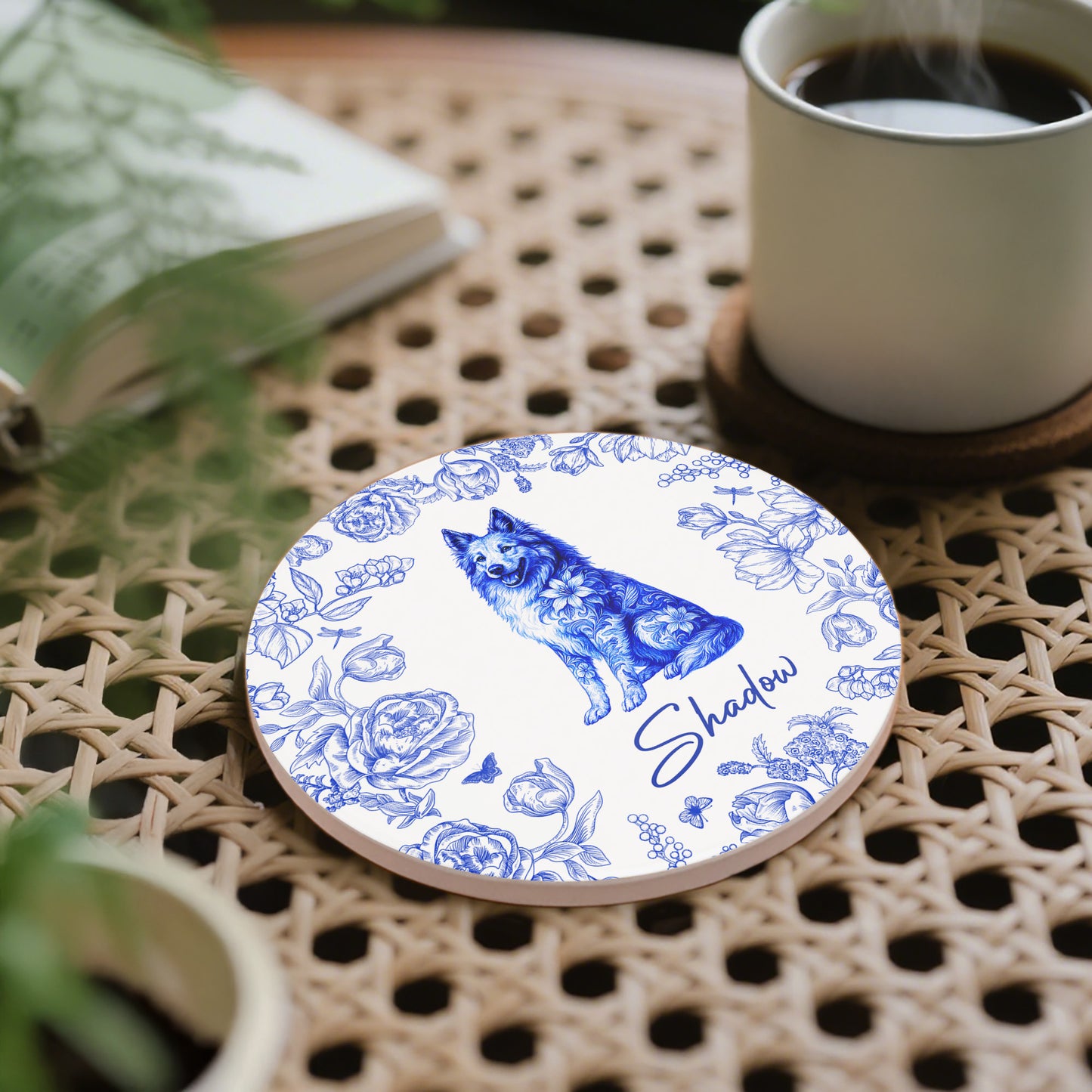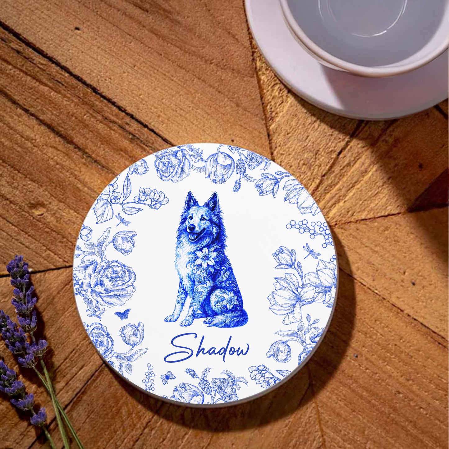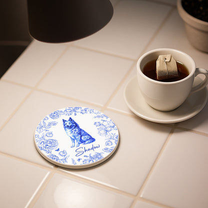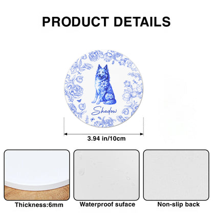 Message: Celebrate Your Furry Friend with This Beautifully Designed Ceramic Coaster Featuring a Beloved Pet and Elegant Floral Accents.