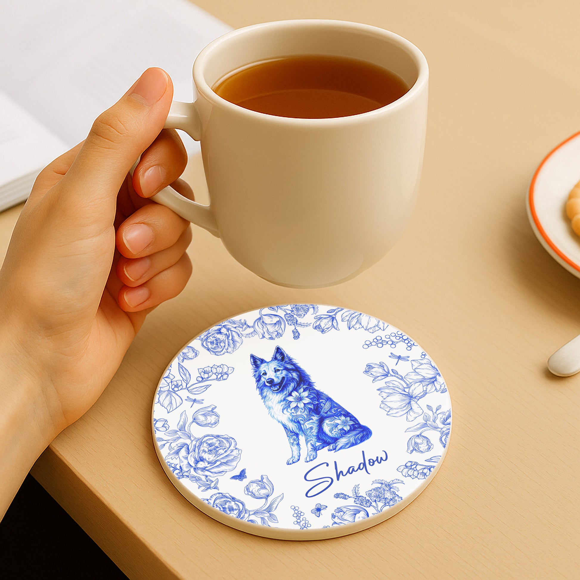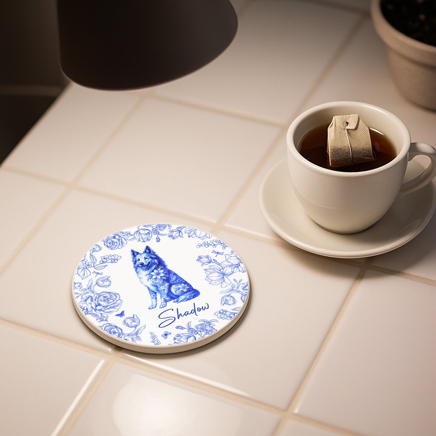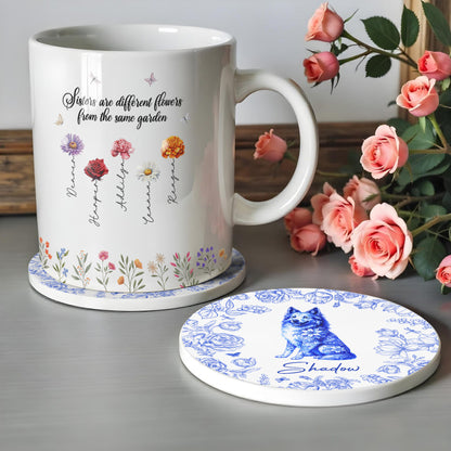 Celebrate Your Furry Friend Floral And Pet Design,Custom Ceramic Coaster,Gift For Pet Owners and Dog Lovers