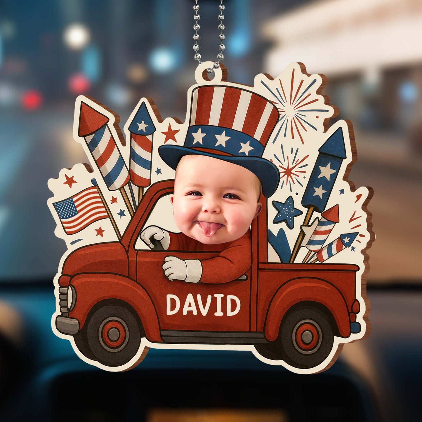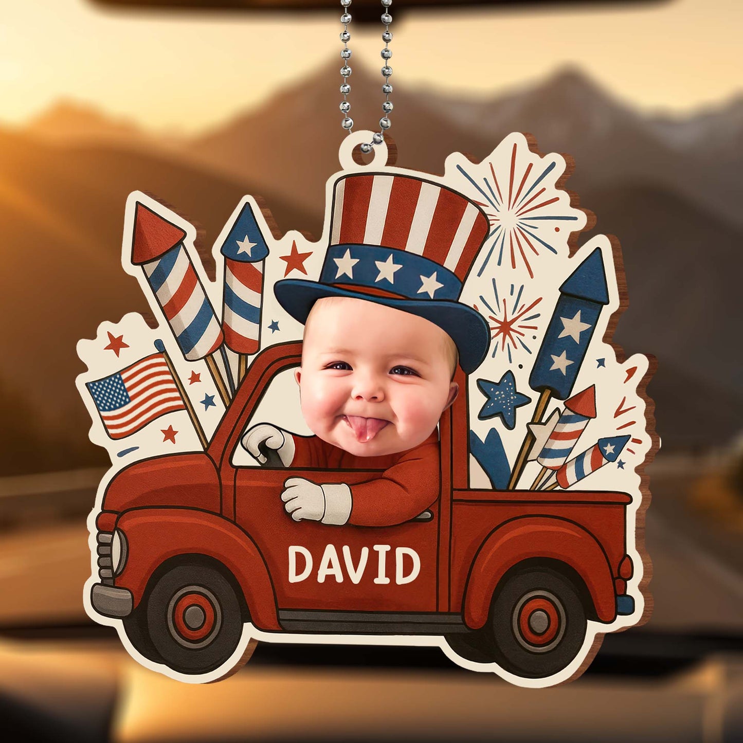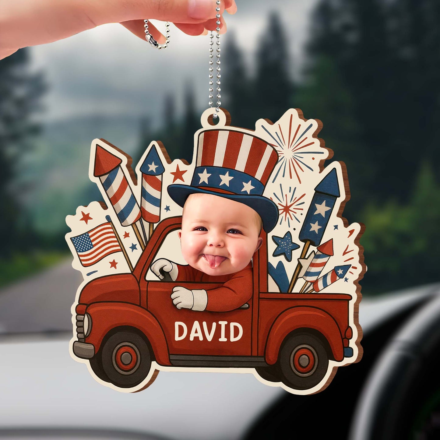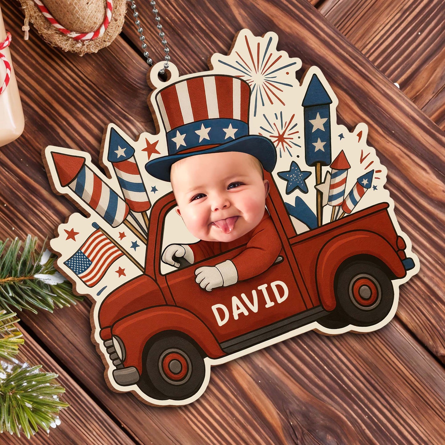 Celebrate Your Pride With Fireworks And American Flag Design - Personalized Custom Wood Ornament, Car Hanging Ornament - KID086_WCA