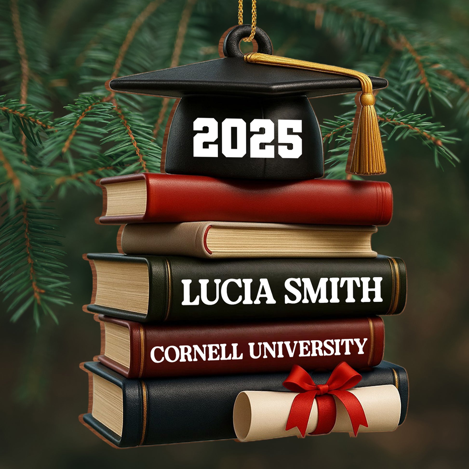 Celebrating Academic Excellence Books And Diploma,Custom Wood Ornament,Gift For Graduates