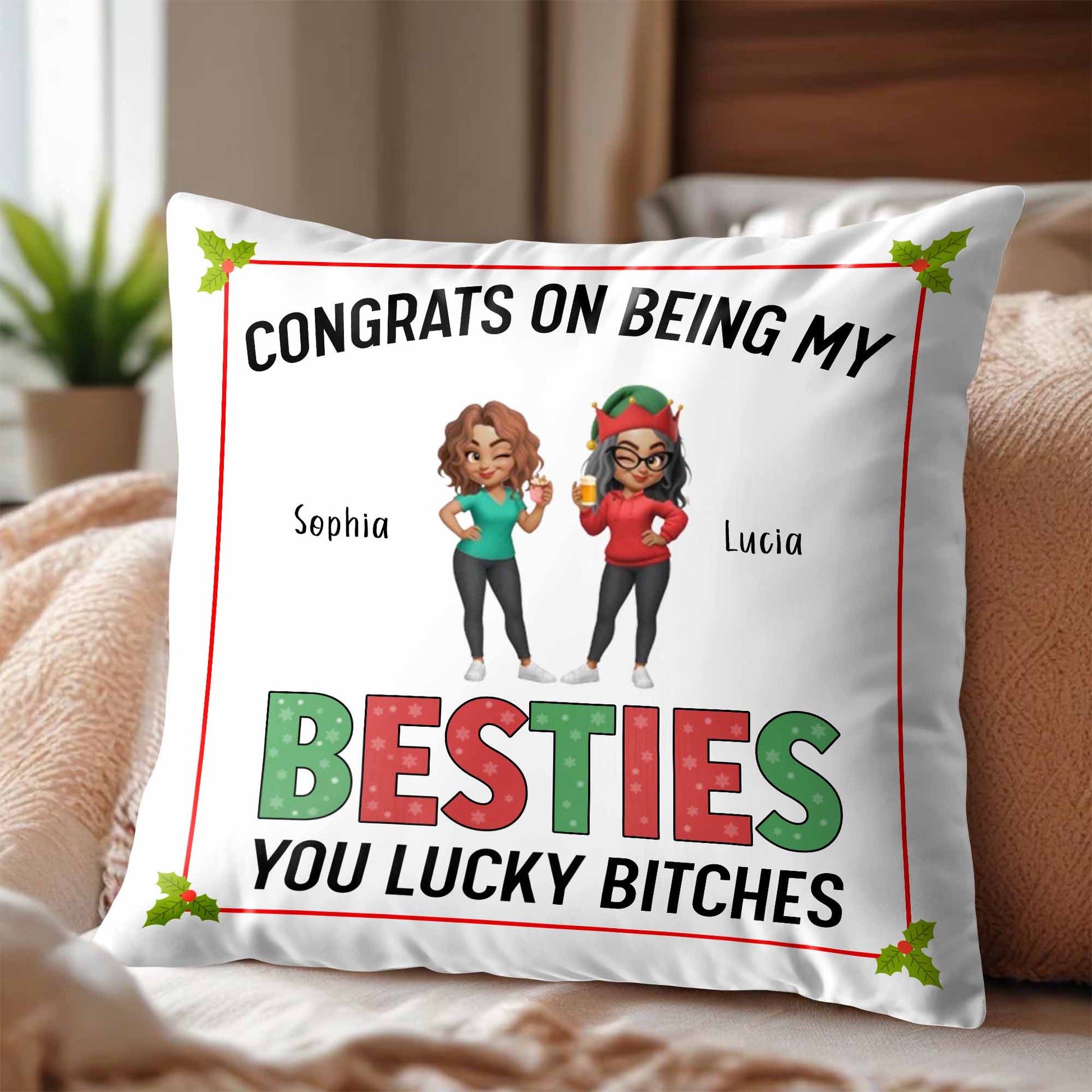 Congrats On Being My Besties, Christmas Holly Pillow - Personalized Custom Pillow, Insert Included - BST338_PLW