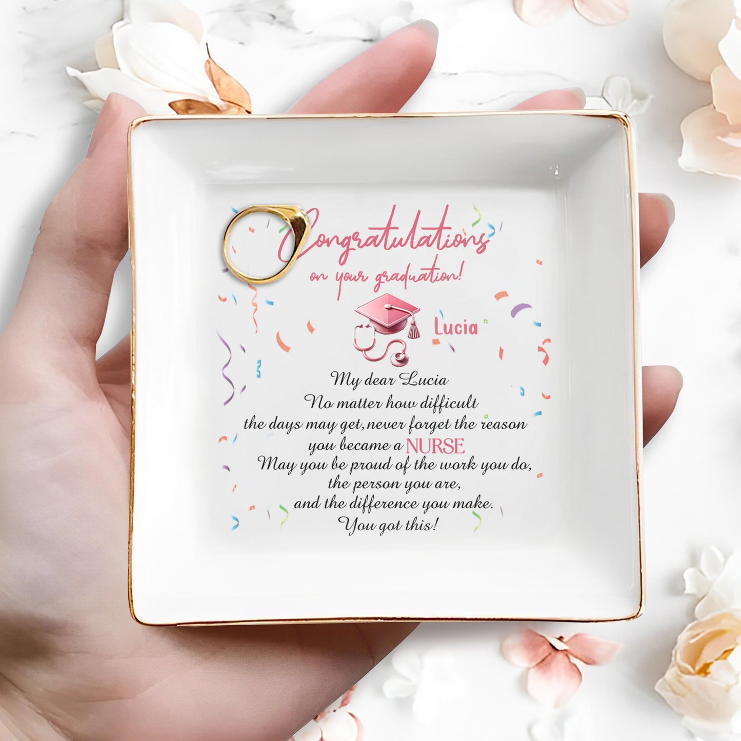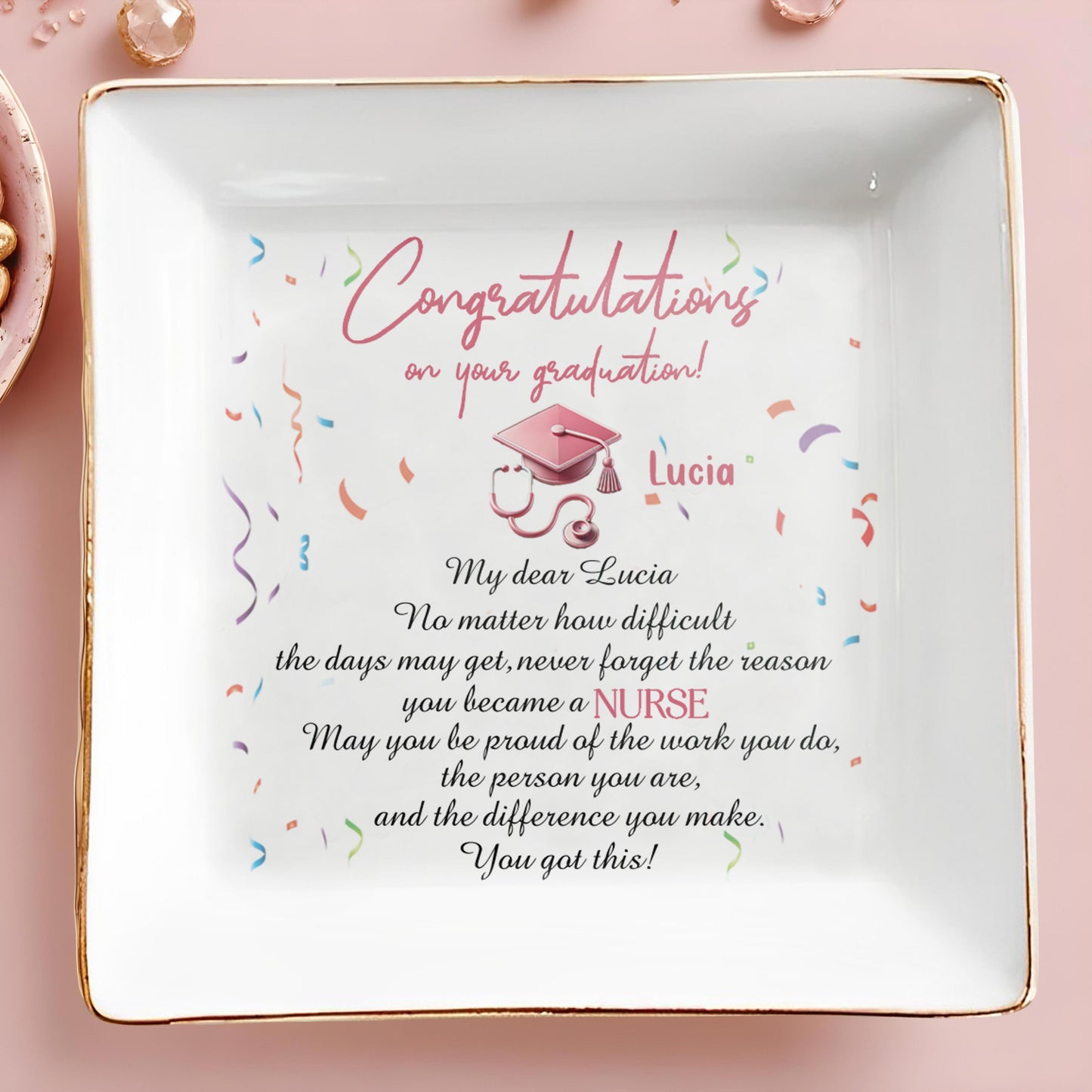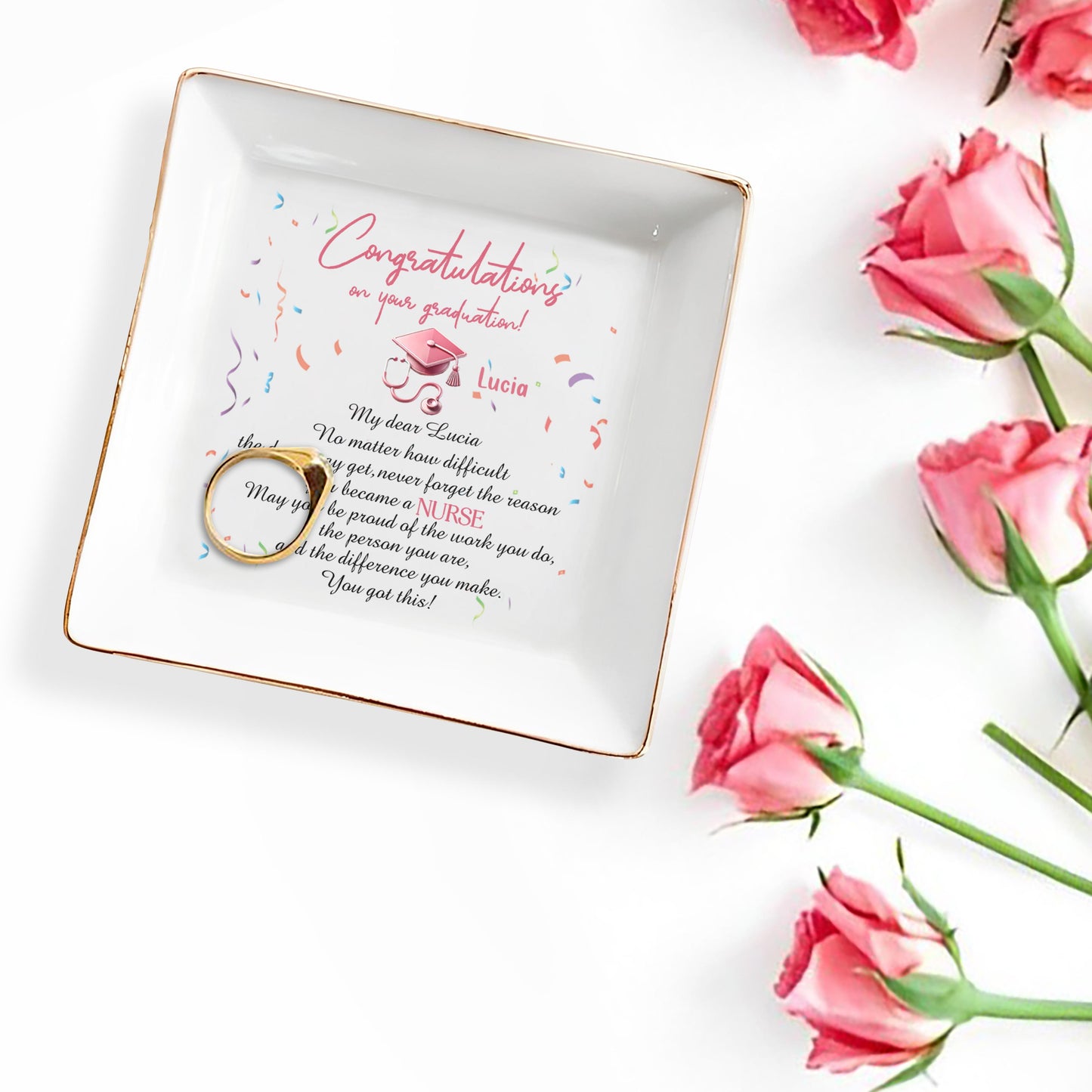 Congratulations On Your Graduation! Graduation Cap And Confetti, Personalized Custom Jewelry Dish, Gift For Graduates And Nurses