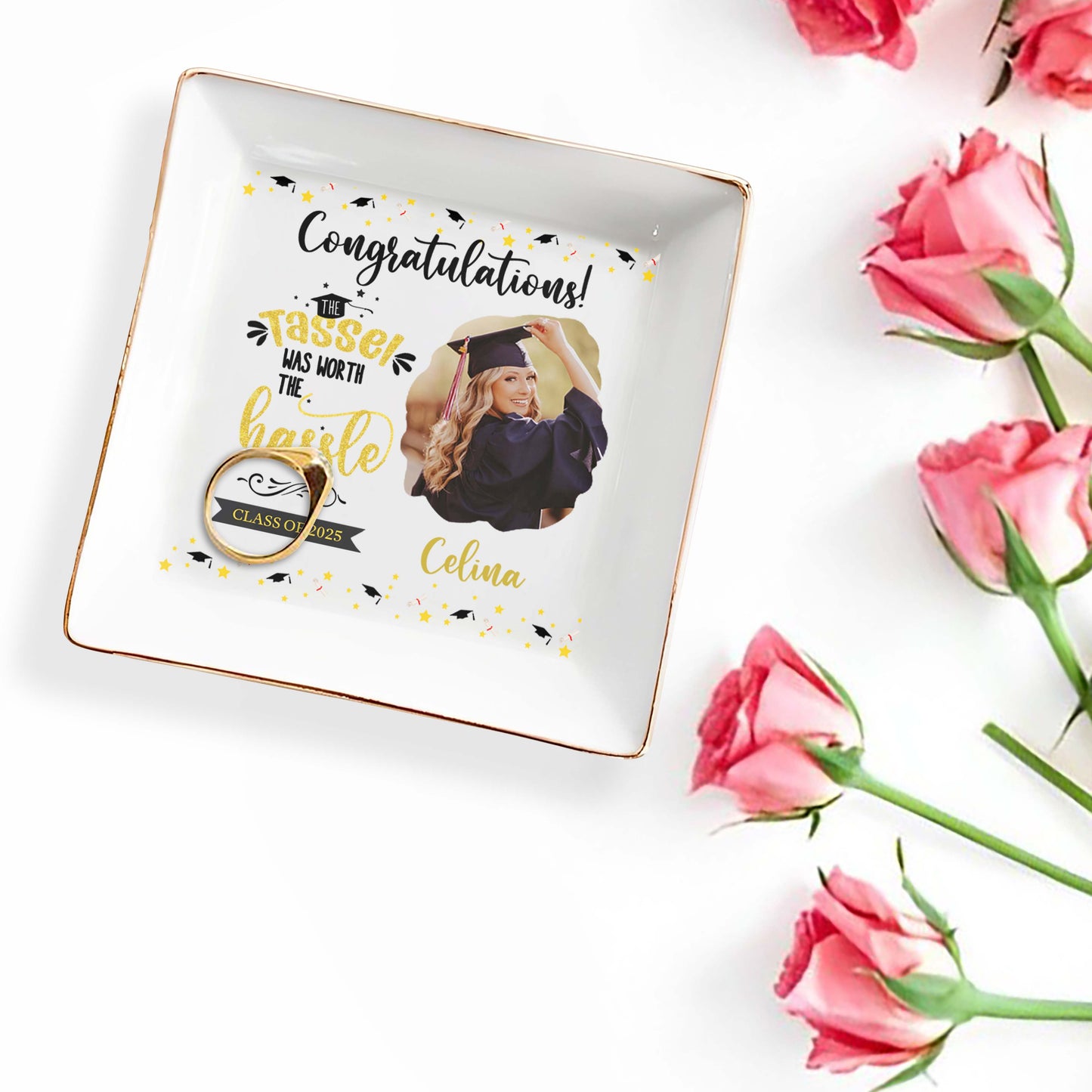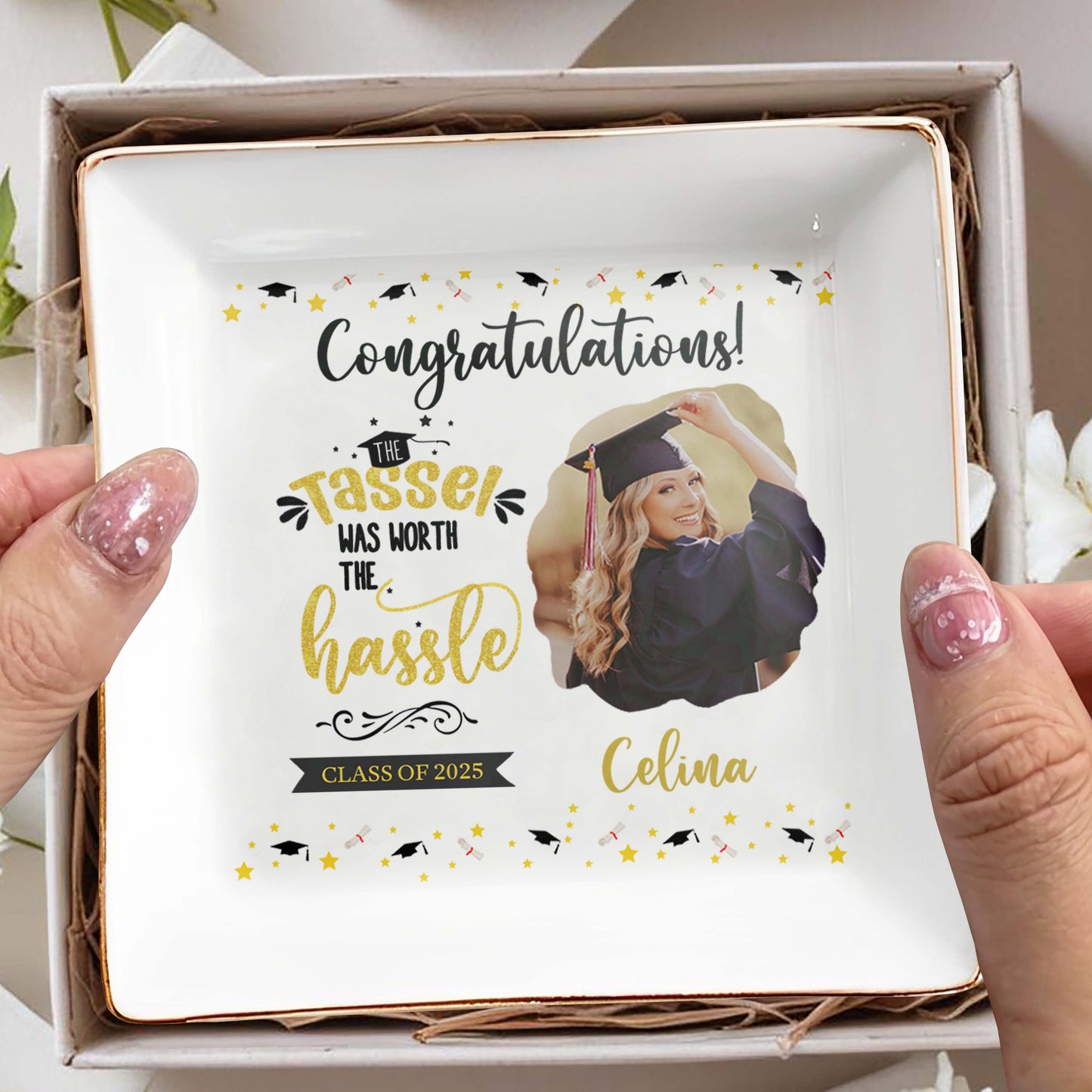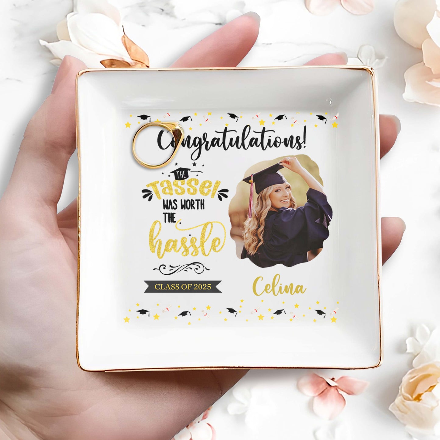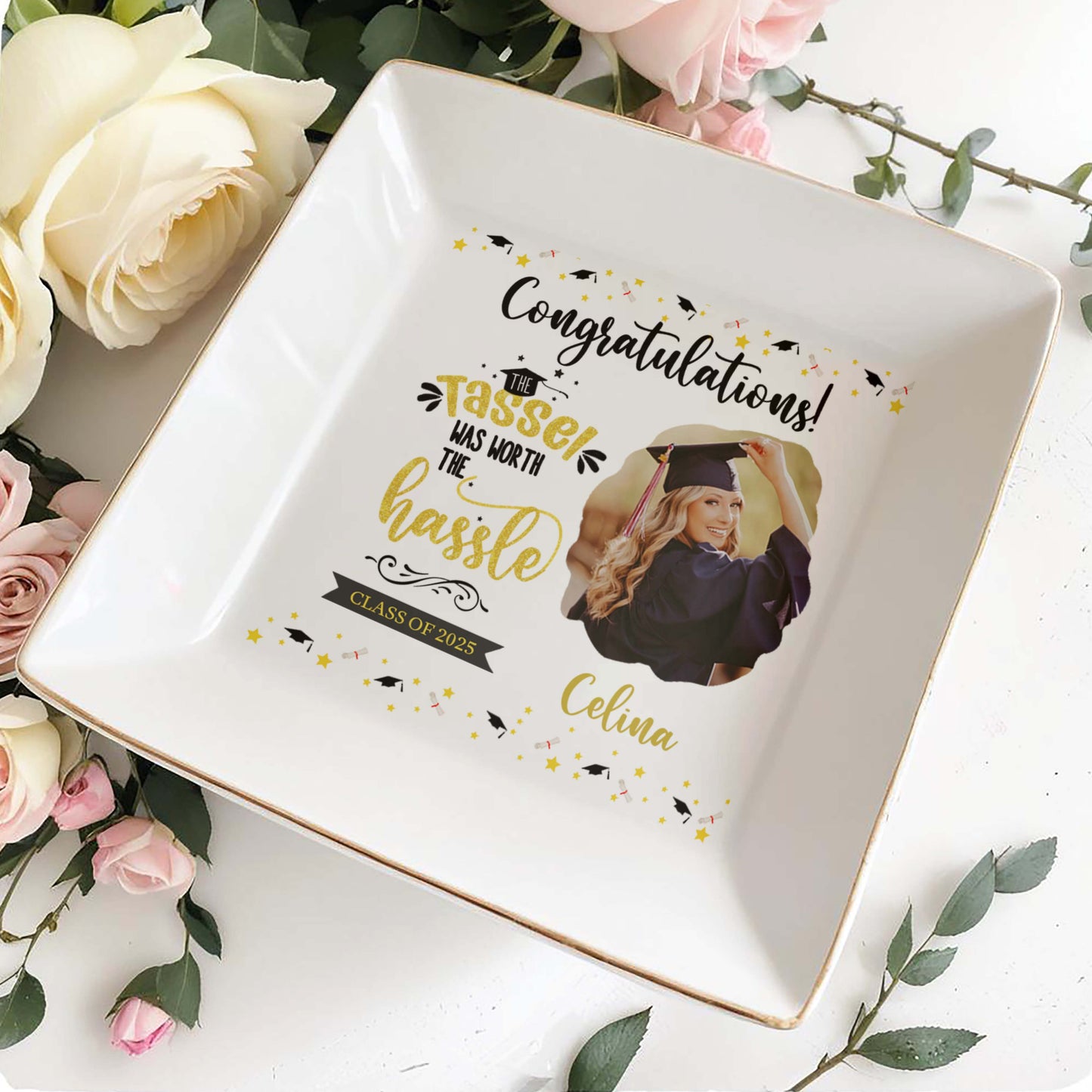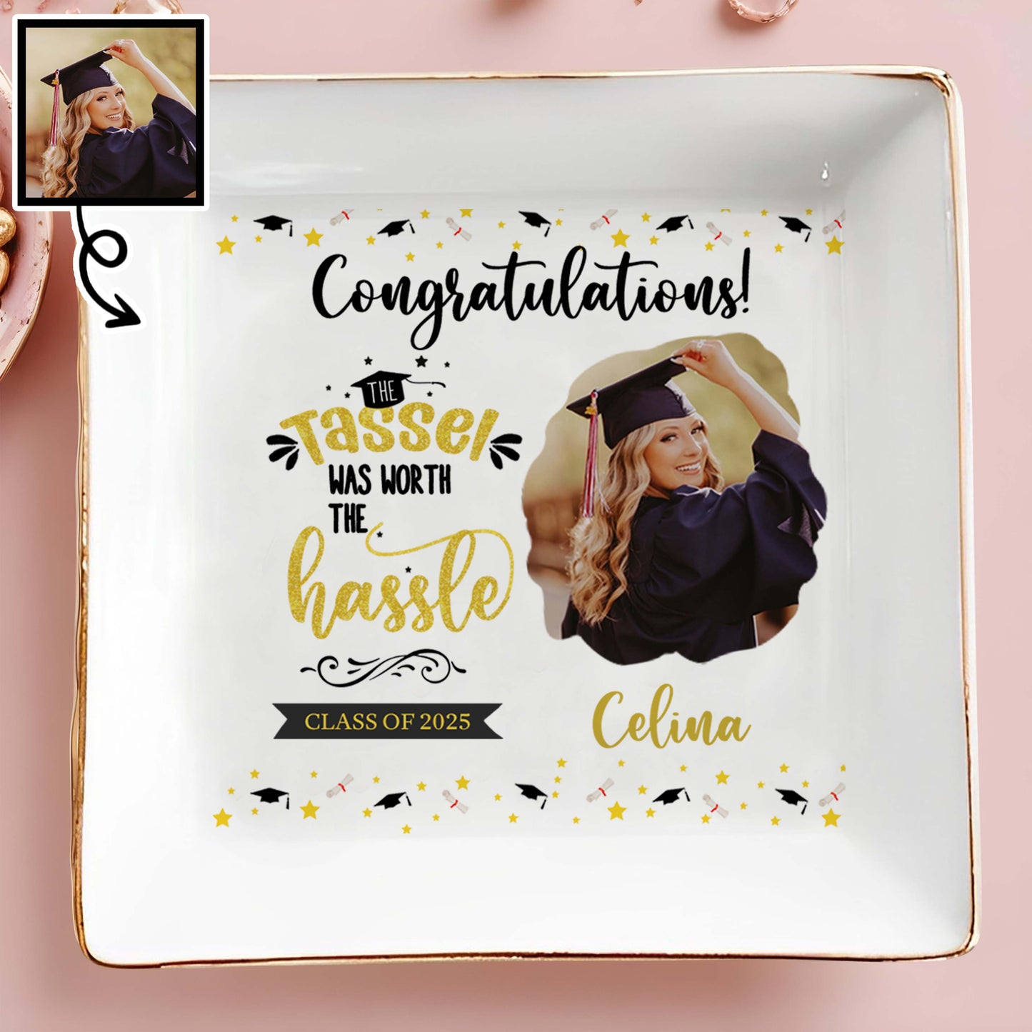 Congratulations! The Tassel Was Worth The Hassle, Graduation Cap and Stars, Personalized Custom Jewelry Dish, Gift For Graduates