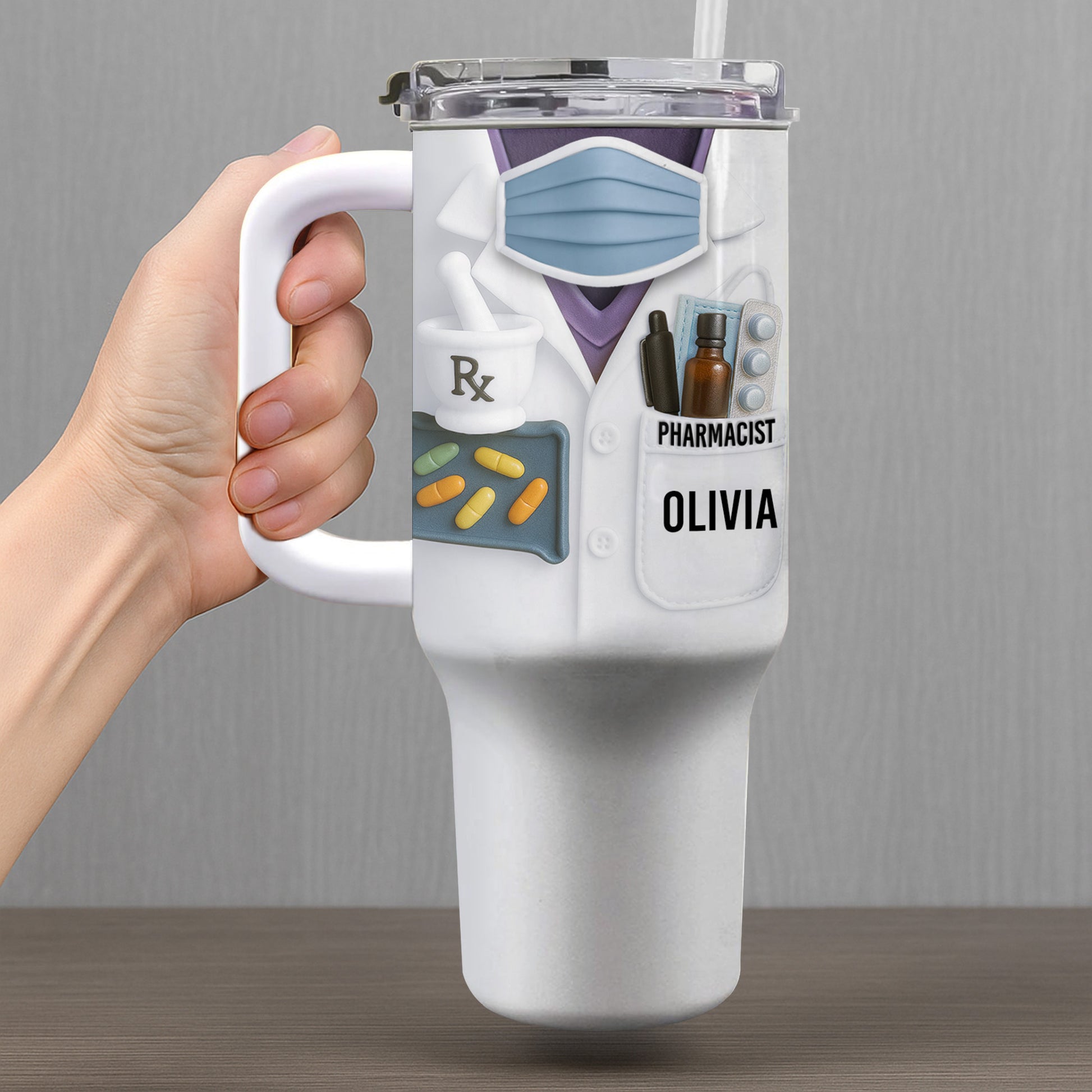 Customizable Tumbler For Pharmacists With Medical Essentials, Personalized 40oz Tumbler With Straw, Gift For Healthcare Professionals