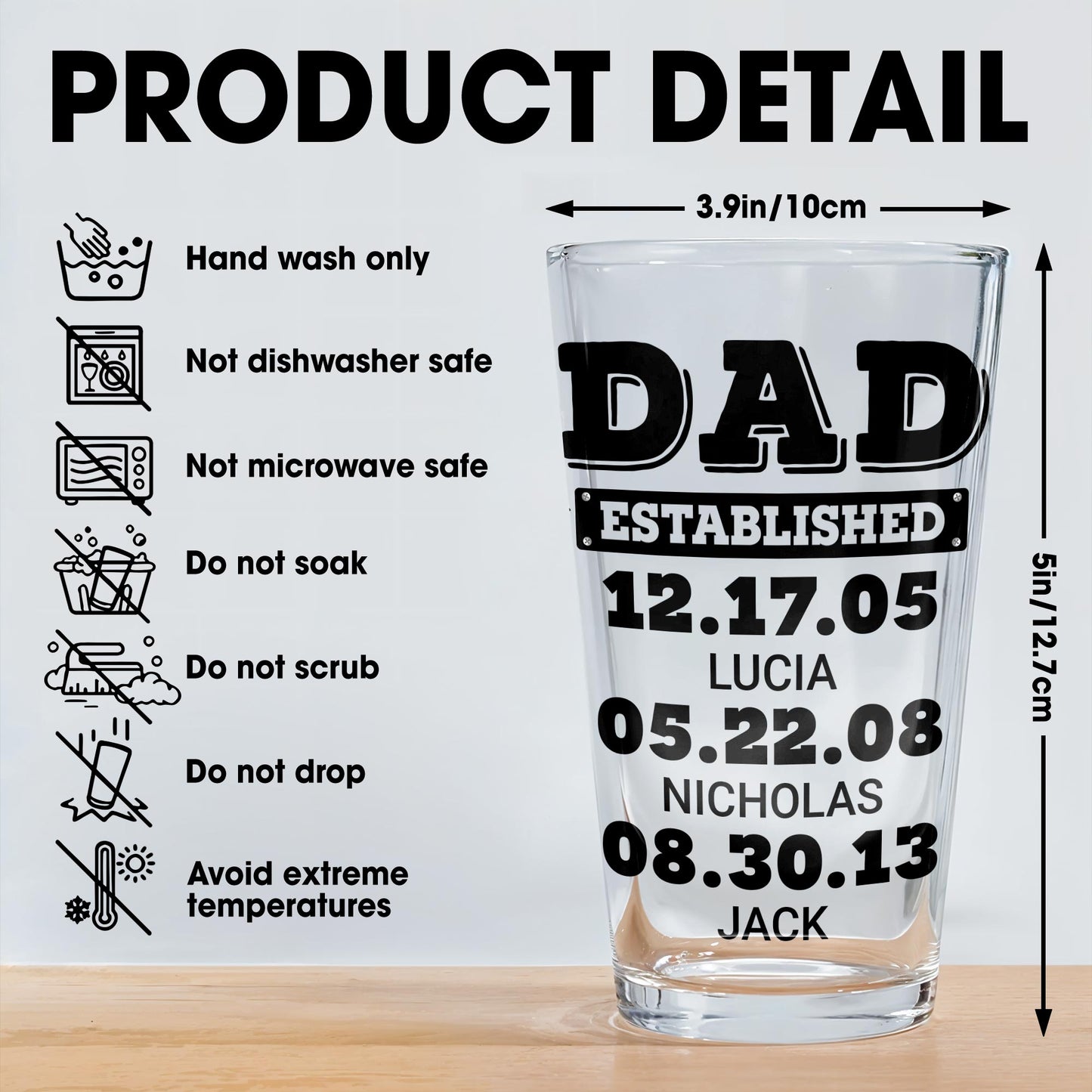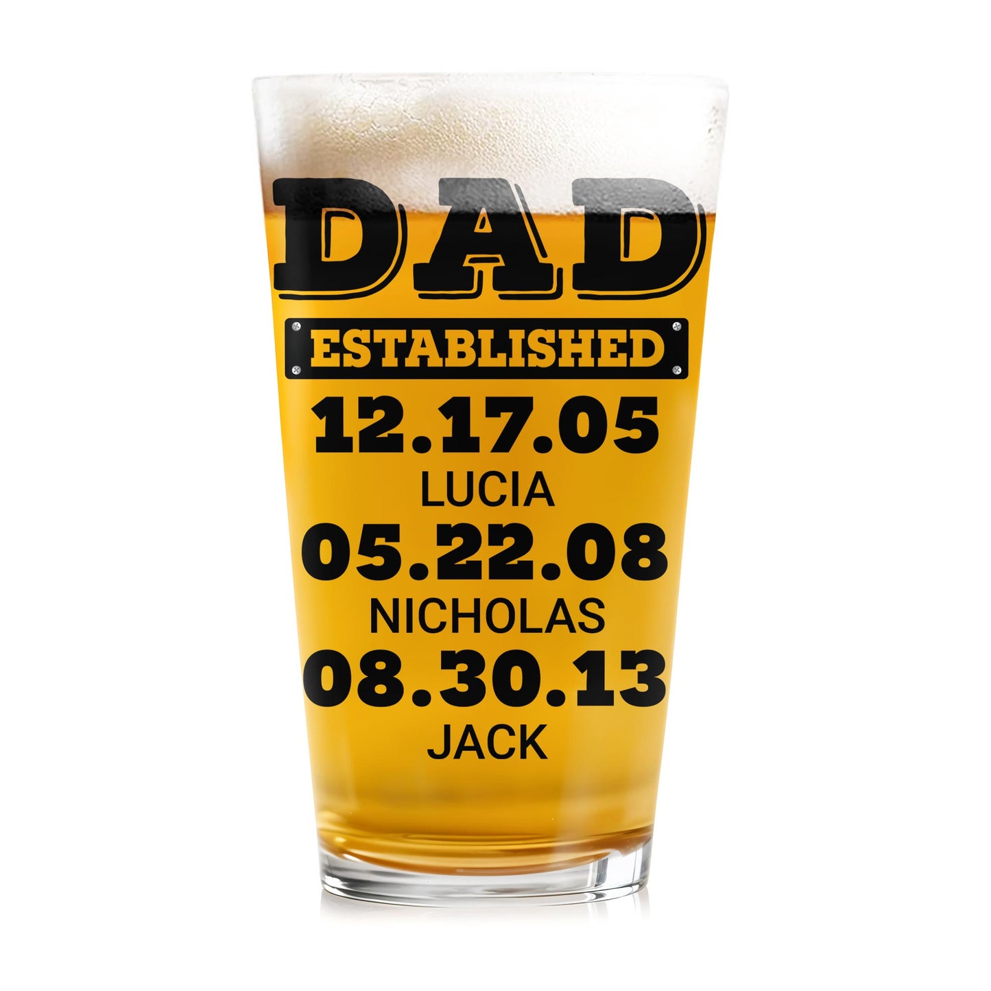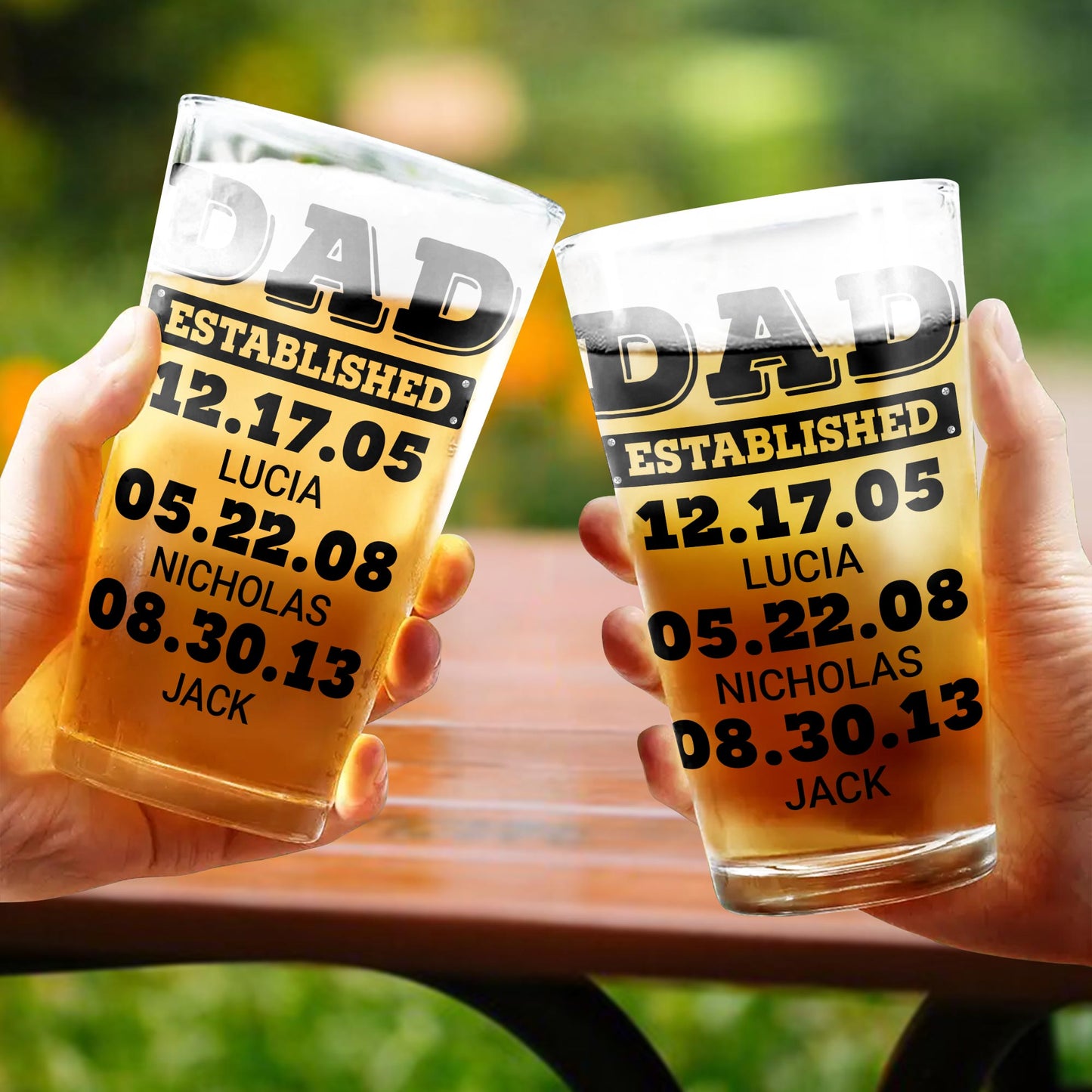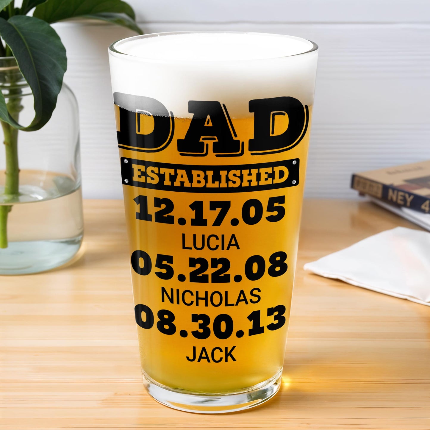 Dad Established Dates Personalized Custom Beer Glass, Gift For Dads