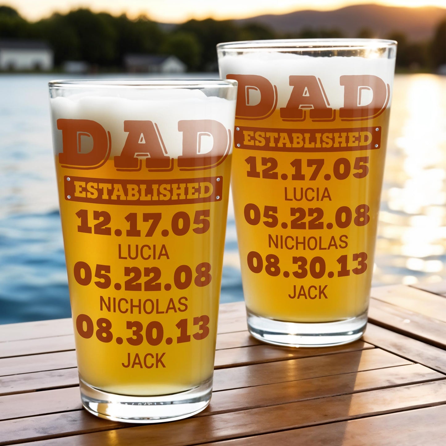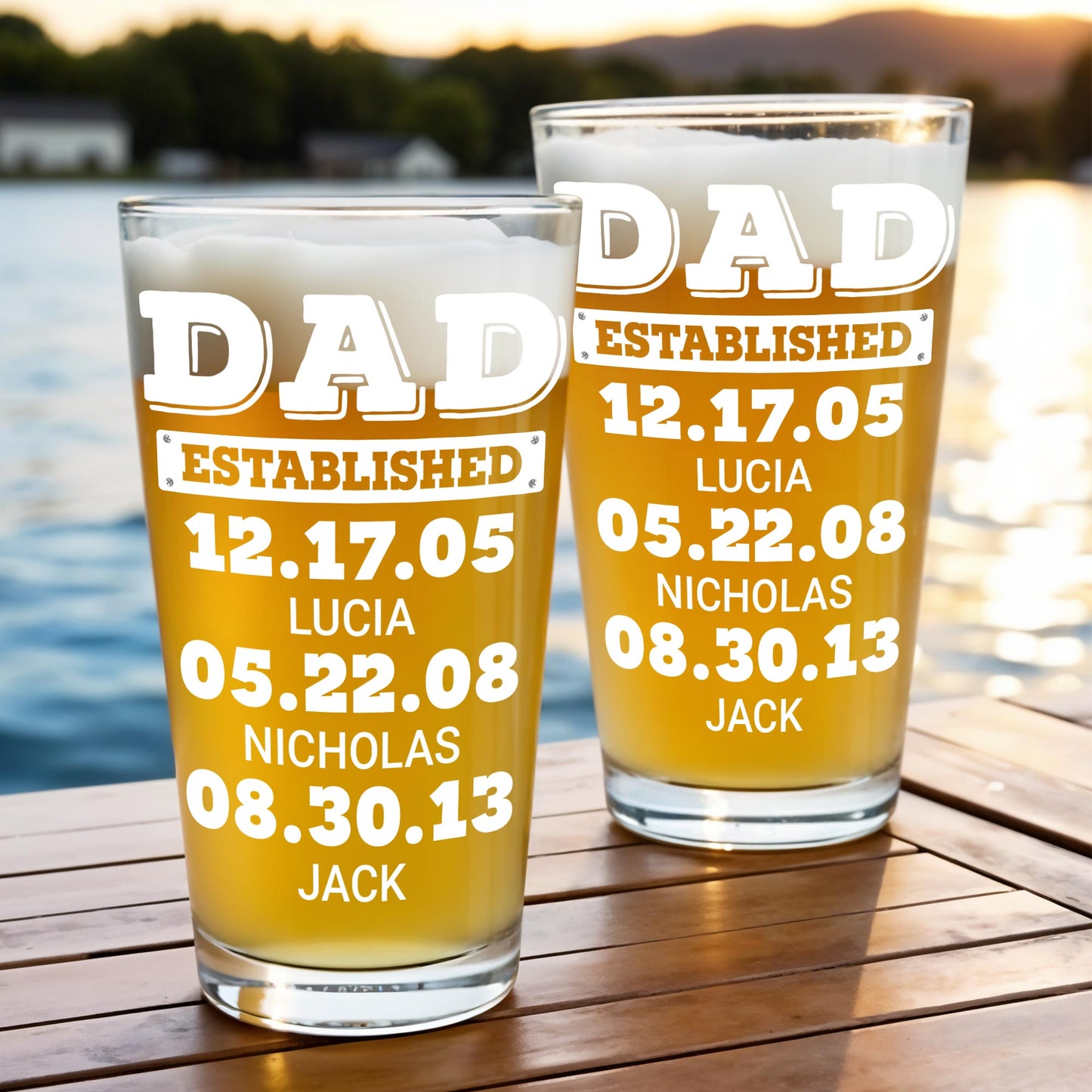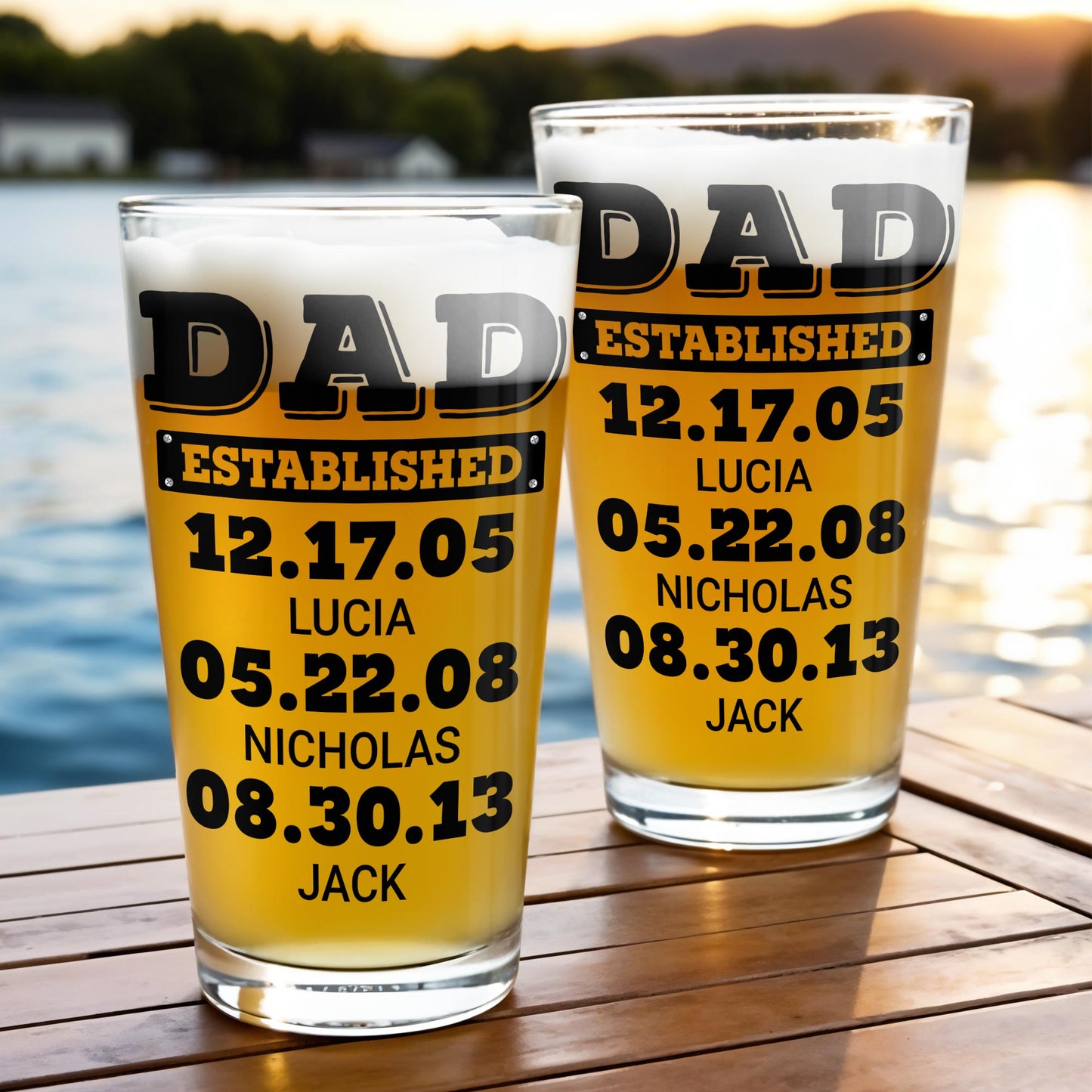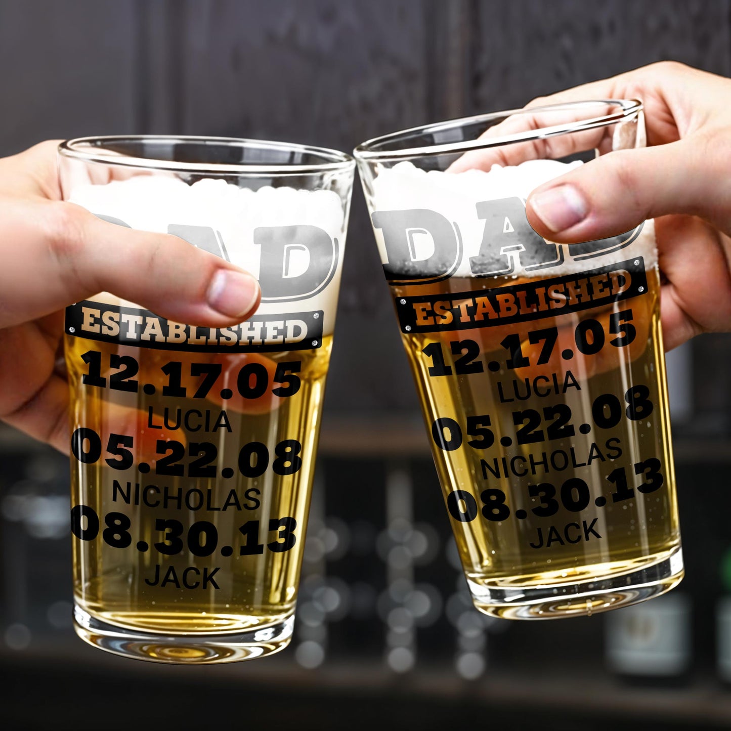 Dad Established Dates Personalized Custom Beer Glass, Gift For Dads