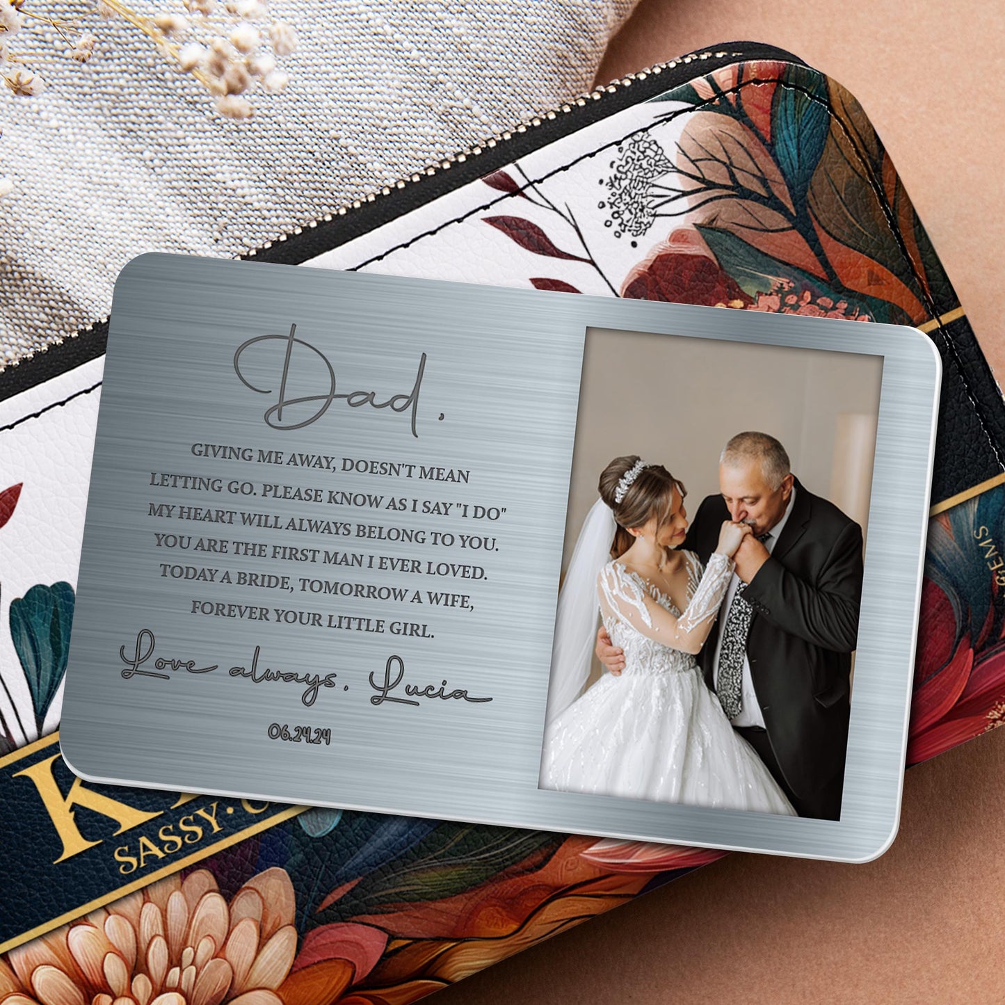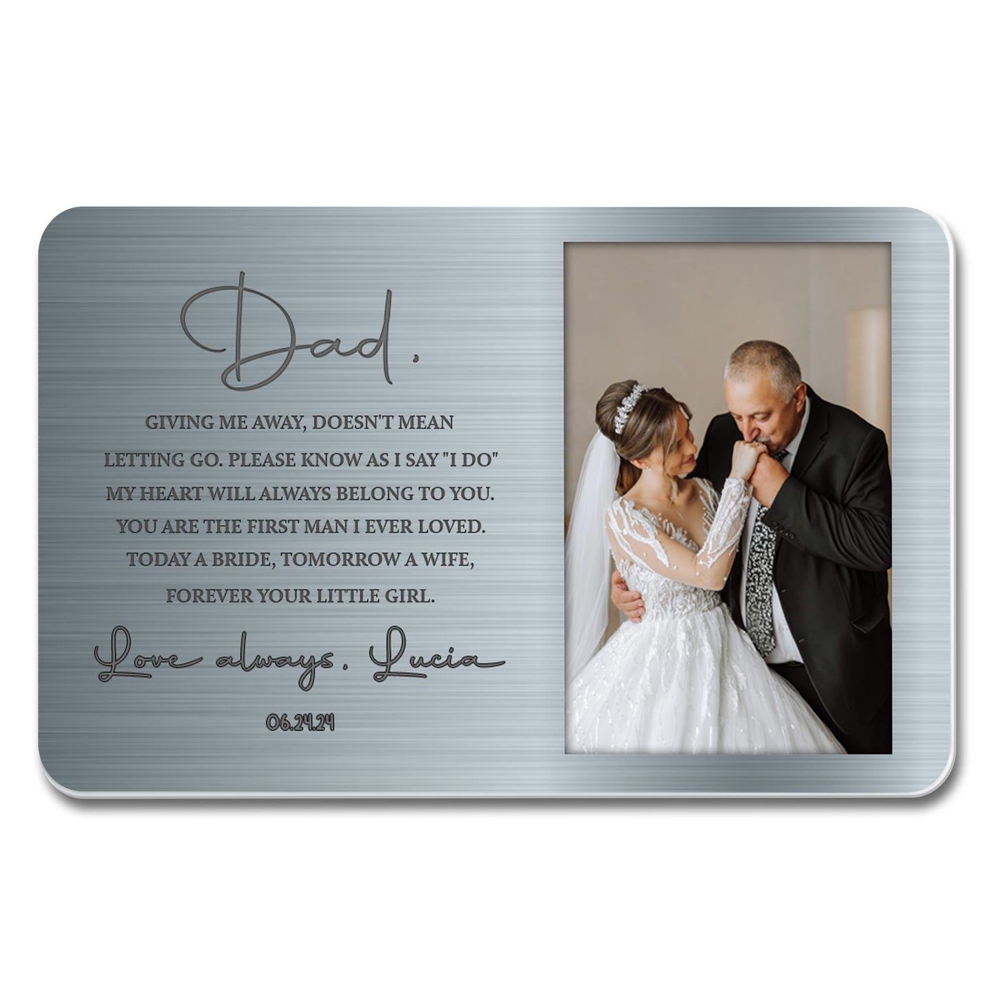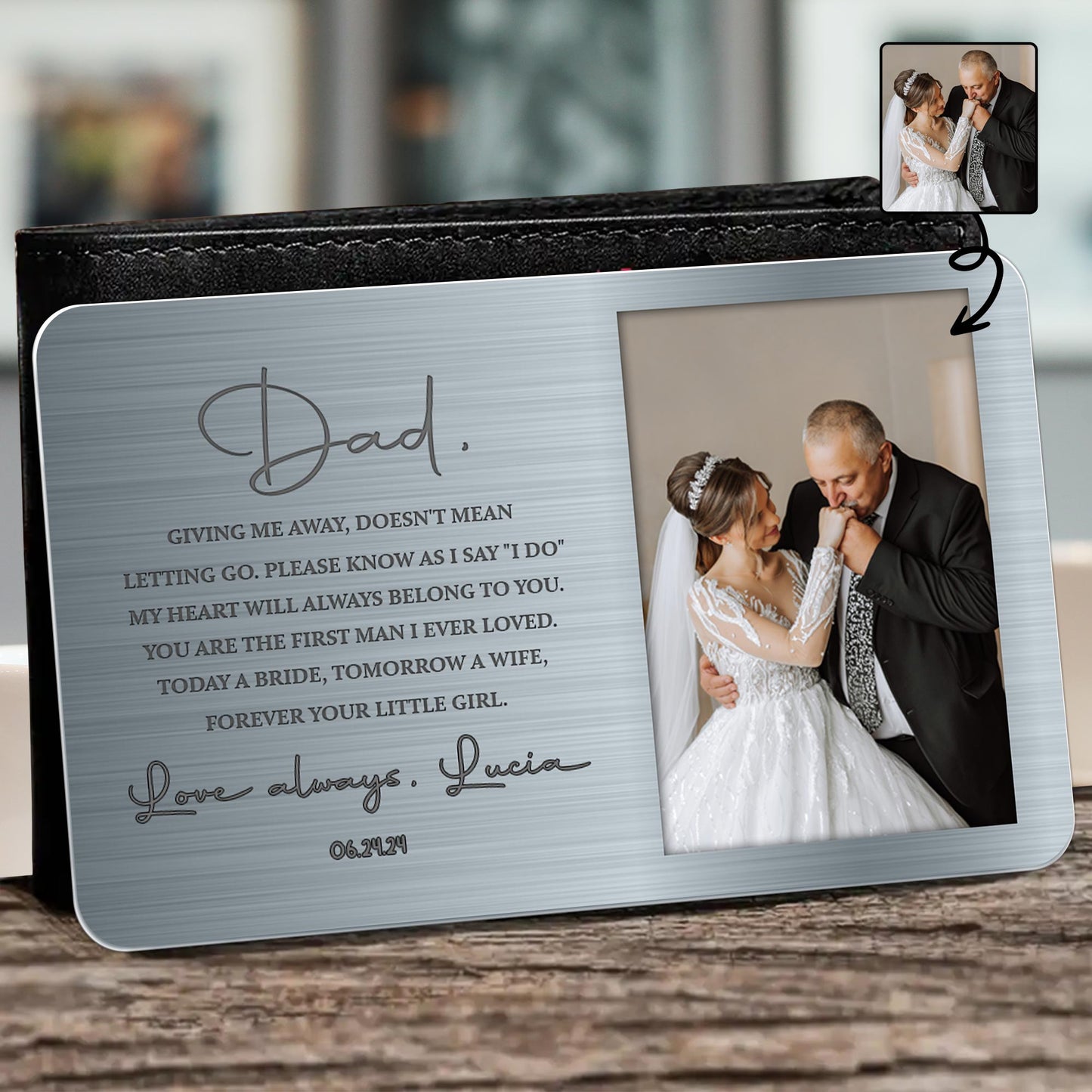 Dad, Giving Me Away, Doesn't Mean Letting Go, Personalized Aluminum Wallet Card, Wedding Day Gift for Daughters