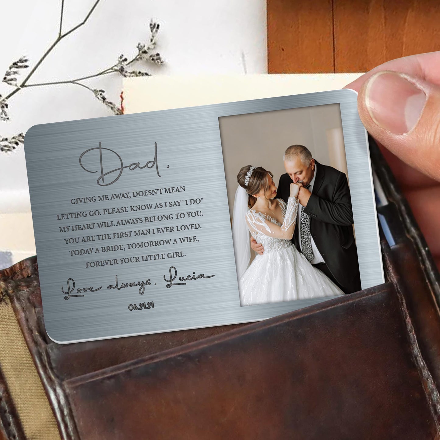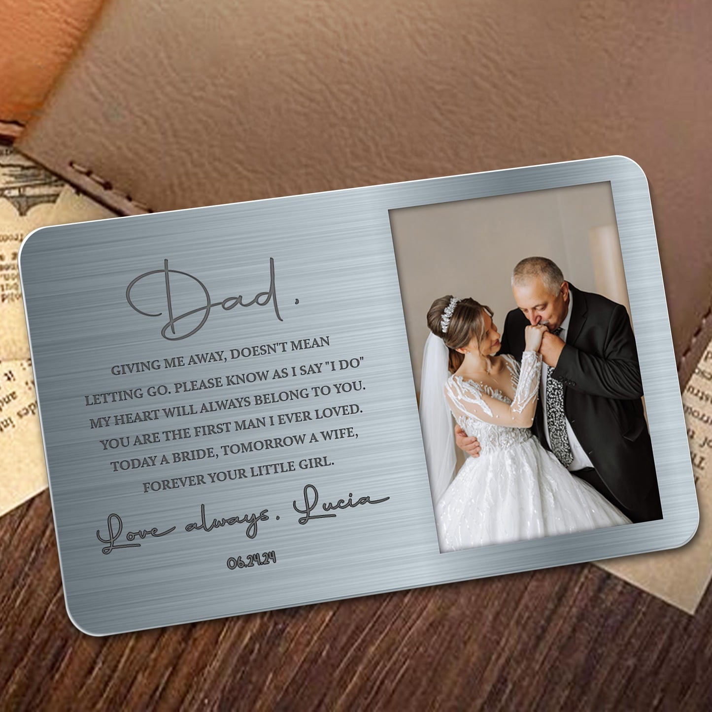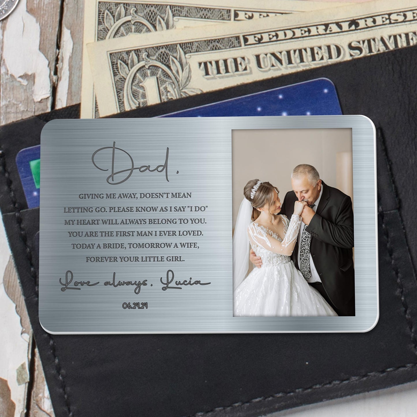 Dad, Giving Me Away, Doesn't Mean Letting Go, Personalized Aluminum Wallet Card, Wedding Day Gift for Daughters