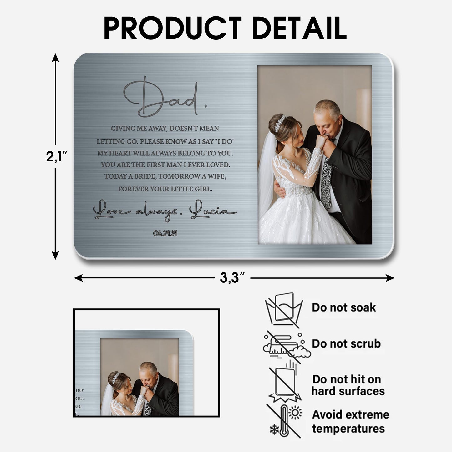 Dad, Giving Me Away, Doesn't Mean Letting Go, Wedding Photo - Personalized Aluminum Wallet Card - DAD019_ALCA