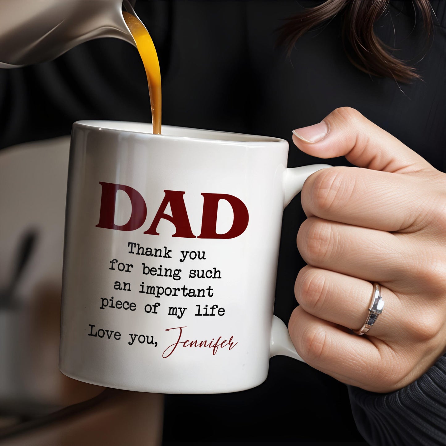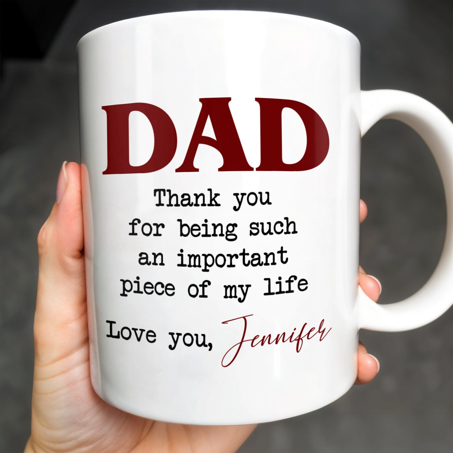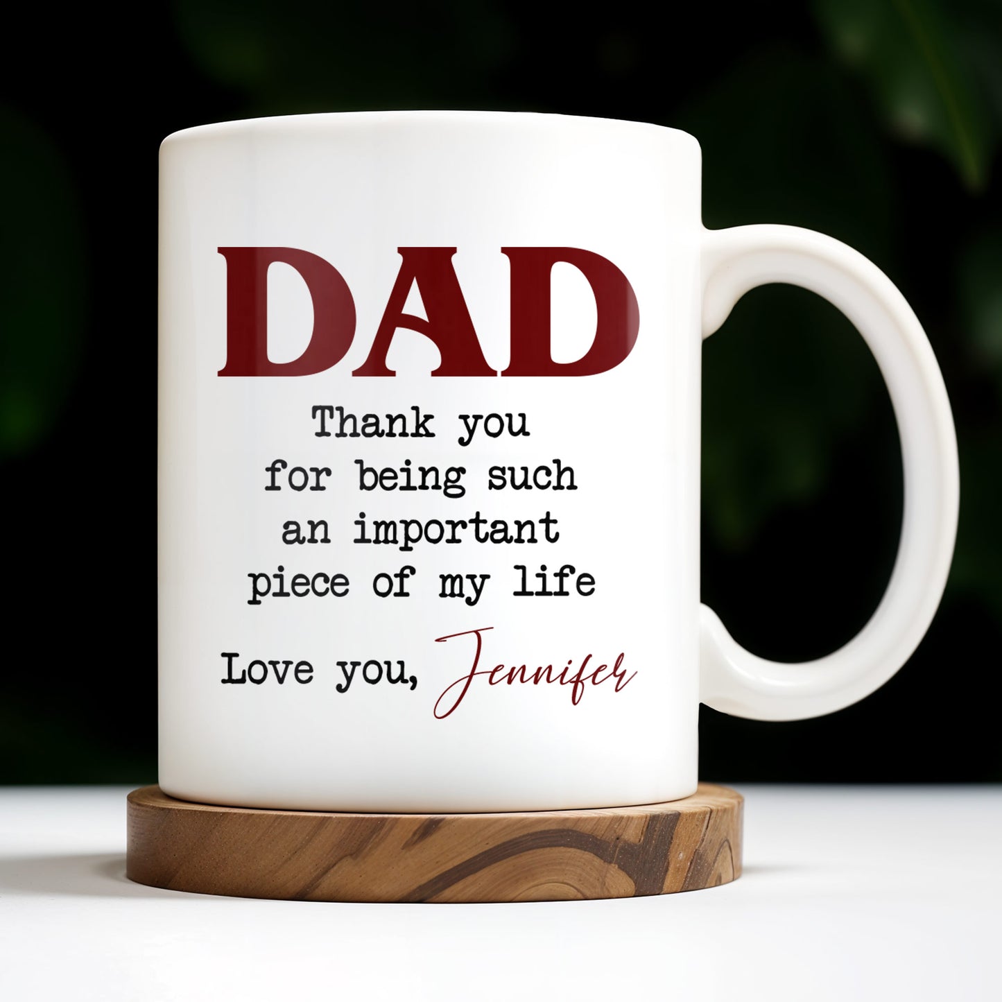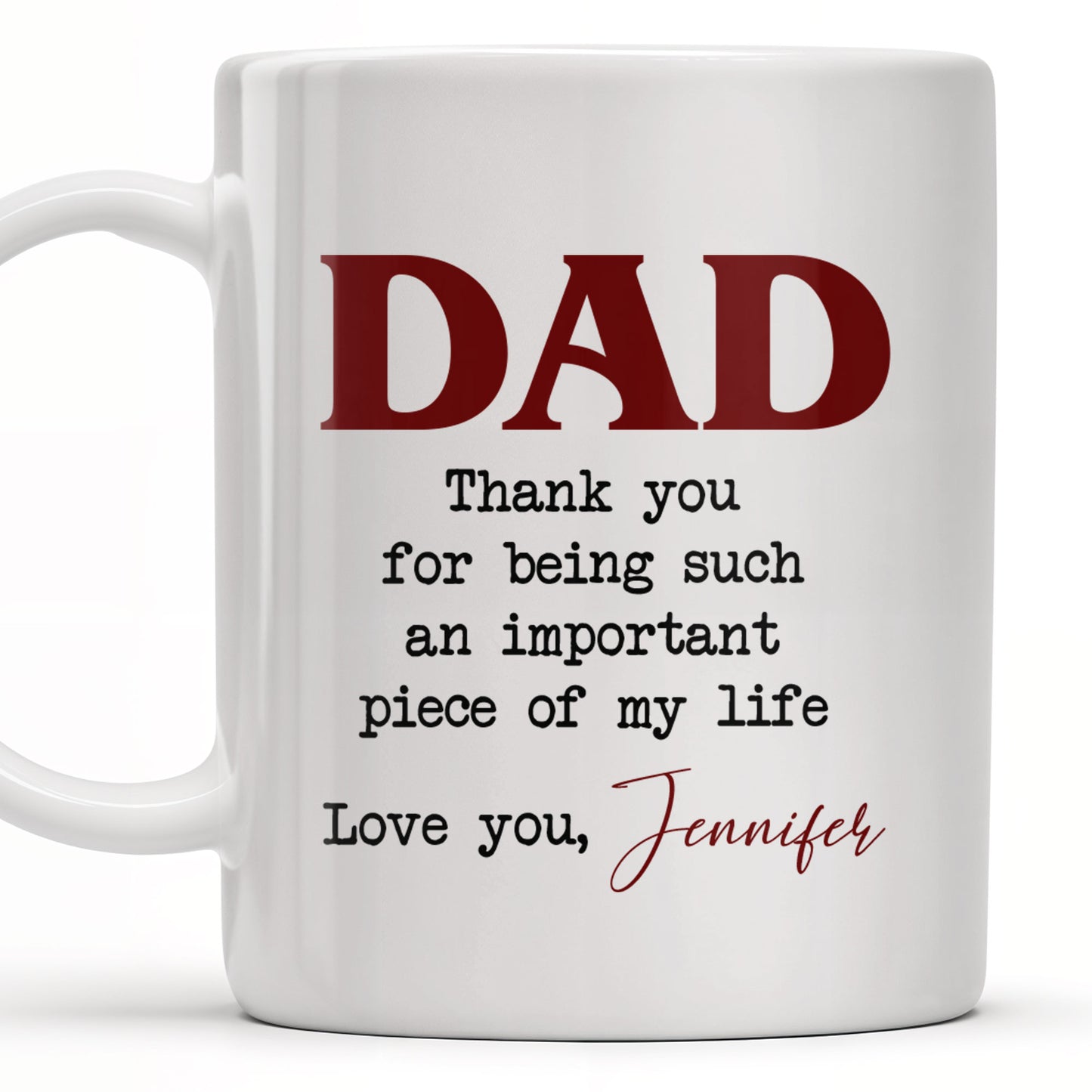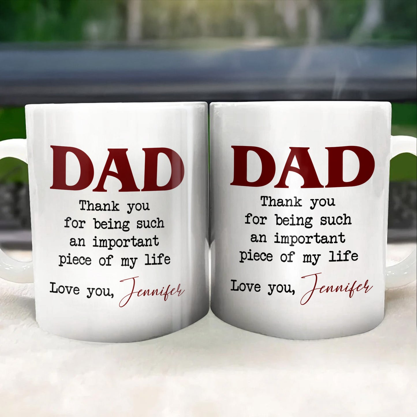 DAD Thank You For Being Such An Important Piece Of My Life, Personalized Custom Coffee Mug, Gift For Dads
