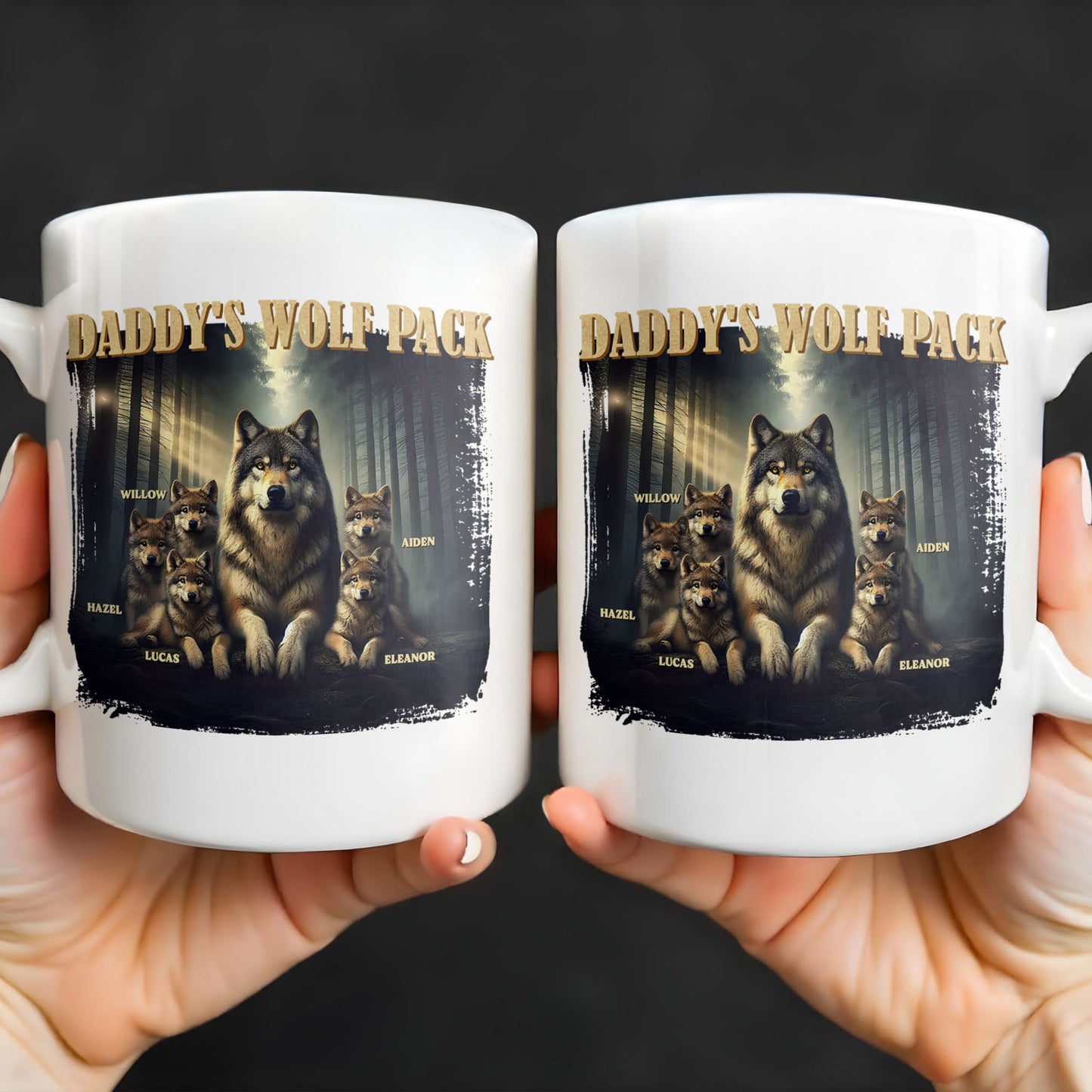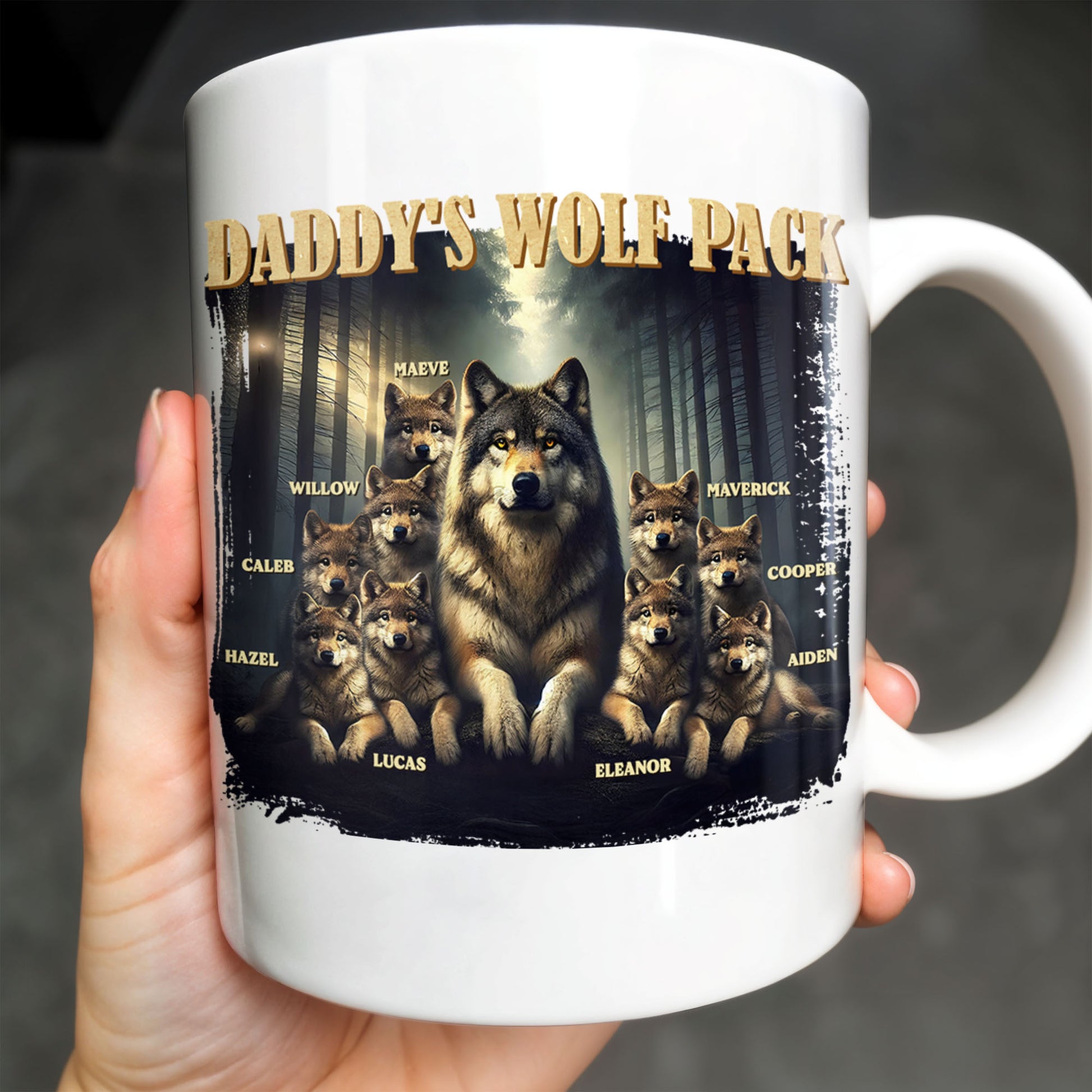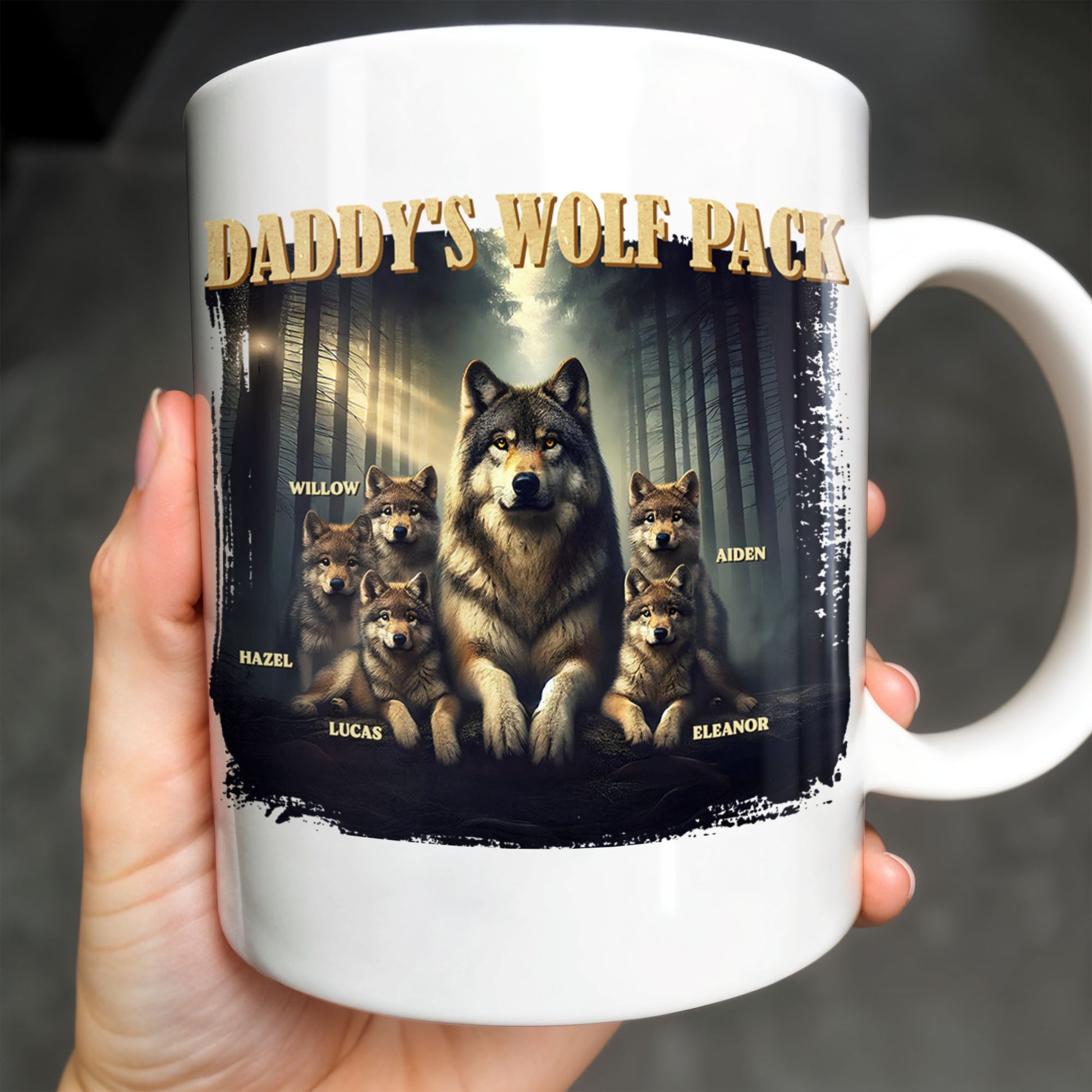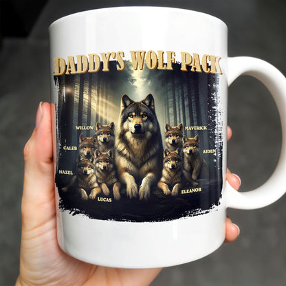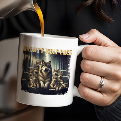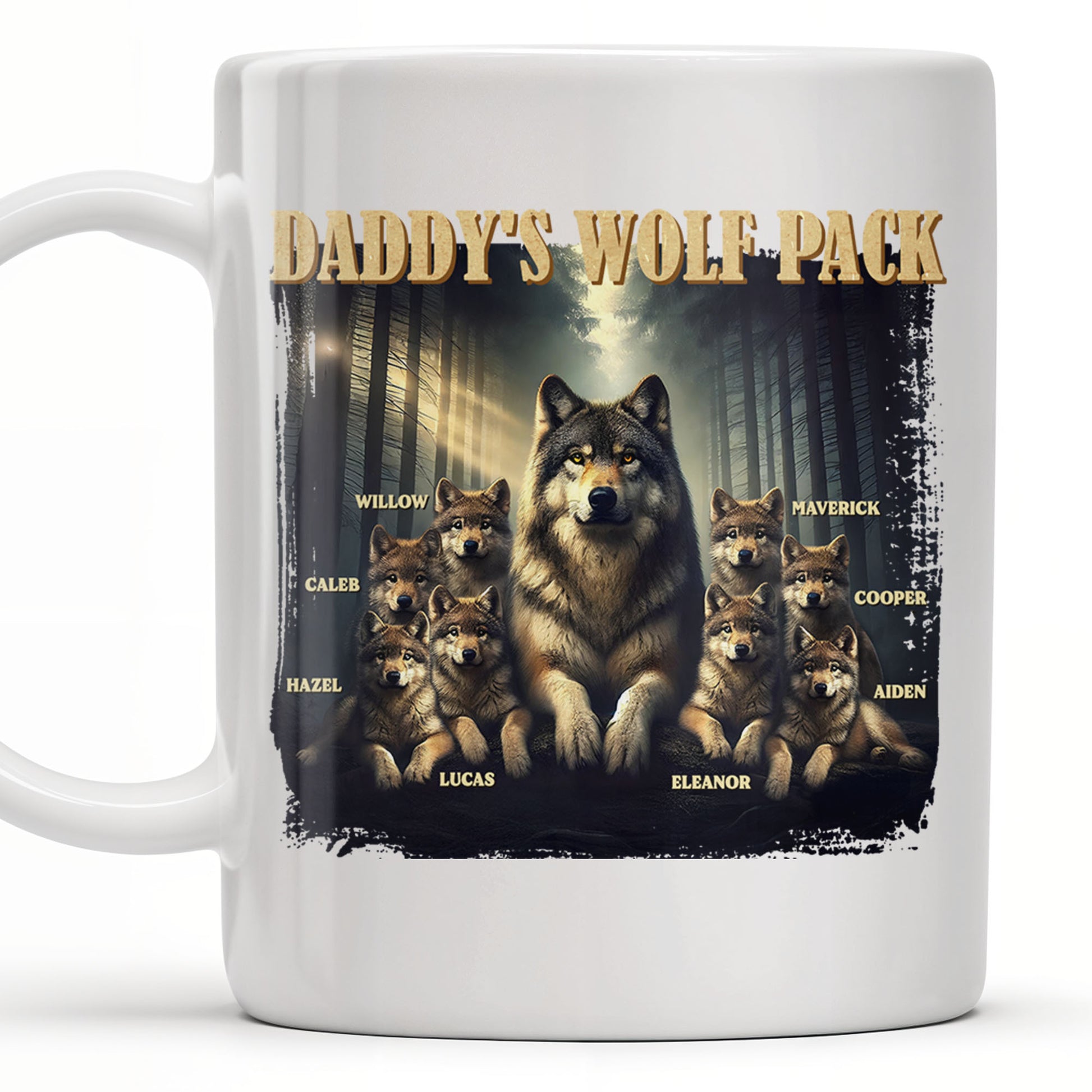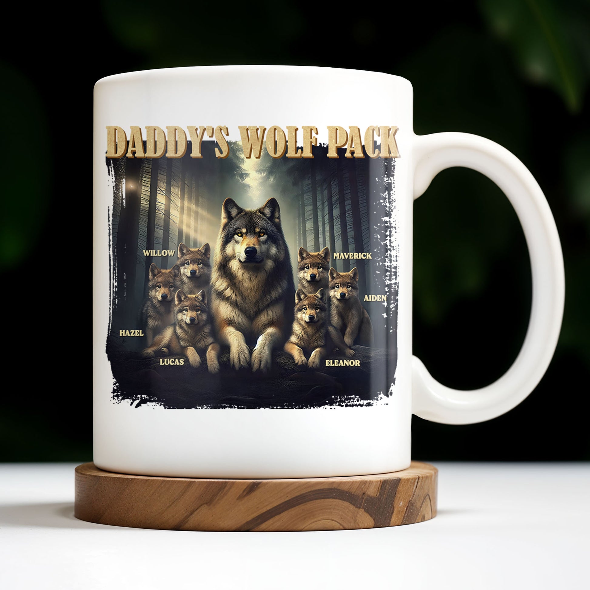 Daddy's Wolf Pack, Personalized Custom Coffee Mug, Gift For Dad and Wolf Lovers