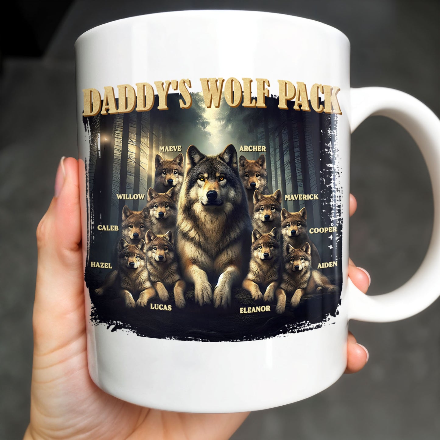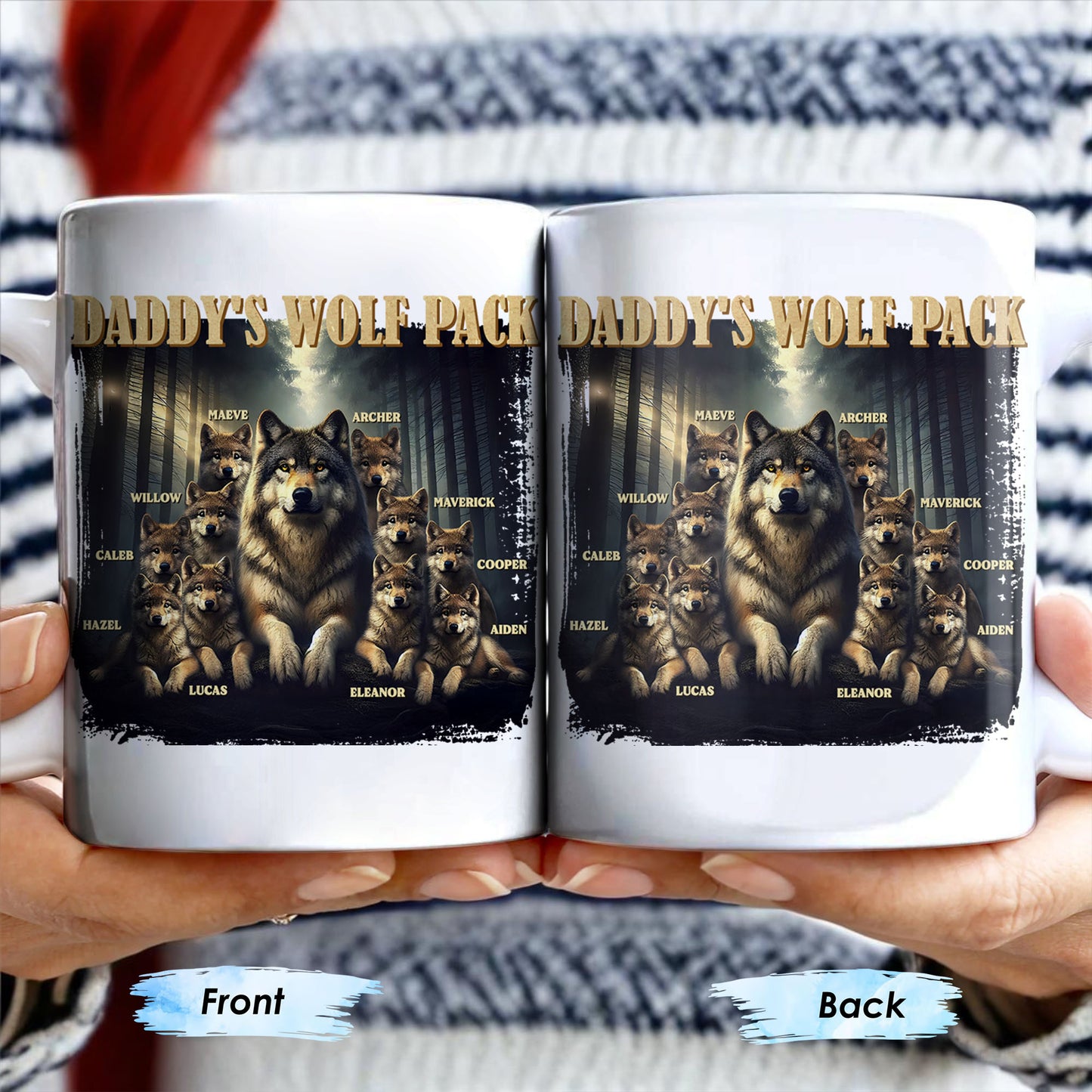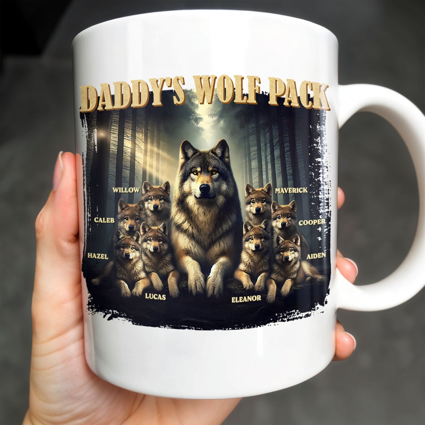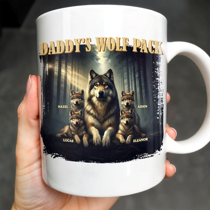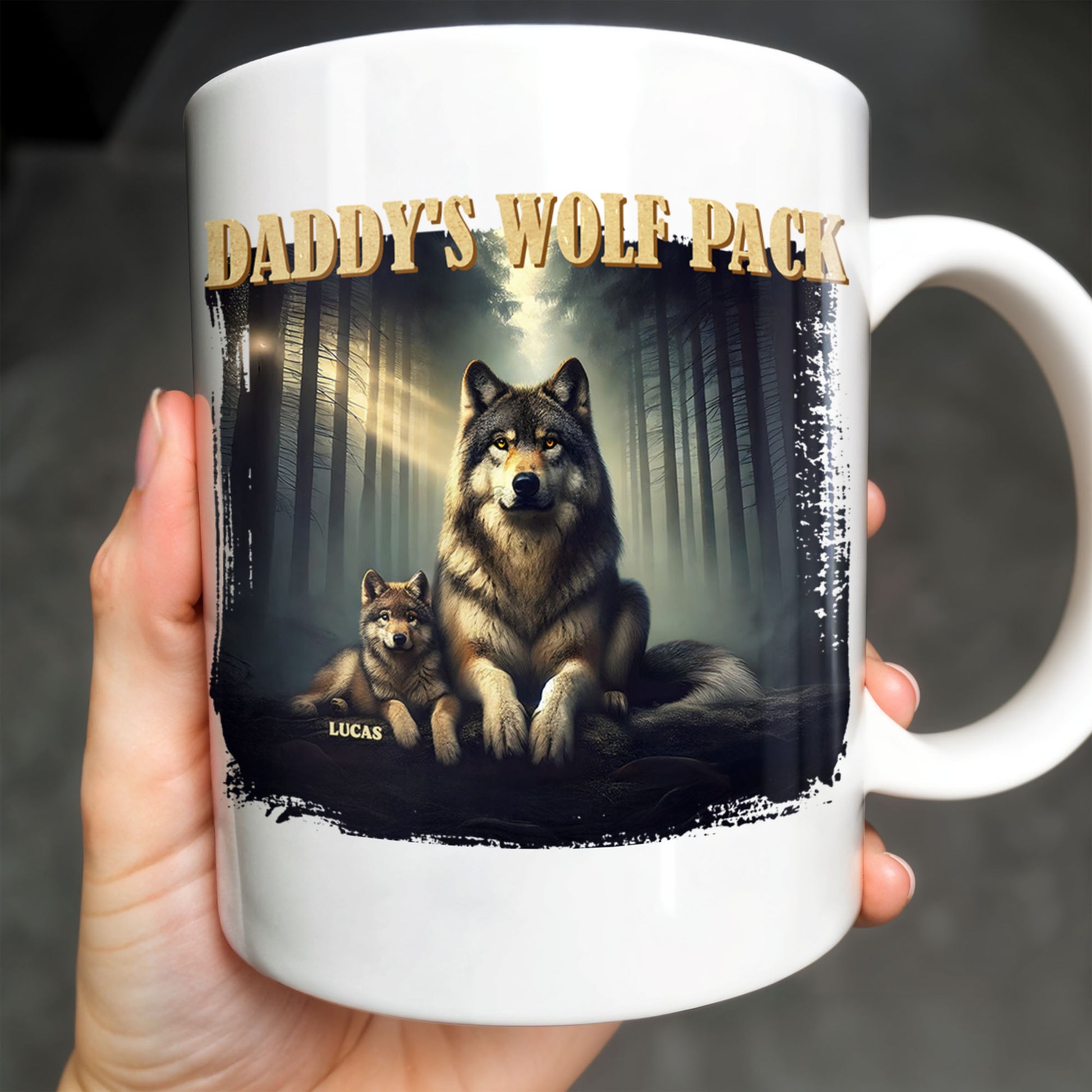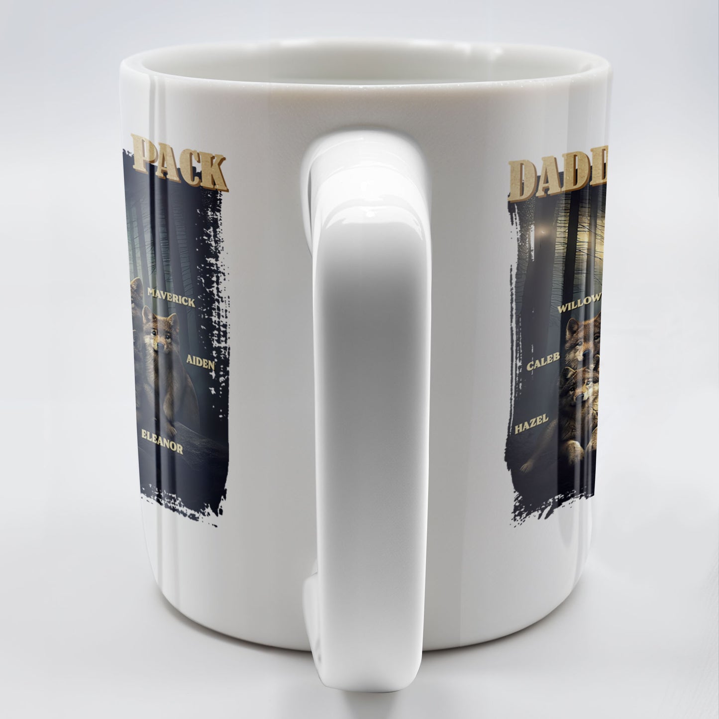 Daddy's Wolf Pack, Personalized Custom Coffee Mug, Gift For Dad and Wolf Lovers