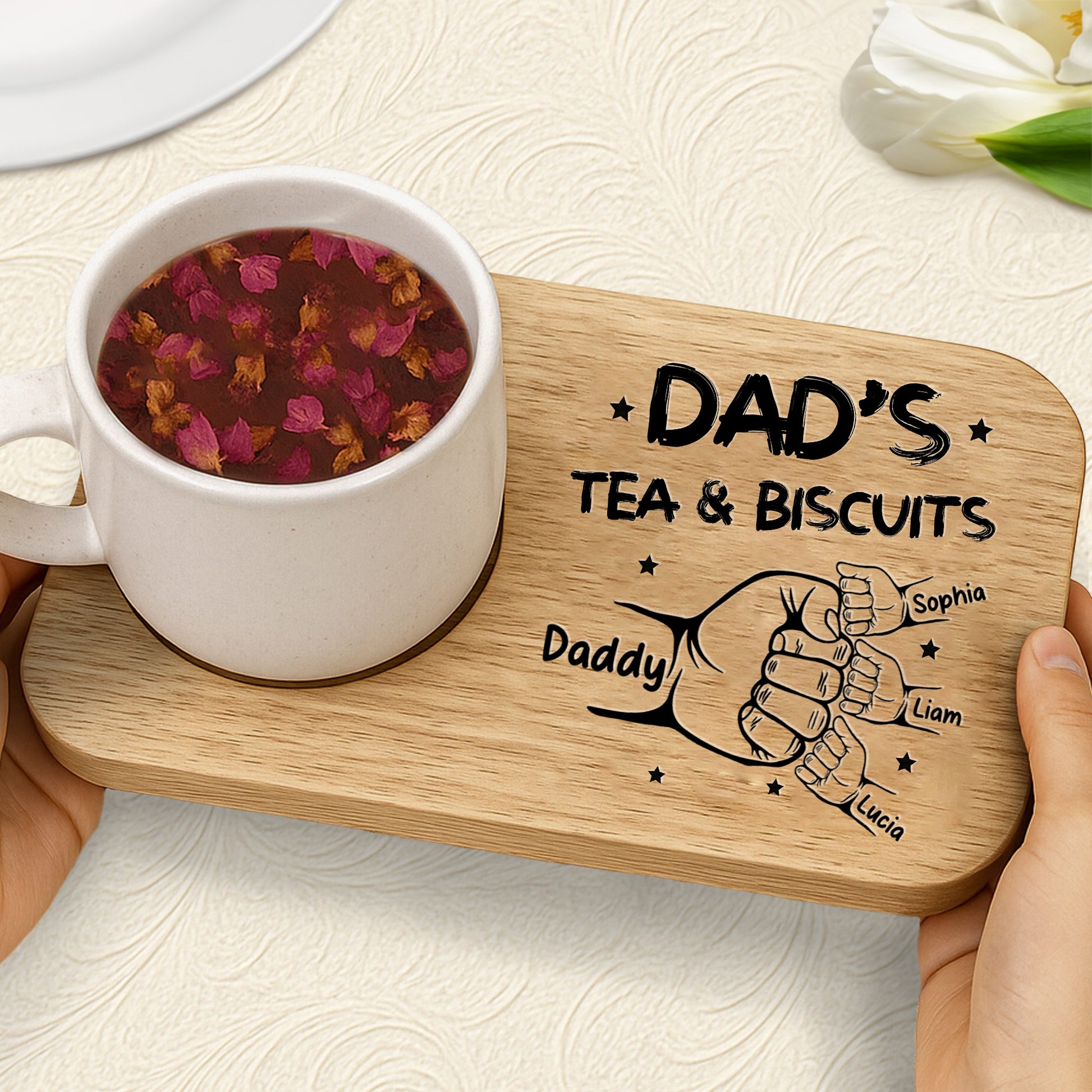 Dad's Tea & Biscuits, Cup Holder - Personalized Engraved Serving Board With Cup Holder - DAD012_WOBOE