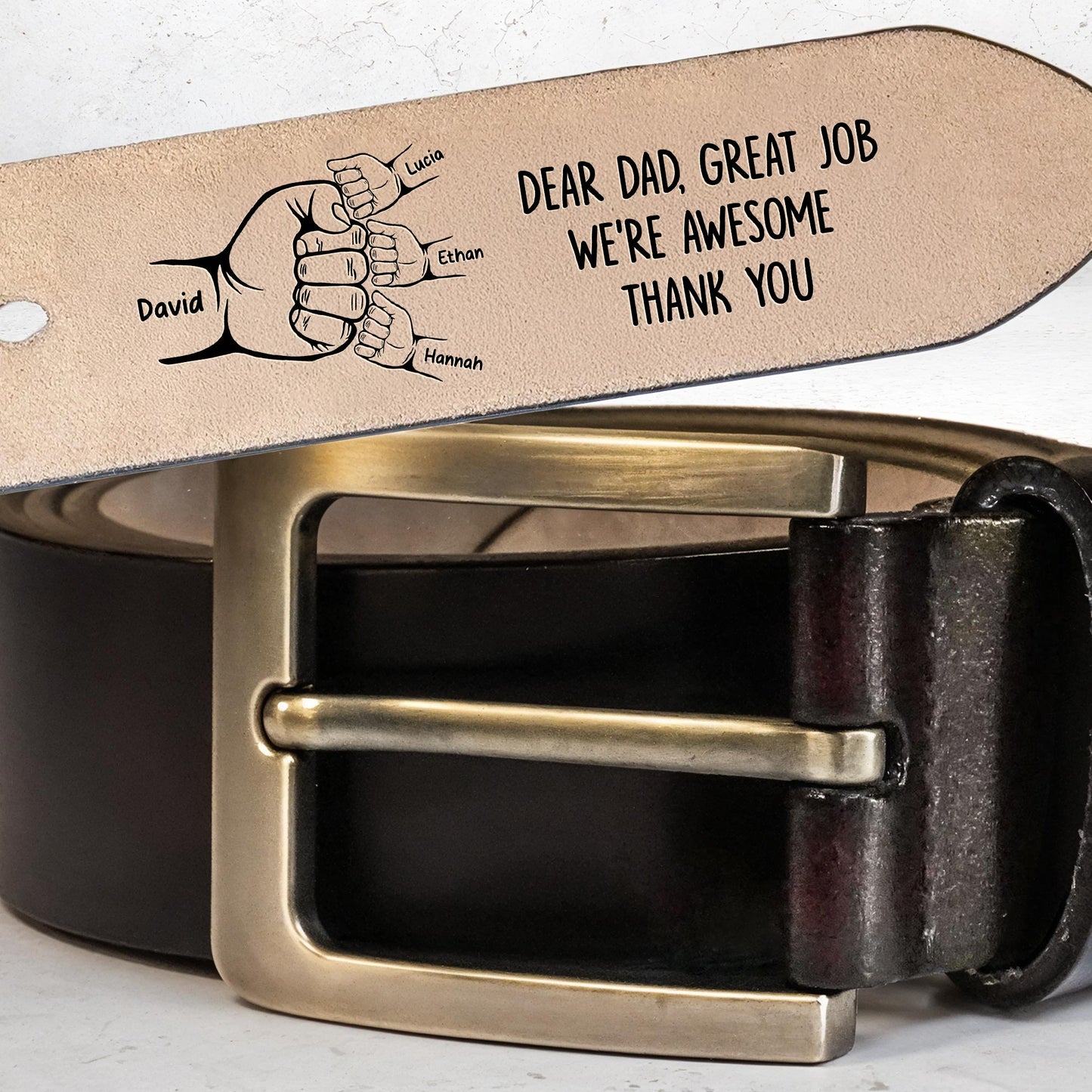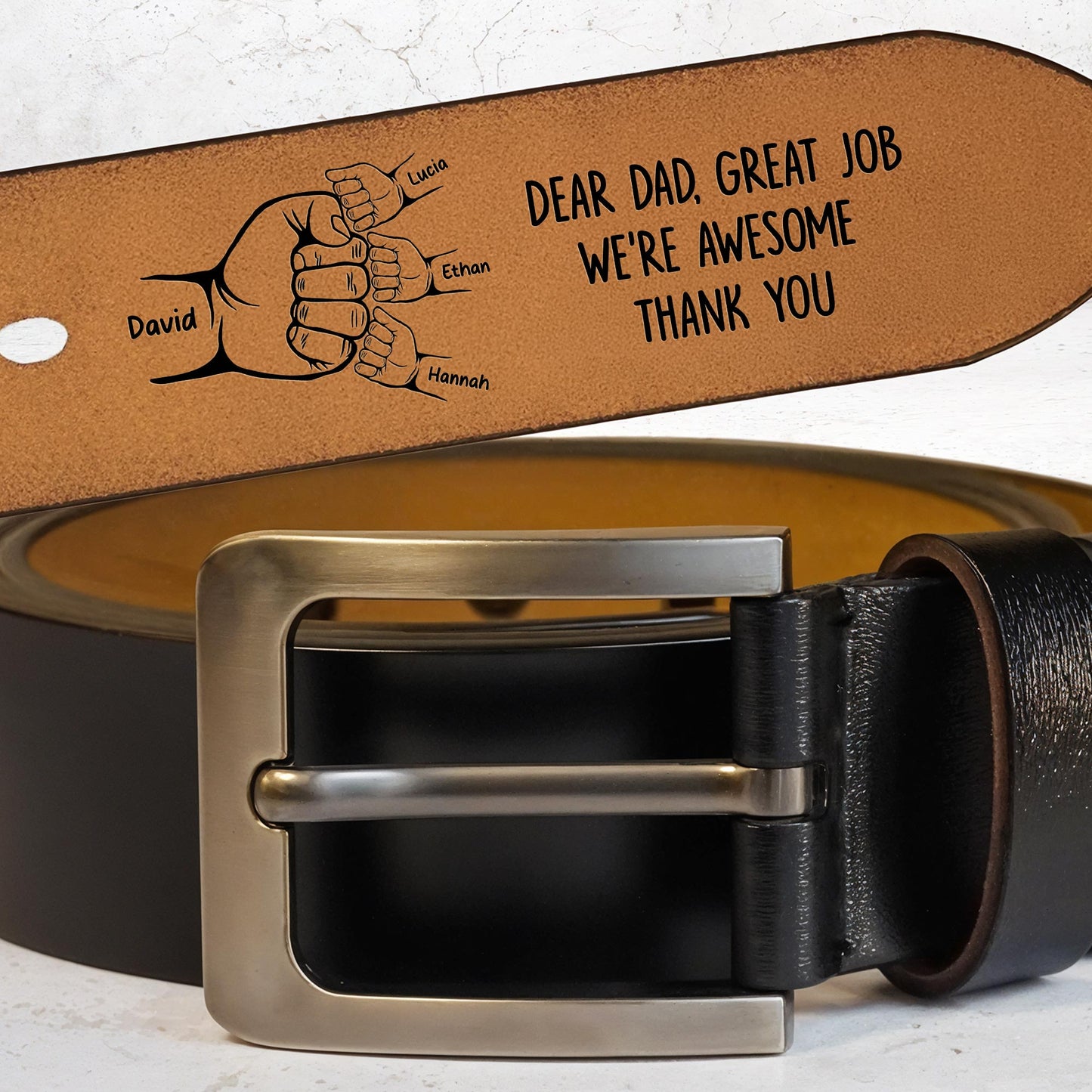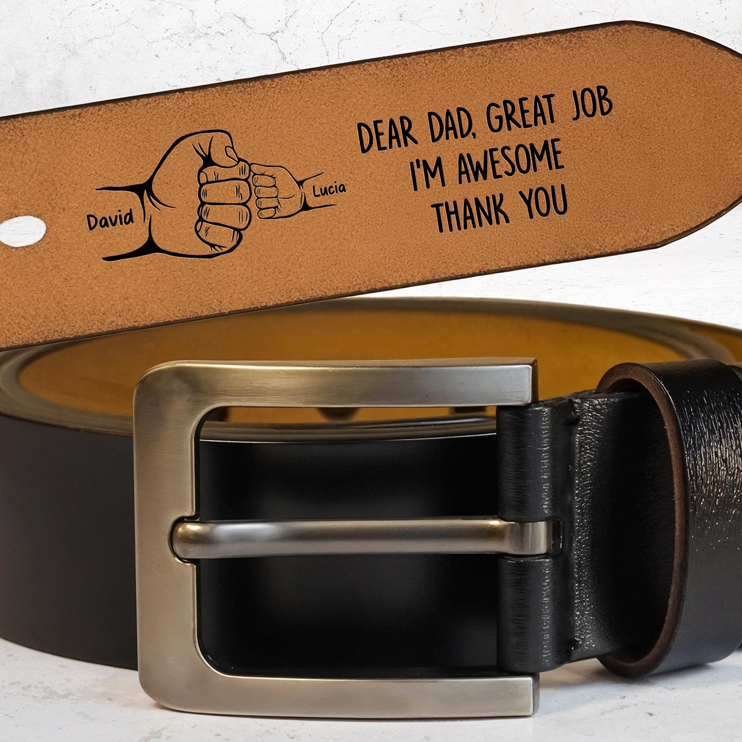 Dear Dad, Great Job We're Awesome Thank You, Handshakes, Personalized Engraved Leather Belt, Gift For Dads