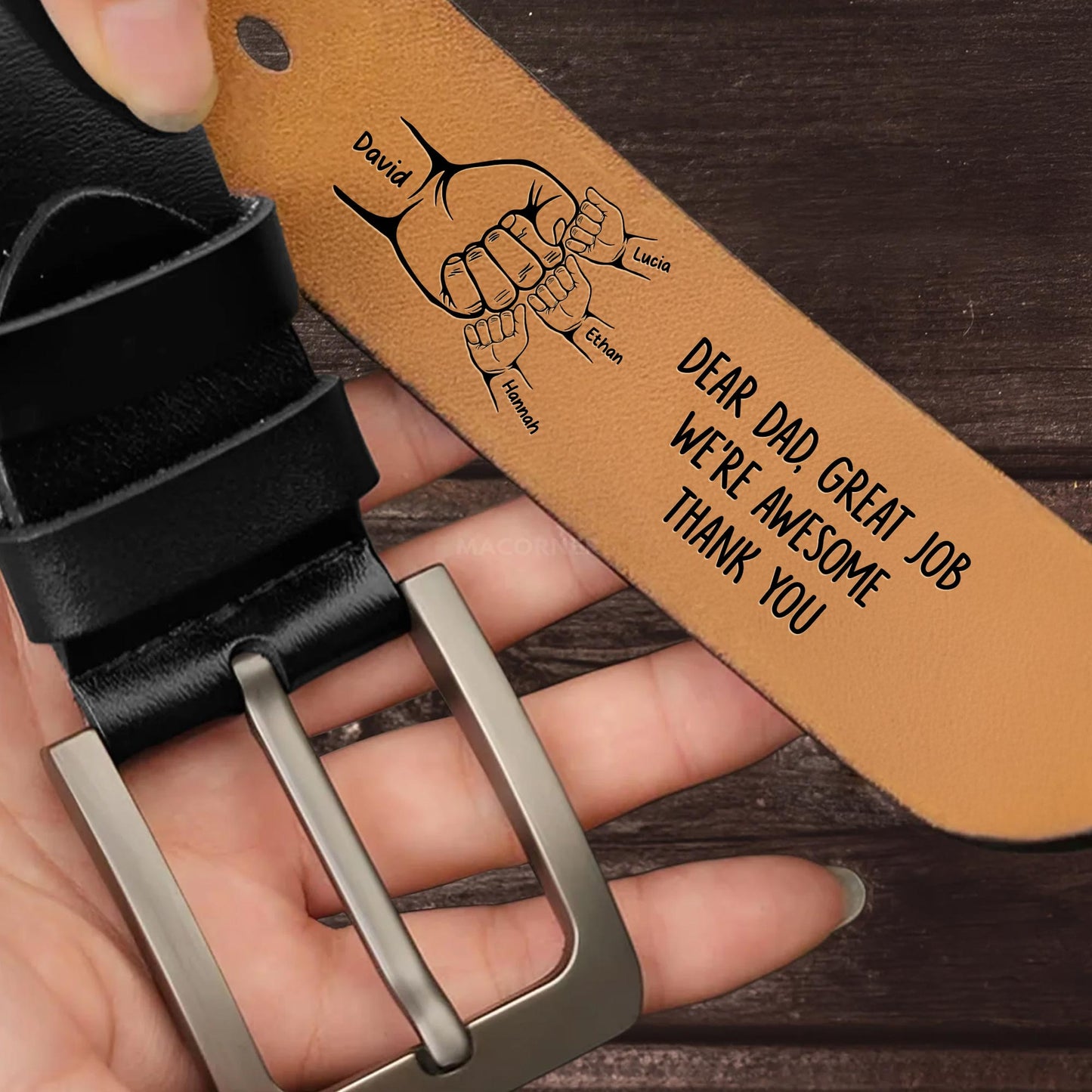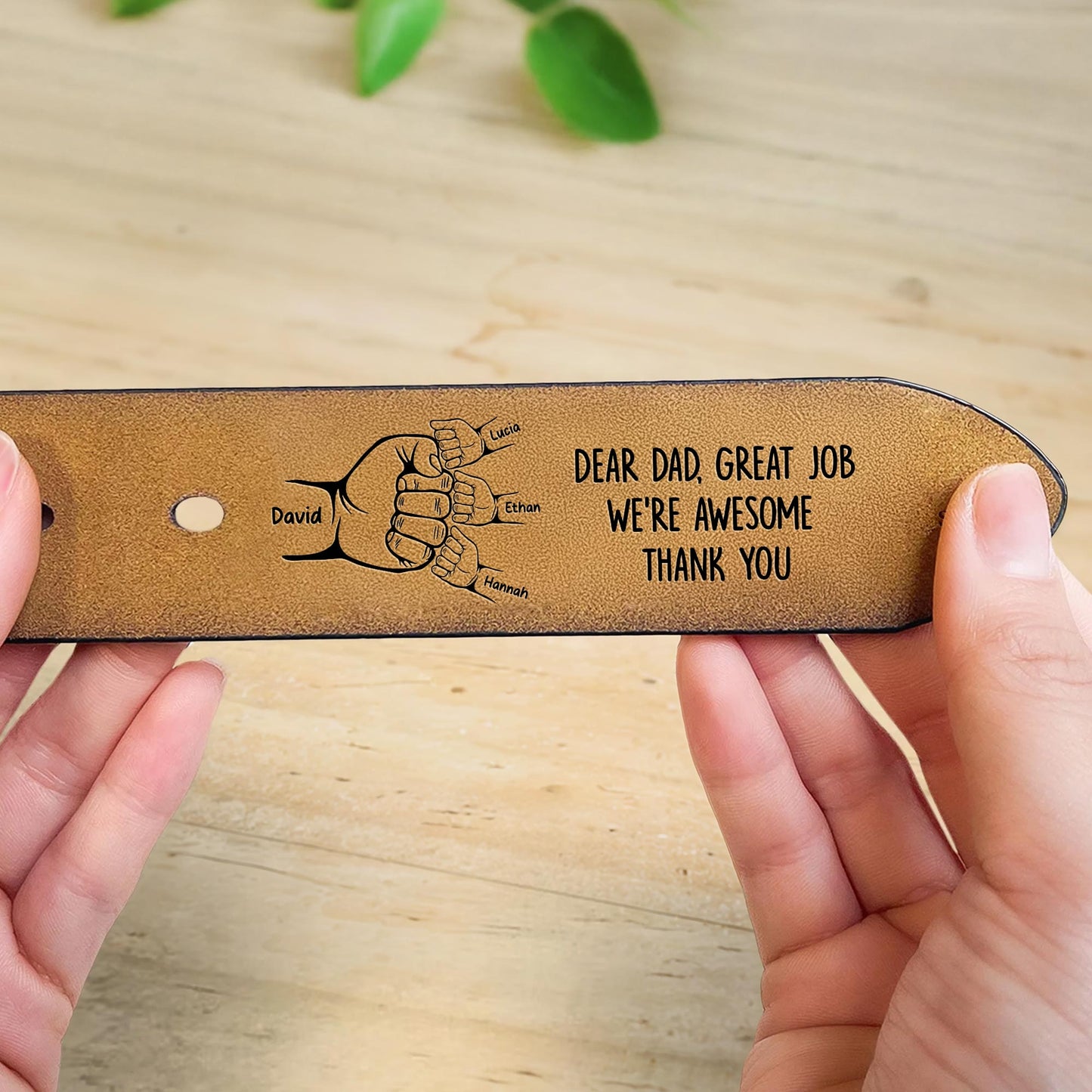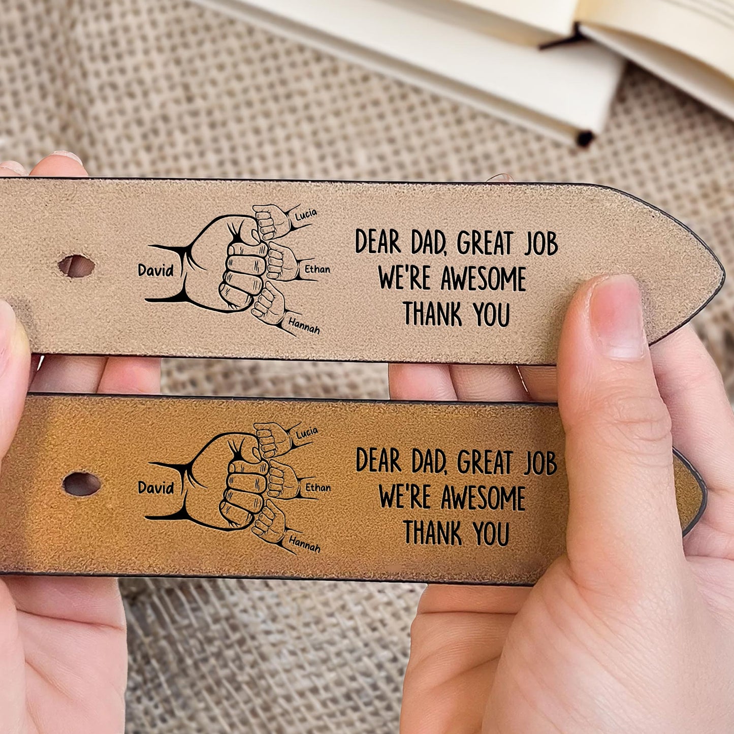 Dear Dad, Great Job We're Awesome Thank You, Handshakes, Personalized Engraved Leather Belt, Gift For Dads