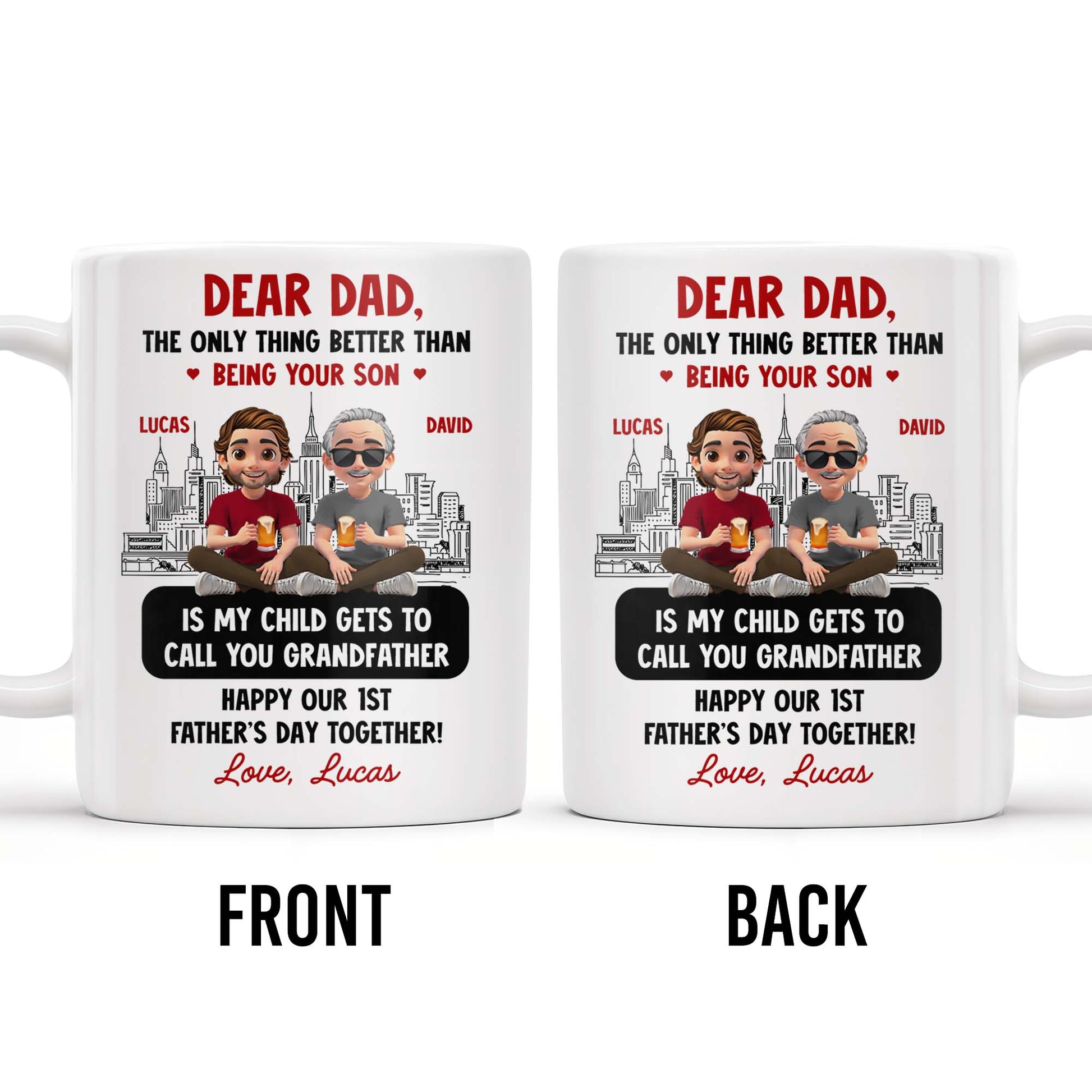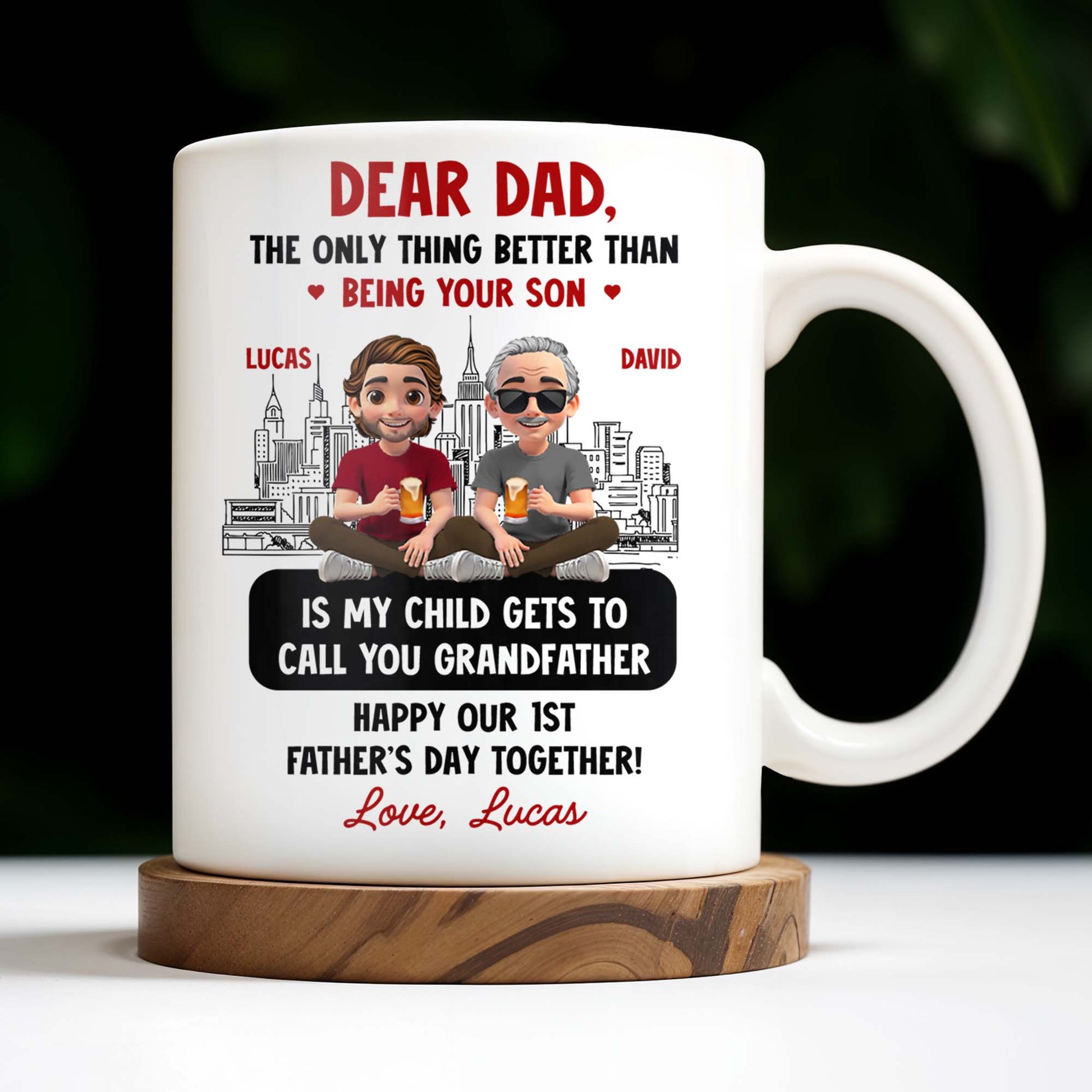 Dear Dad, The Only Thing Better Than Being Your Son, Cartoon Characters and City Skyline - Personalized Custom Coffee Mug - DAD106_MG