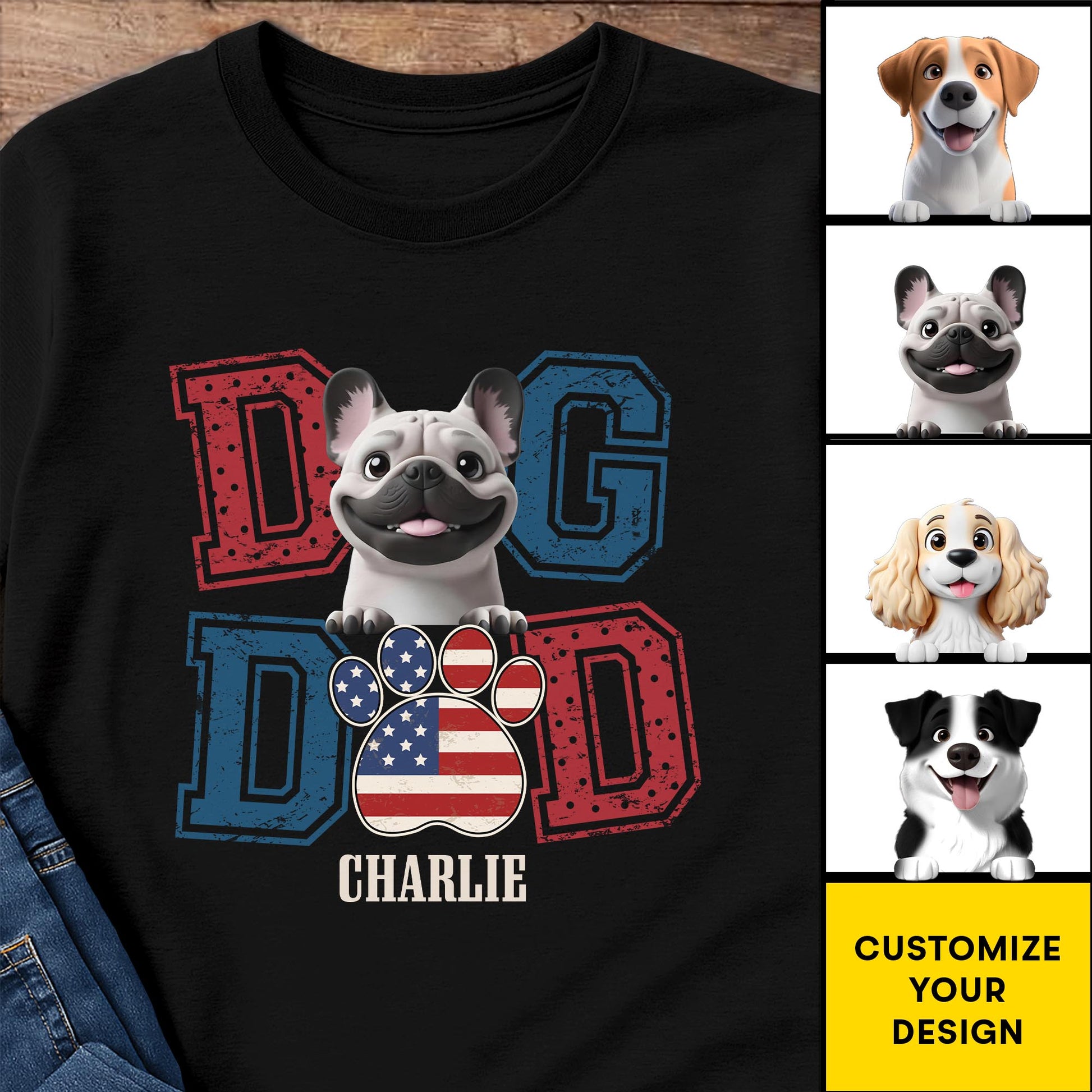 Dog Dad With American Flag Colors And Cute Dog, Personalized Custom Unisex T-shirt, Gift For Pet Lovers
