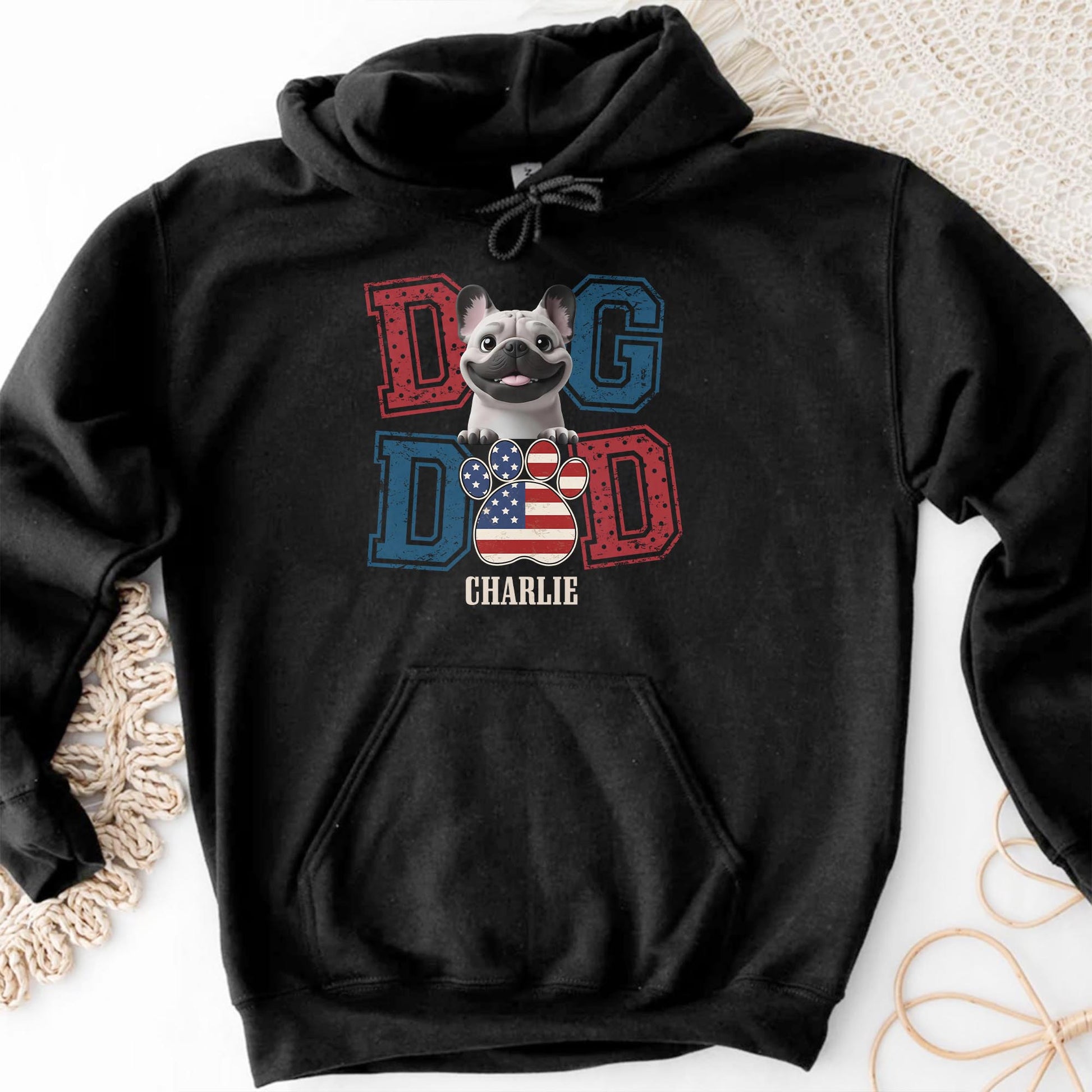 Dog Dad With American Flag Colors And Cute Dog - Personalized Custom Unisex T-shirt, Hoodie - DAD197_BBAS