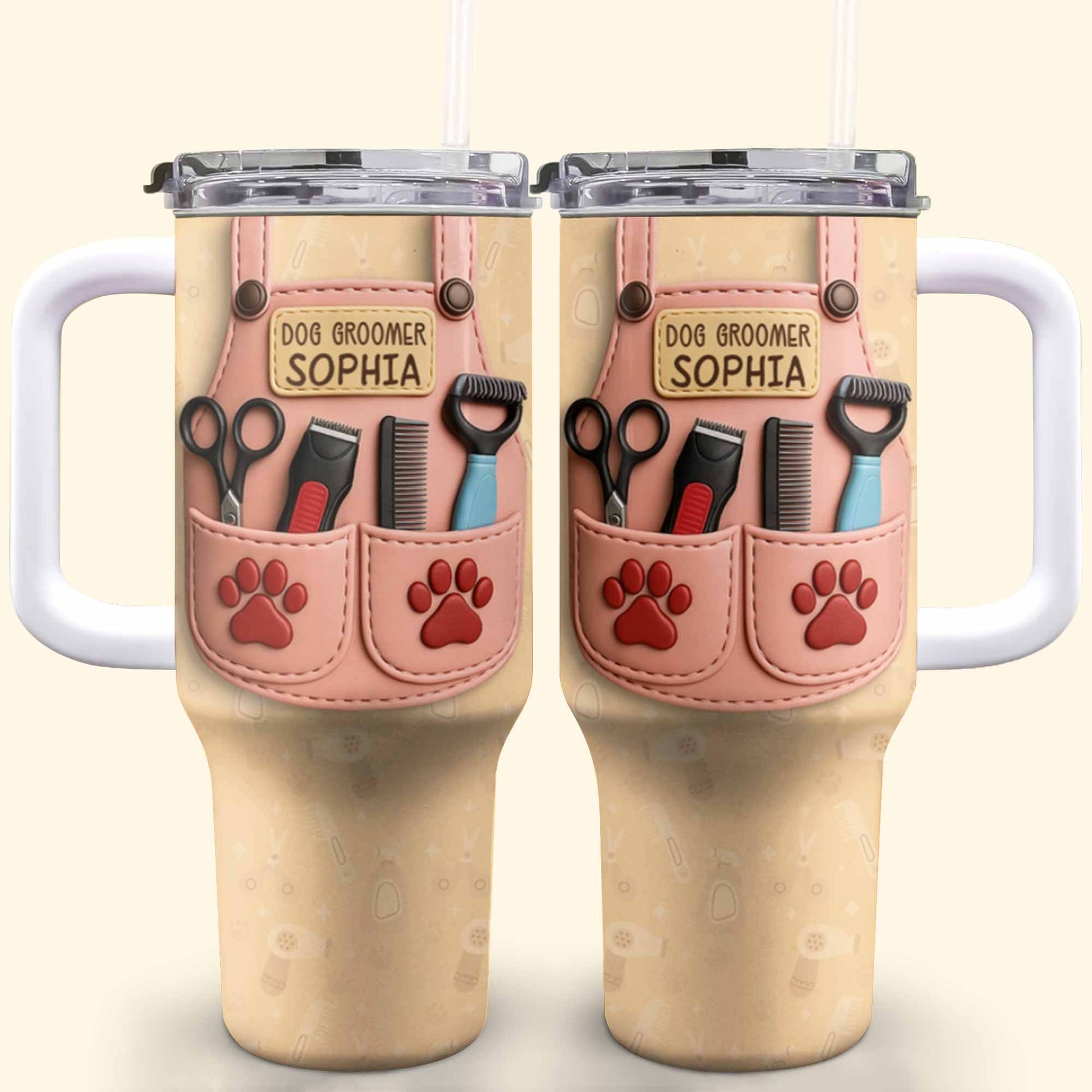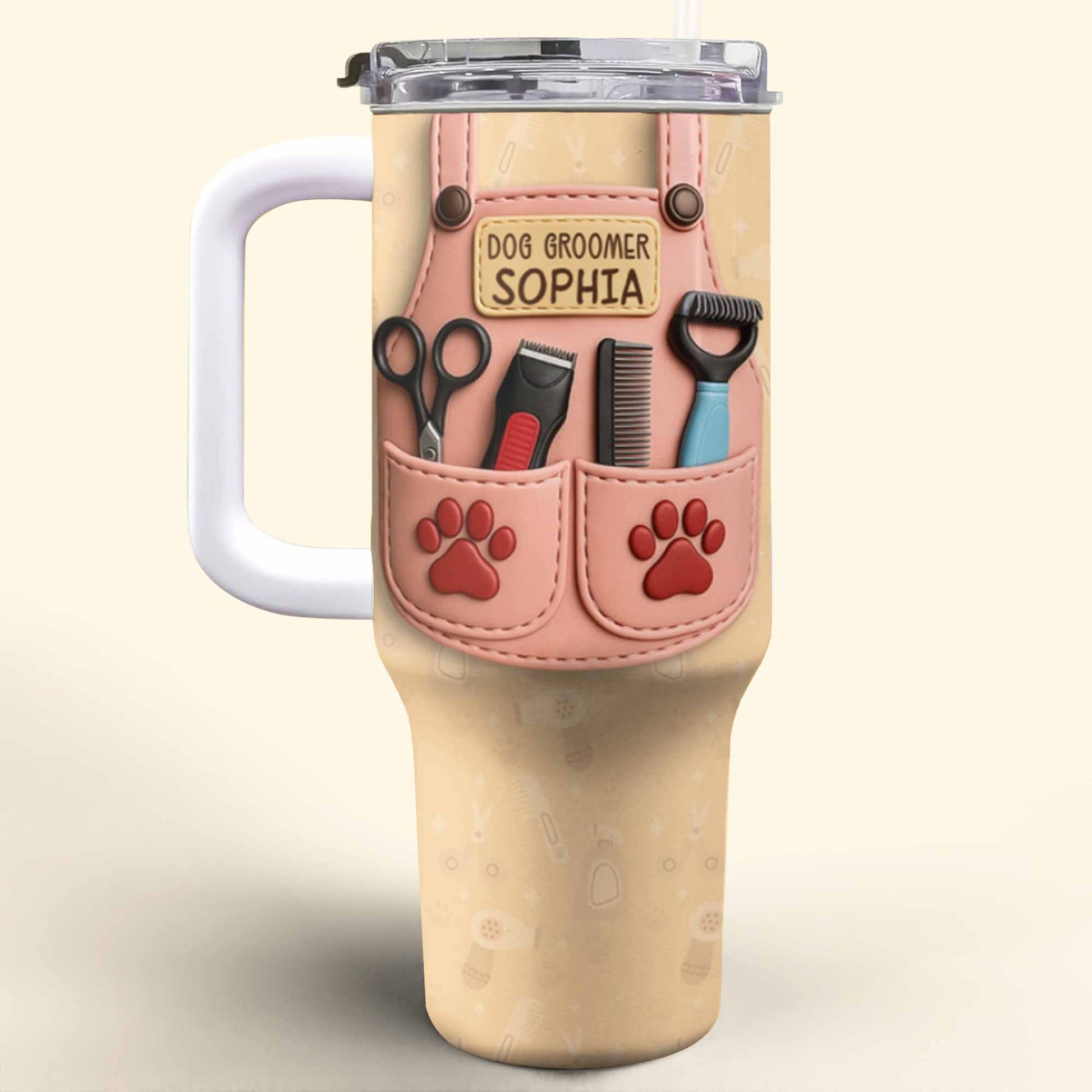 Dog Groomer Gift With Grooming Tools And Paw Prints, Personalized 40oz Tumbler With Straw, Gift For Pet Owners