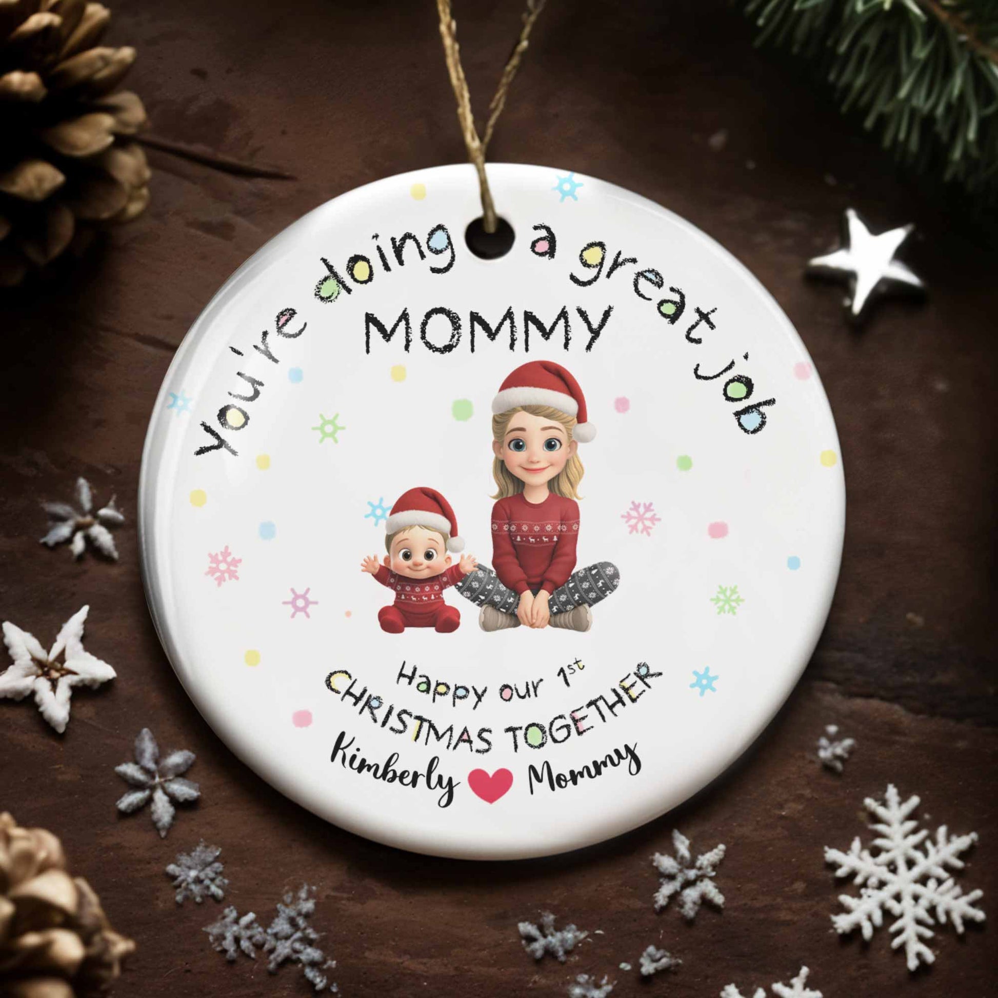 Doing A Great Job Mommy, First Christmas Together, Custom Ceramic Ornament, Gift for New Mothers